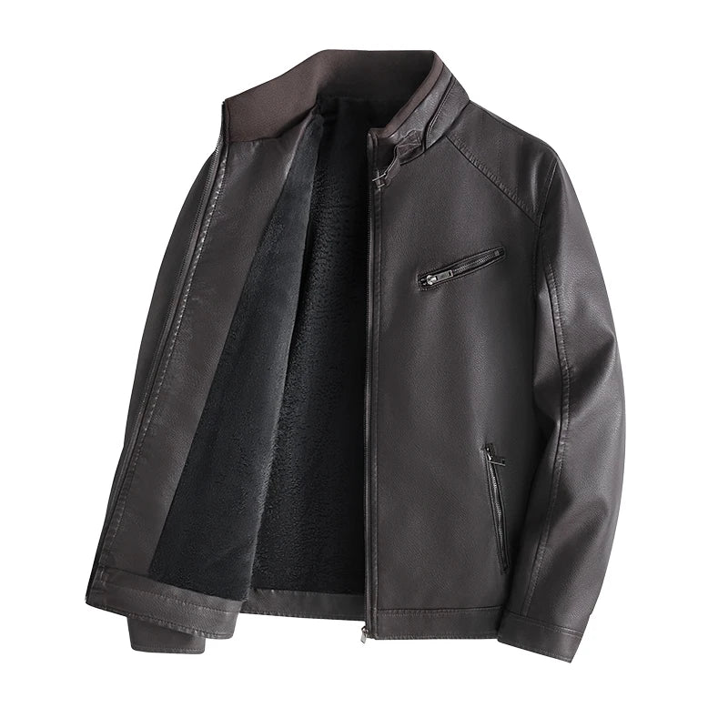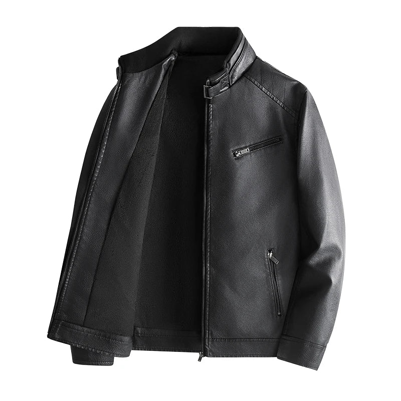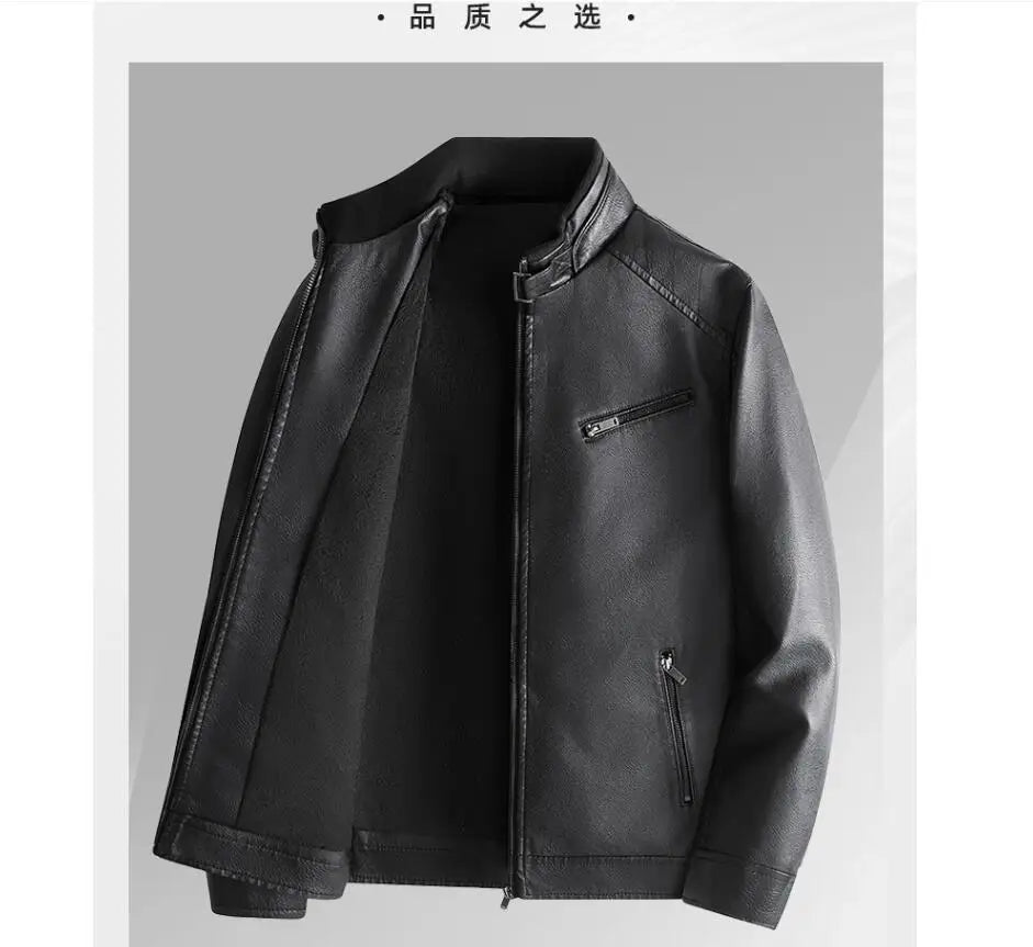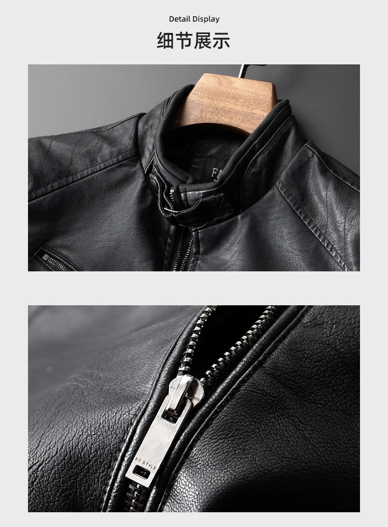 Riolio Stand Collar Slim Pu Leather Jacket Autumn Men fleece warm Motorcycle Causal Coat Male Moto Biker Coat Trendy Mens Clothing