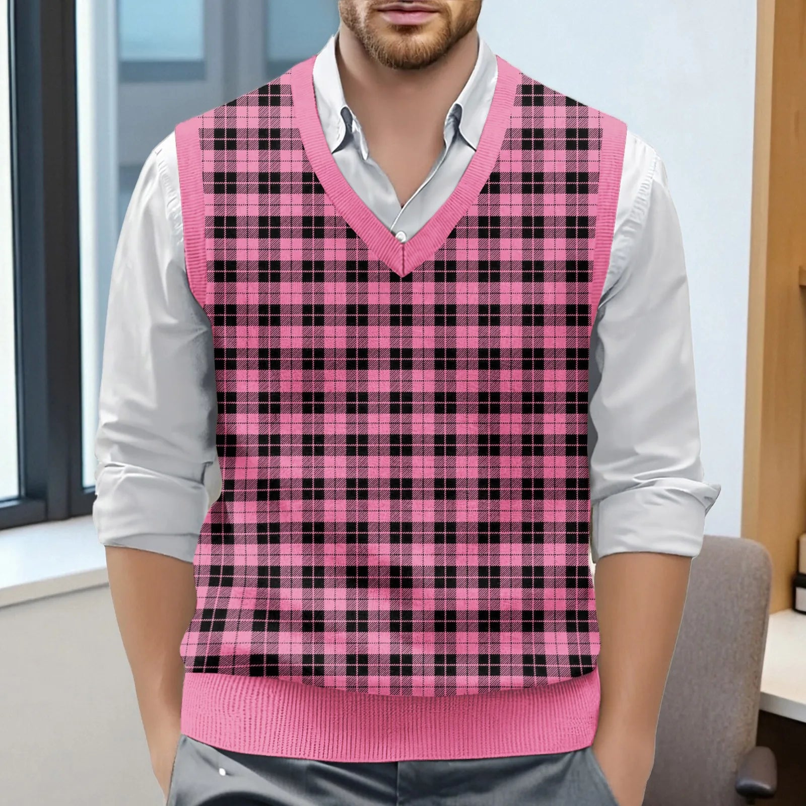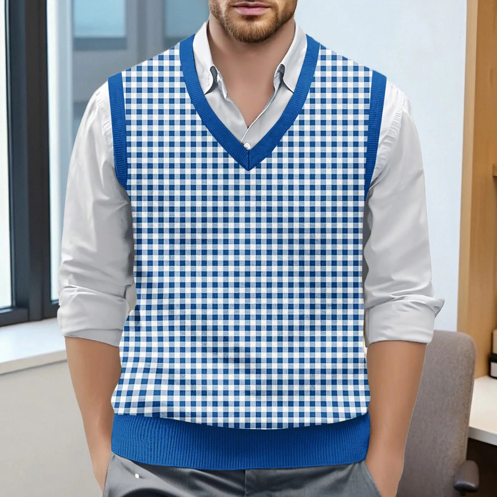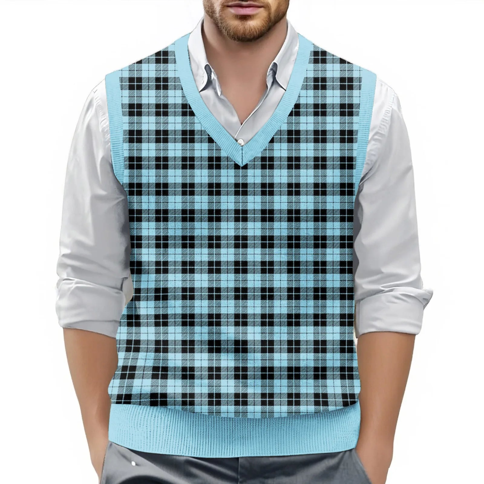 Riolio Top For Man Chess Vest Waistcoat Diamond Grid Woolen Sweater Vest Sleeveless Jackets For Men Vest Men Chaleco Lana