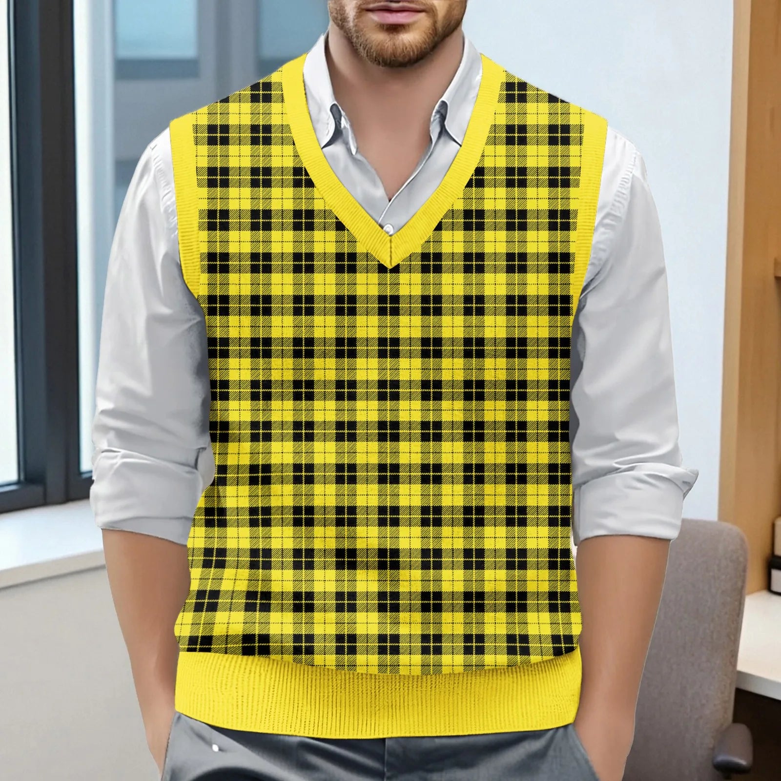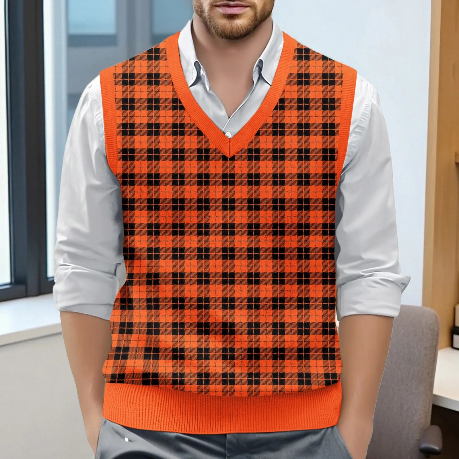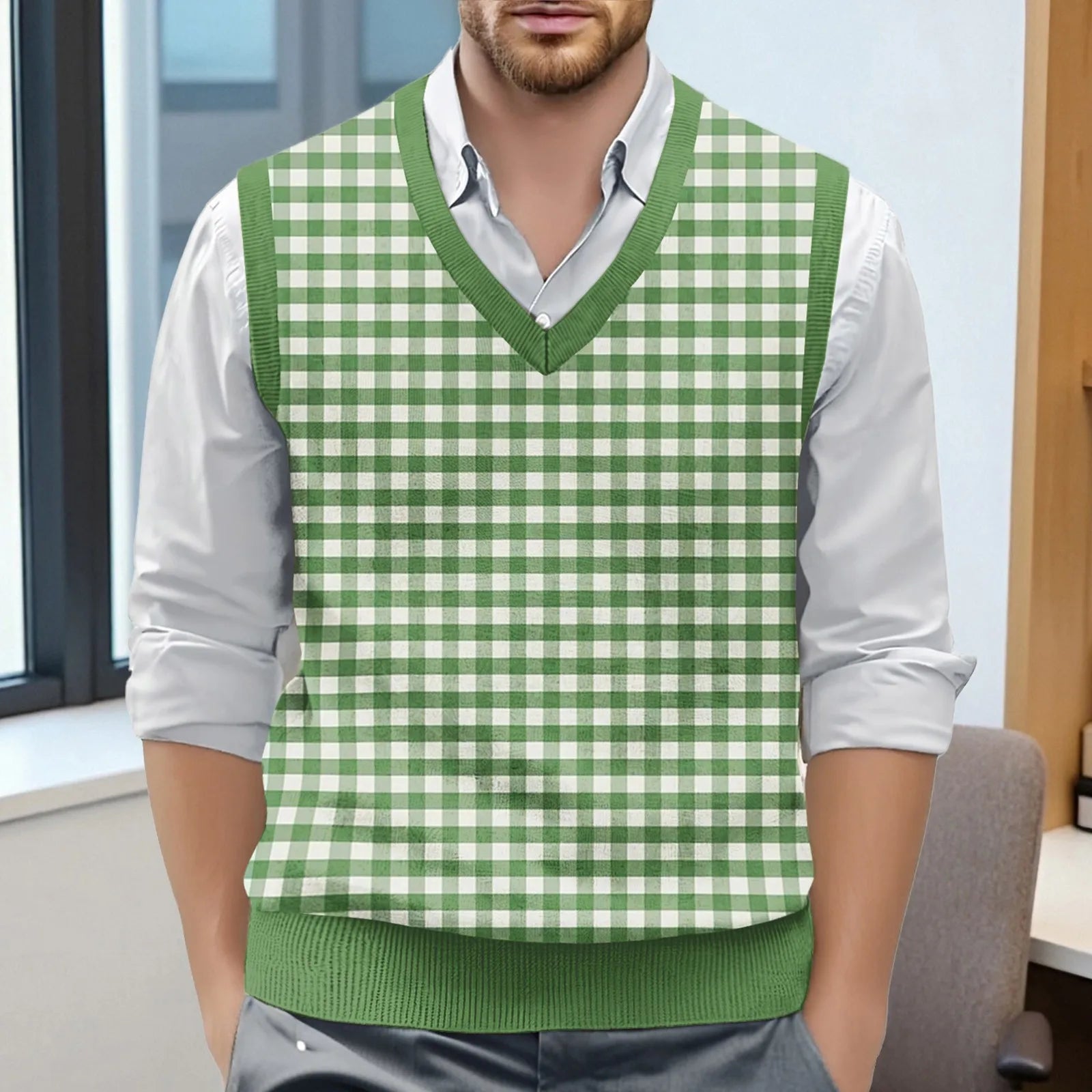 Riolio Top For Man Chess Vest Waistcoat Diamond Grid Woolen Sweater Vest Sleeveless Jackets For Men Vest Men Chaleco Lana