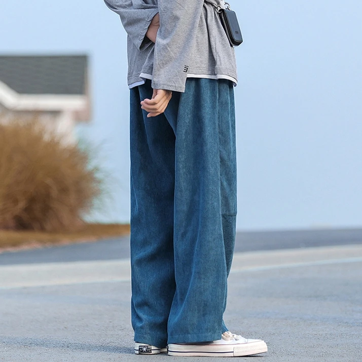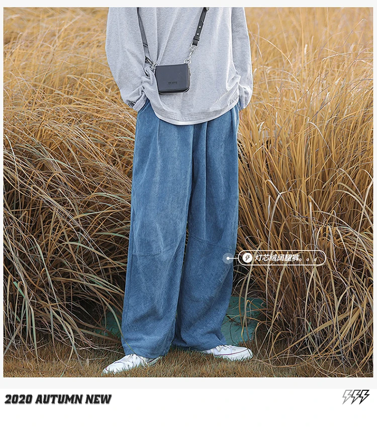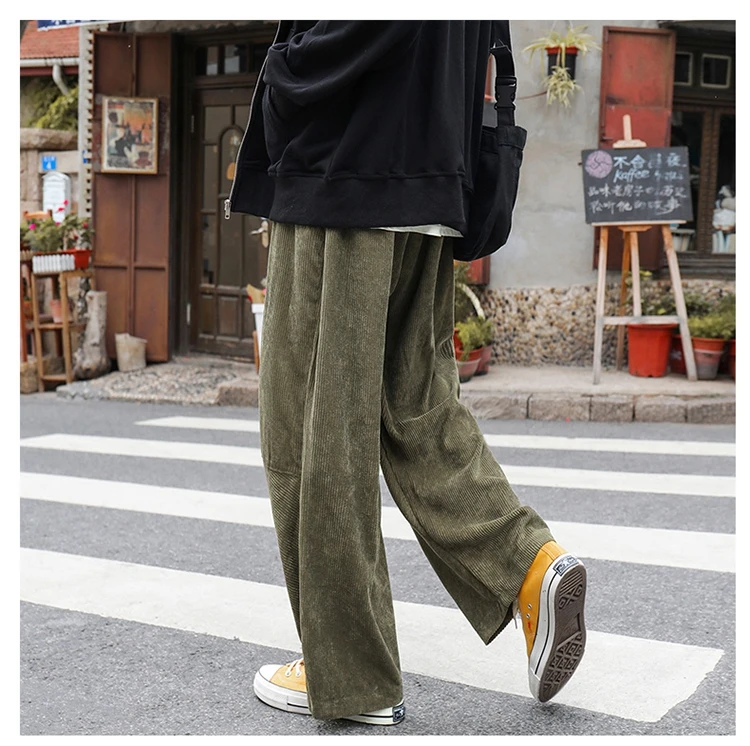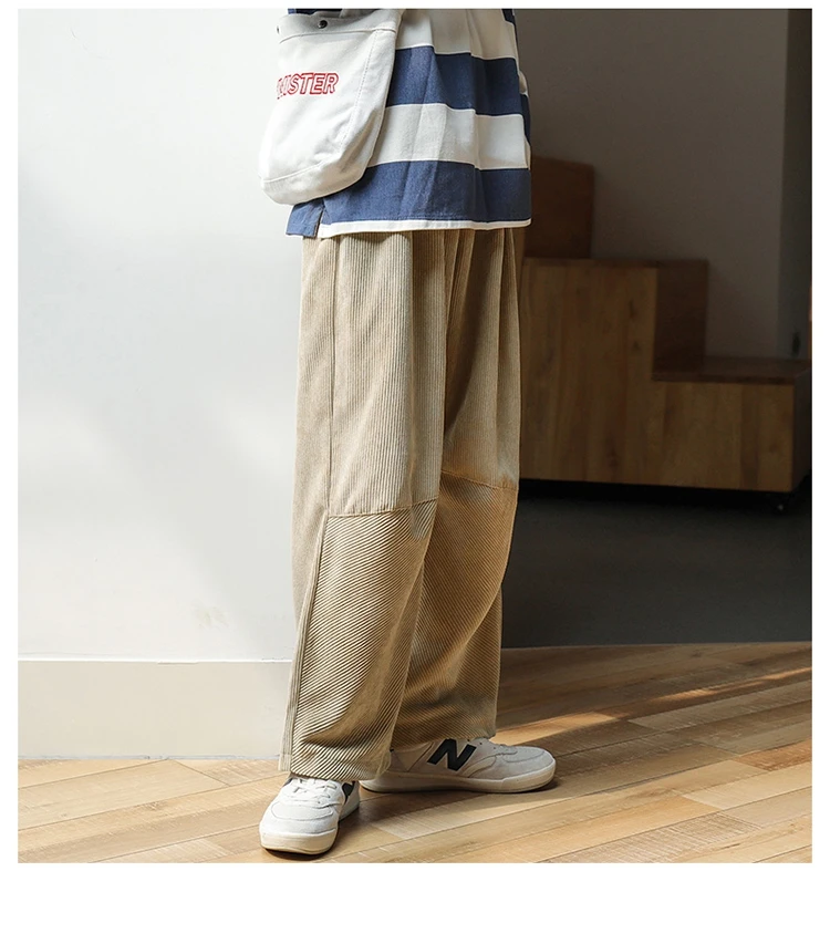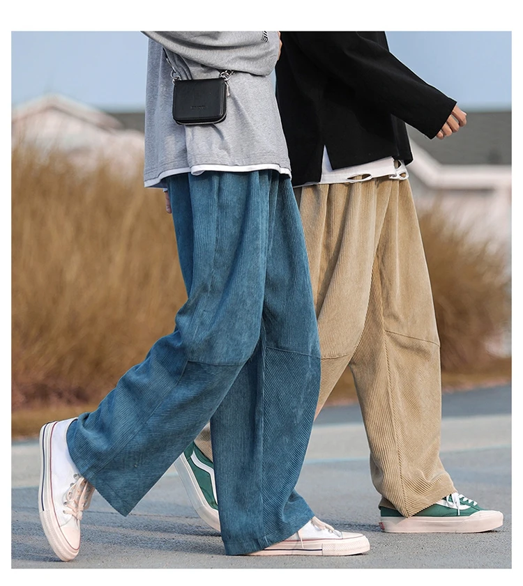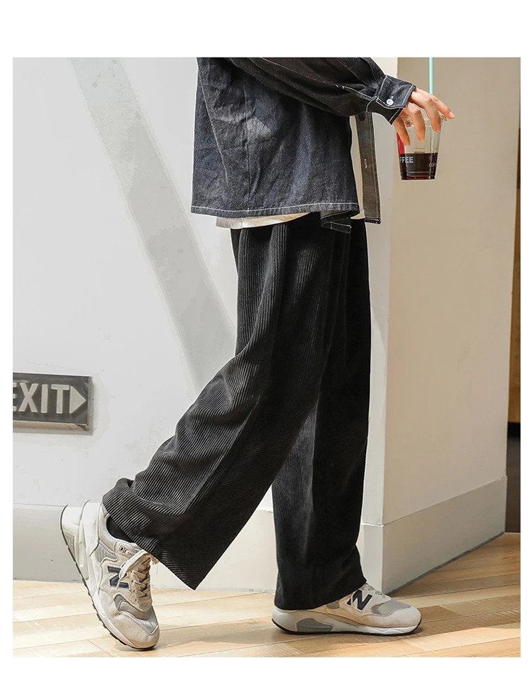 Riolio Corduroy Casual Pants Men Wide-leg Mopping Trousers Loose All-match Soft Oversize Pant Japanese Style Hot Sale Bottoms Male Chic
