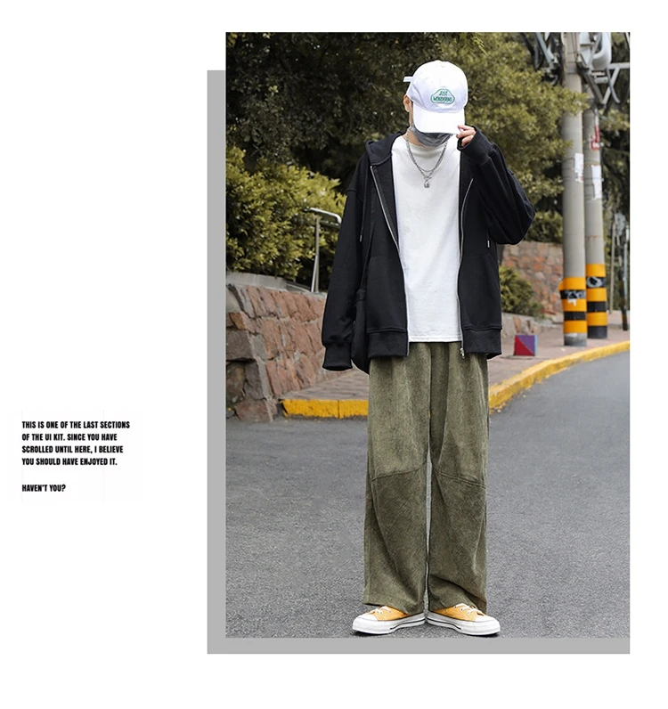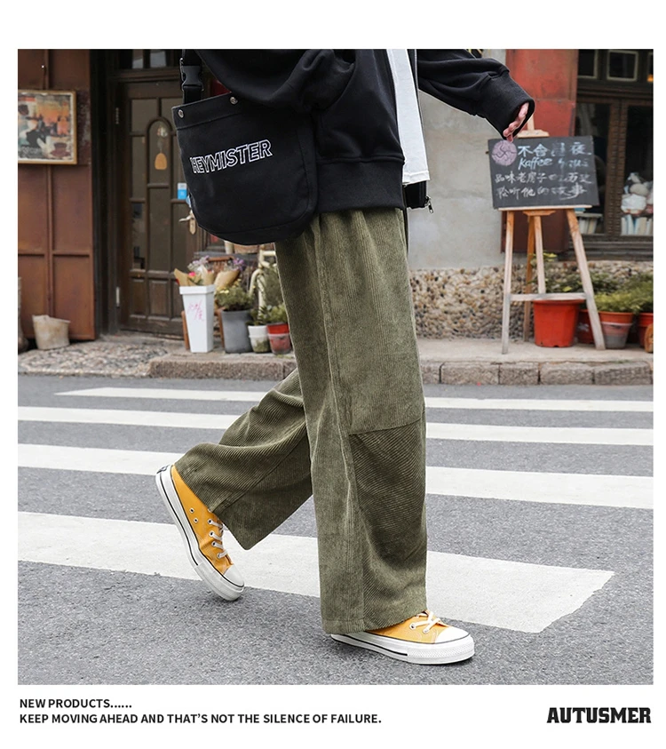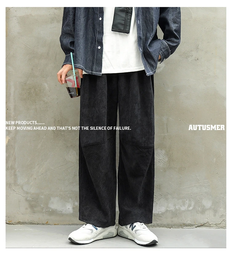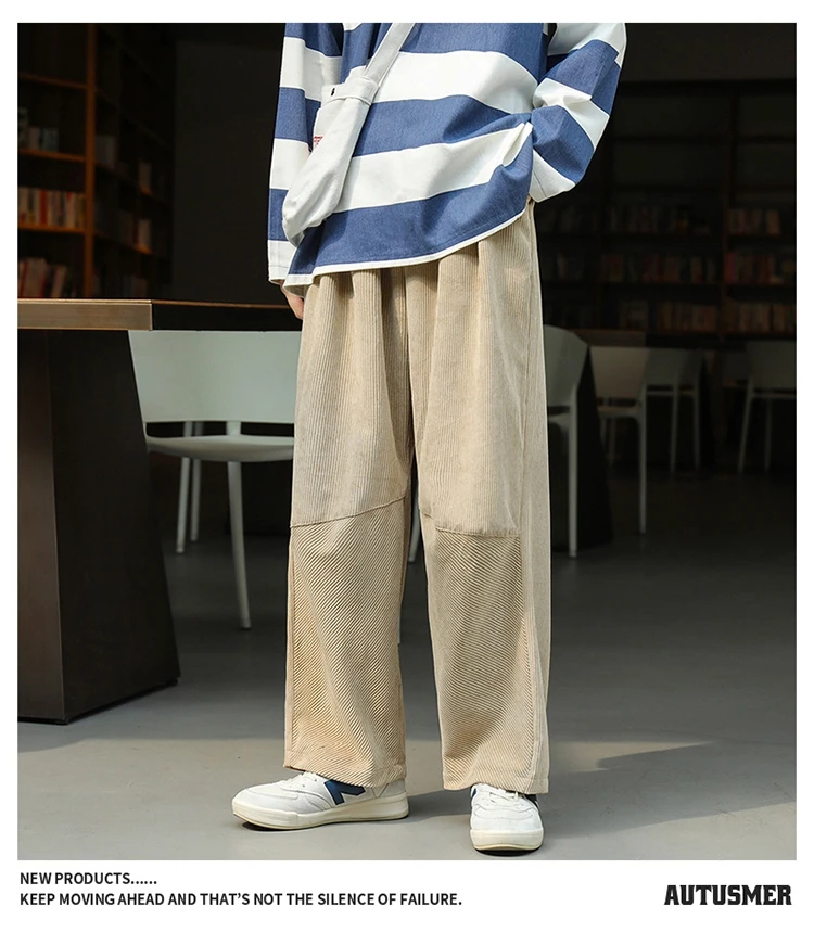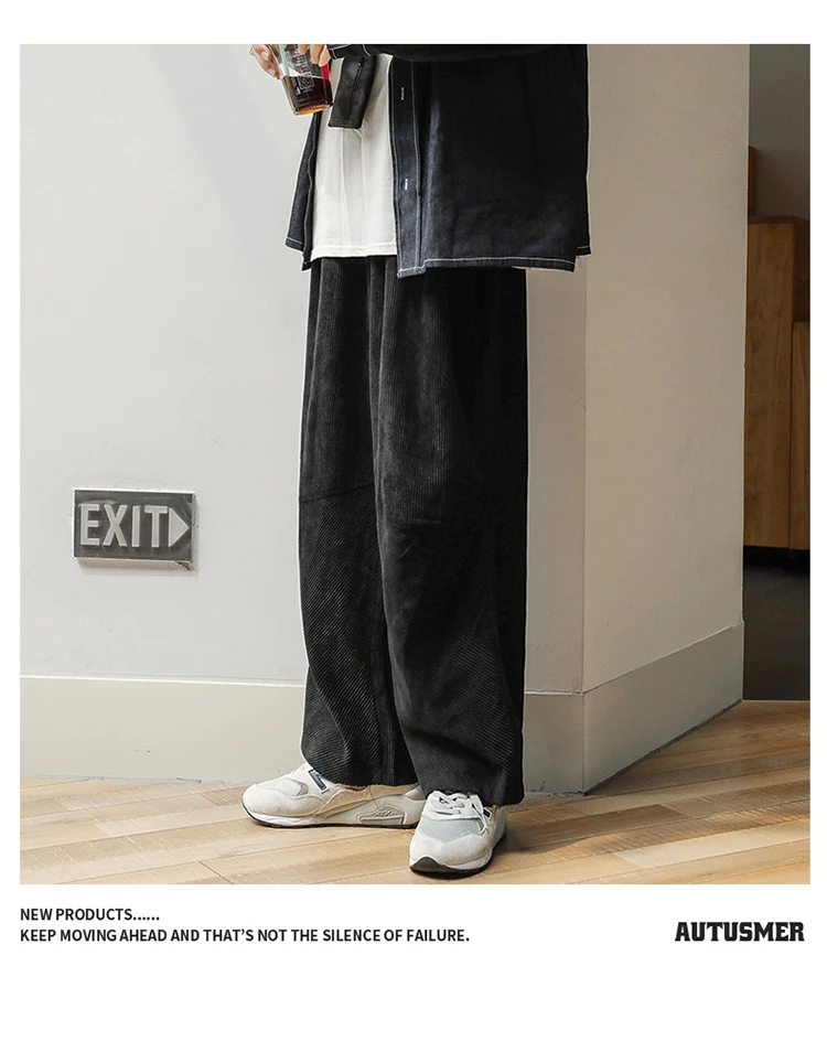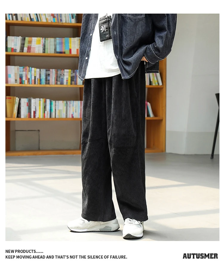 Riolio Corduroy Casual Pants Men Wide-leg Mopping Trousers Loose All-match Soft Oversize Pant Japanese Style Hot Sale Bottoms Male Chic