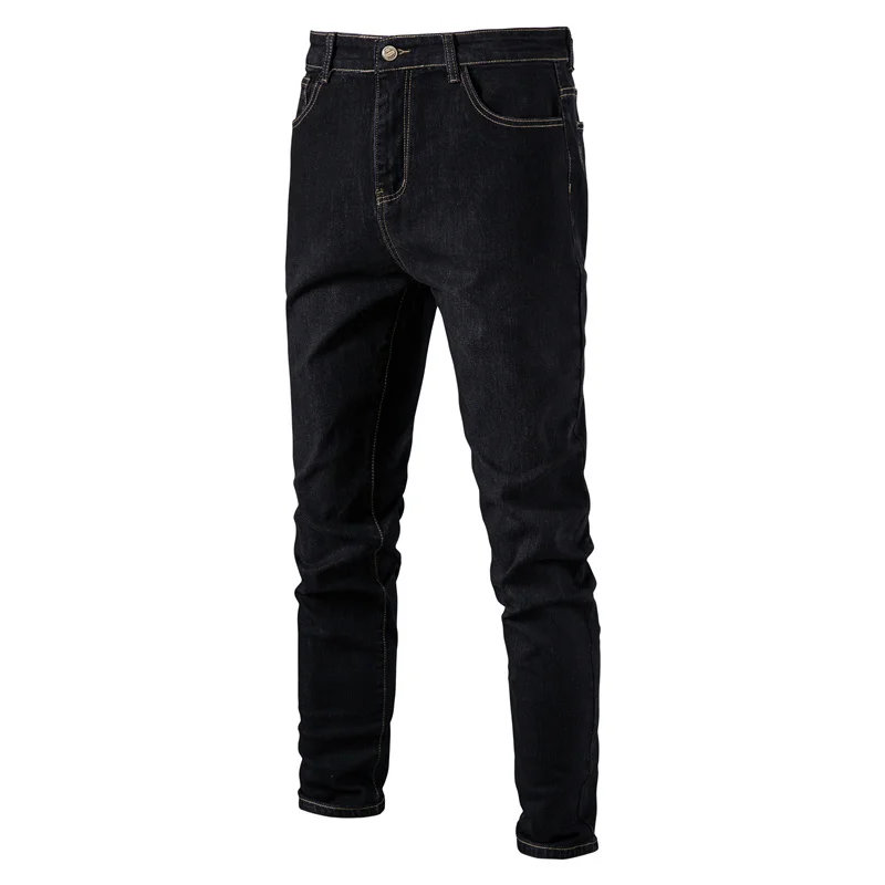 Riolio Cotton Stretchy Blue Jeans Men Casual Solid Color Mid Waist Mens Denim Pants Autumn High Quality Zipper Jean for Men