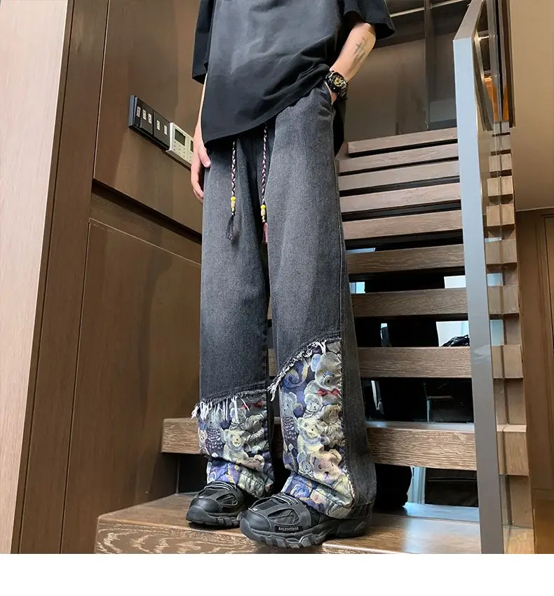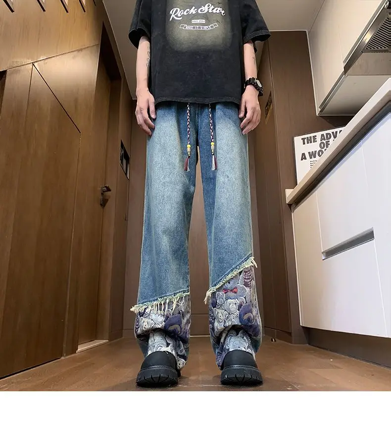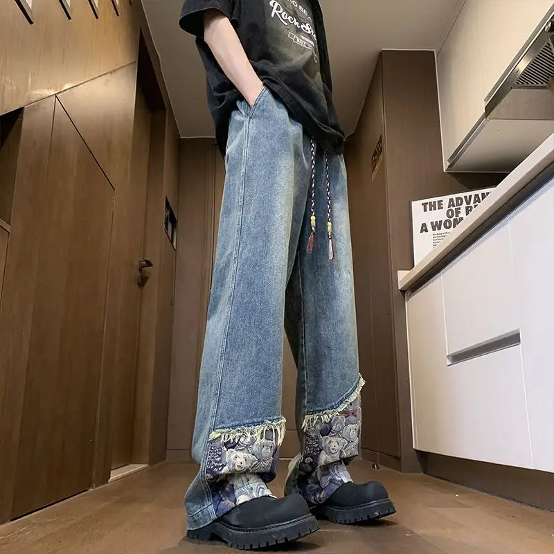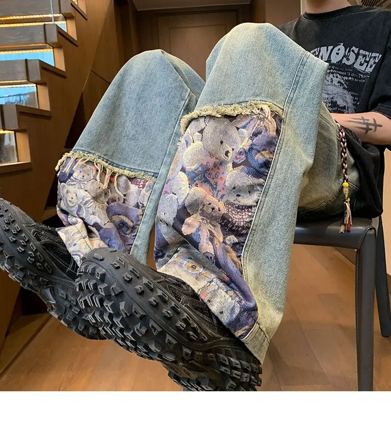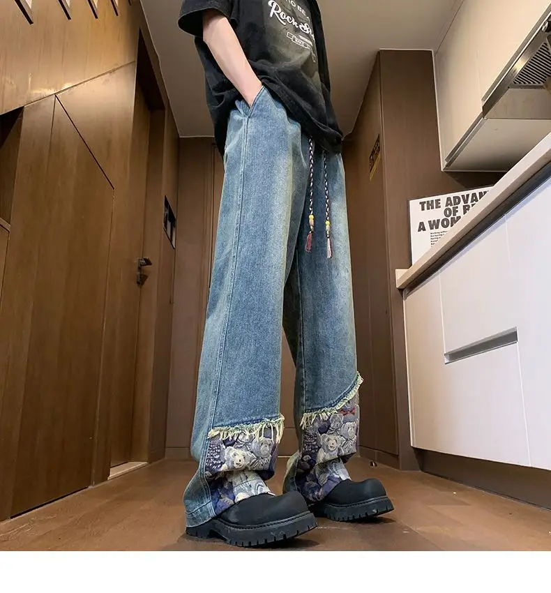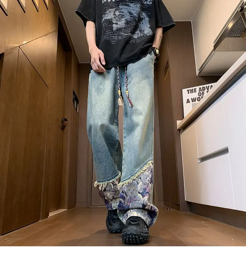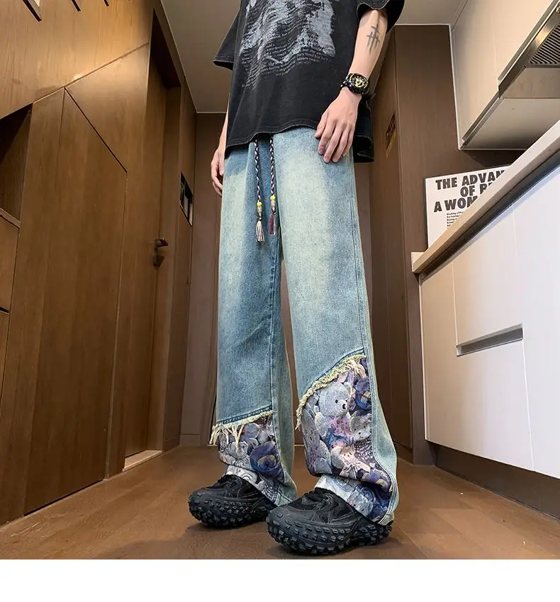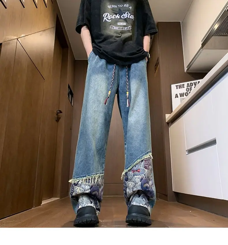 Riolio Autumn American high street hip-hop trend for men and women personalized straight leg washed jeans couple loose casual pants y2k