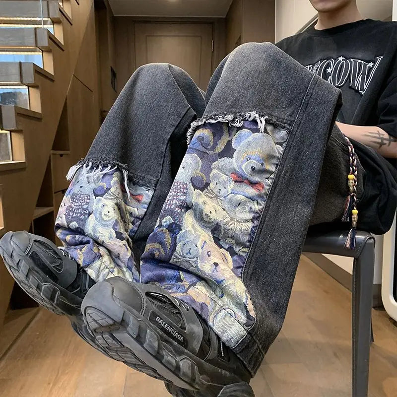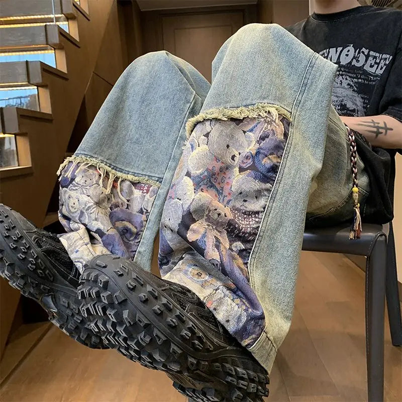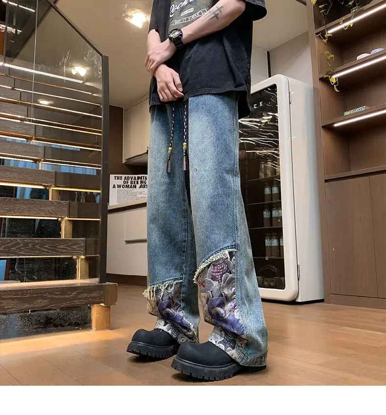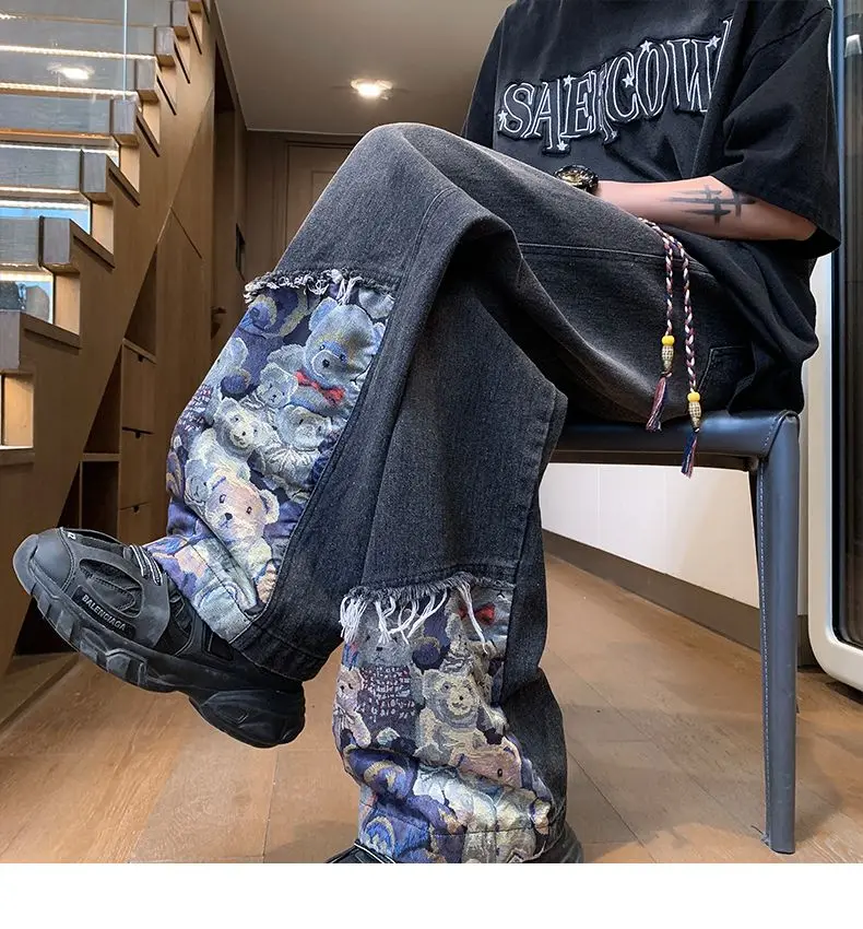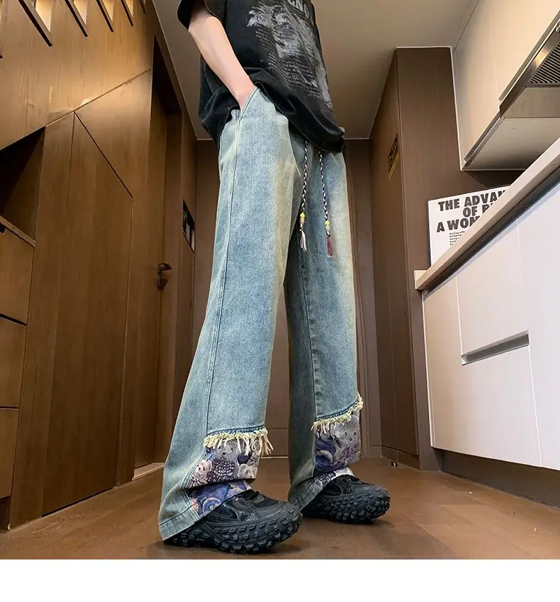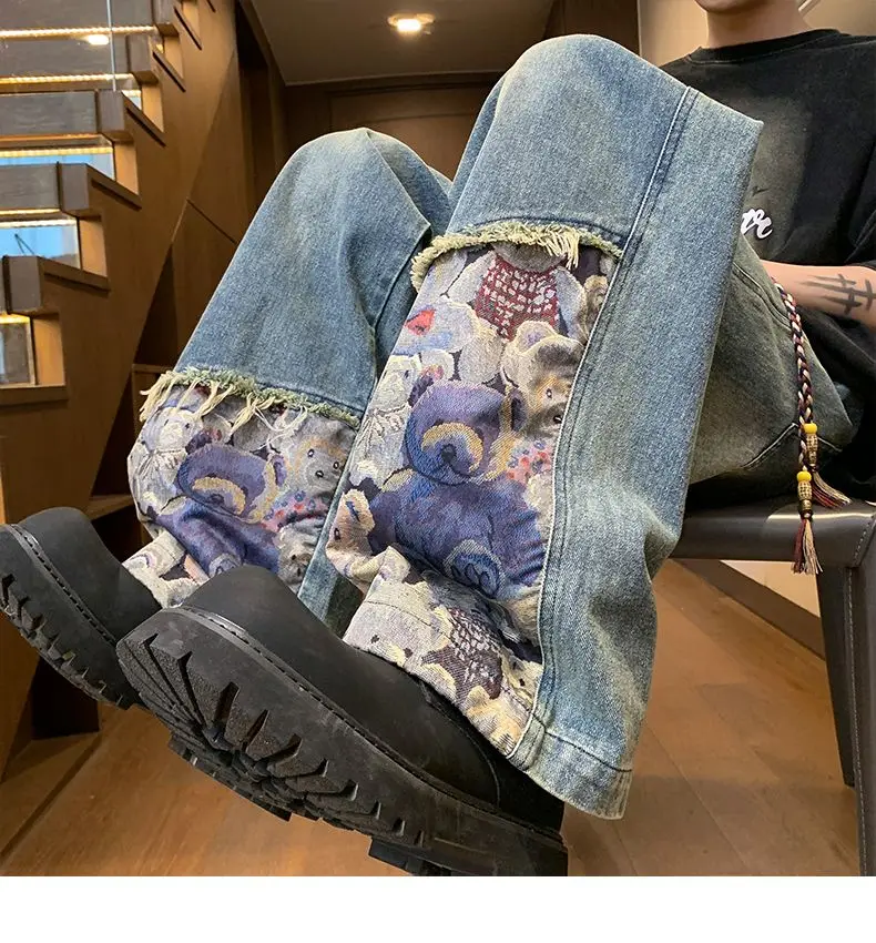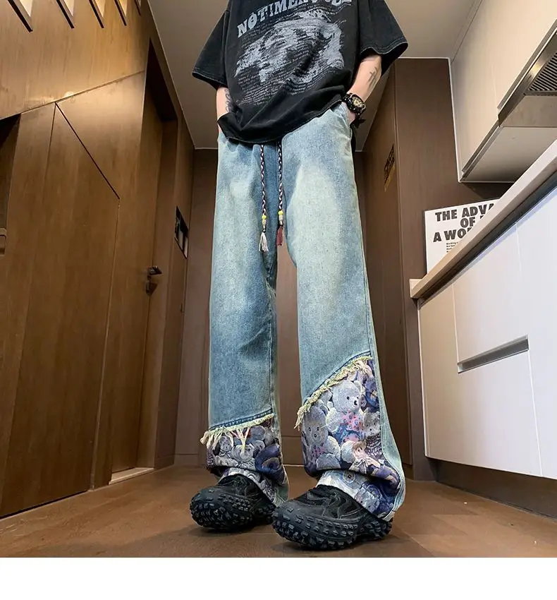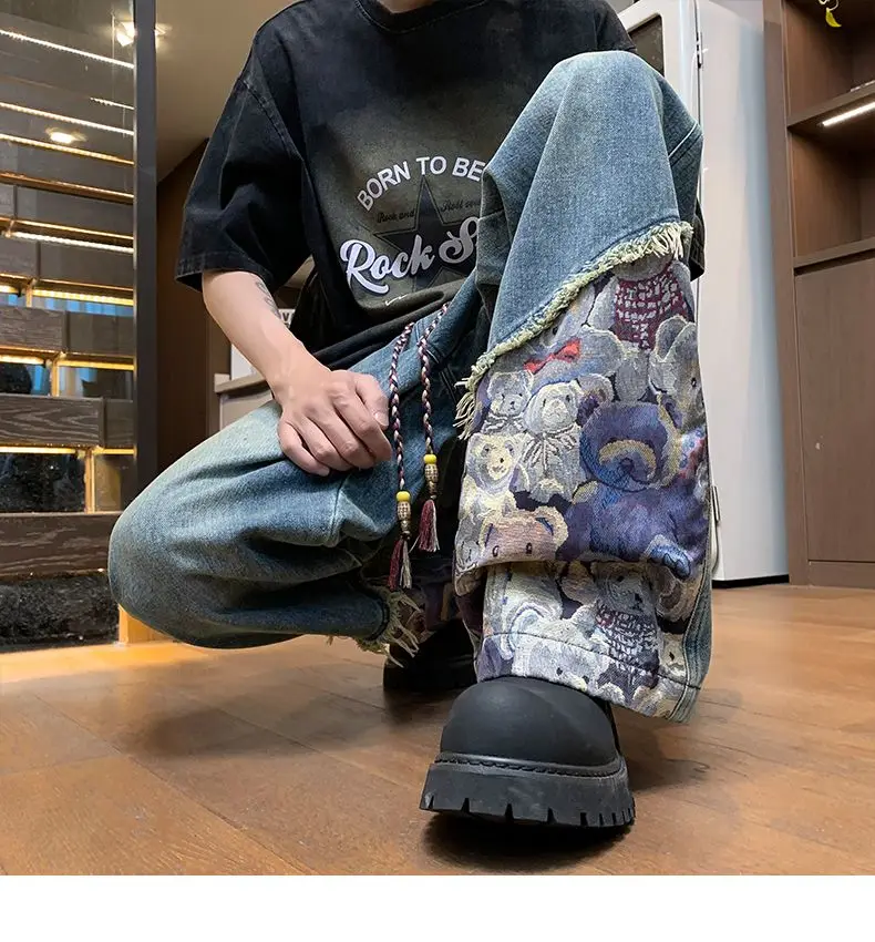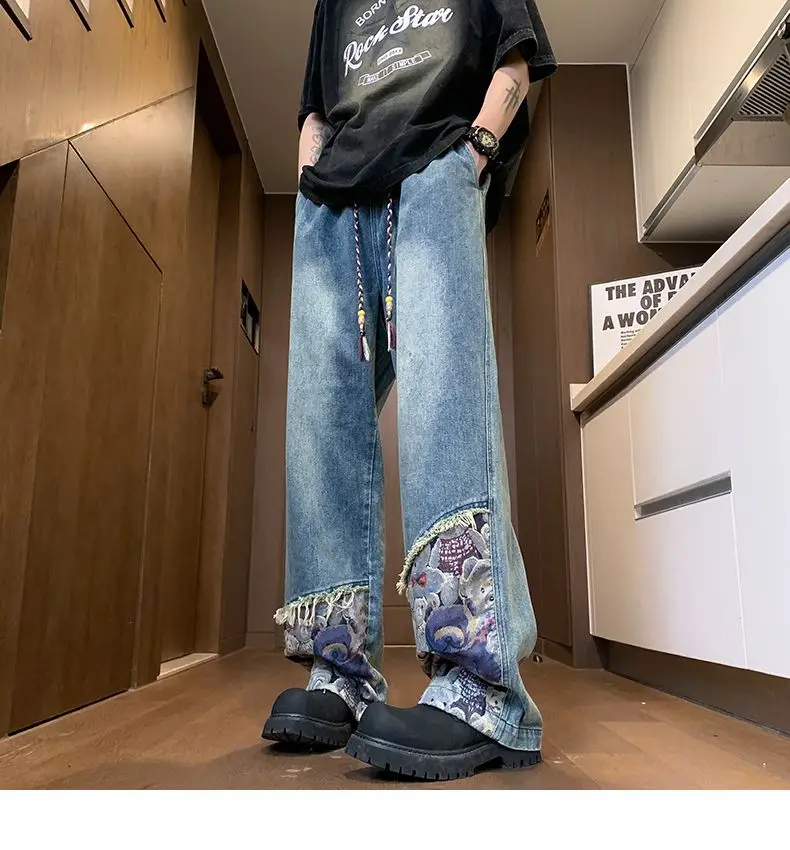 Riolio Autumn American high street hip-hop trend for men and women personalized straight leg washed jeans couple loose casual pants y2k