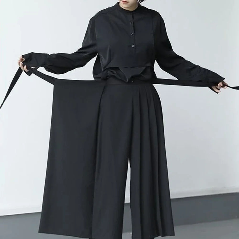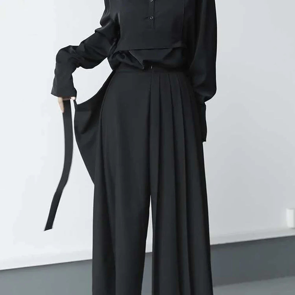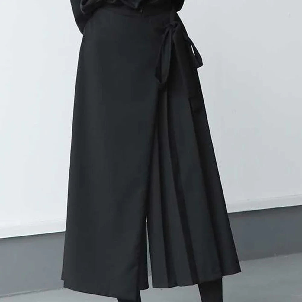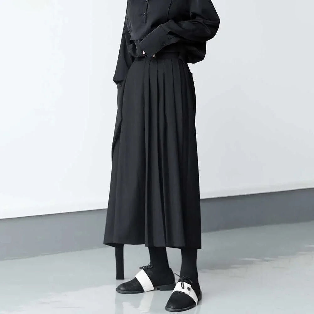 Riolio  Double-layer Pleated Dark Loose Nine-point Wide-leg Pants Unisex Versatile High-waisted Tight-waisted Straight Culottes