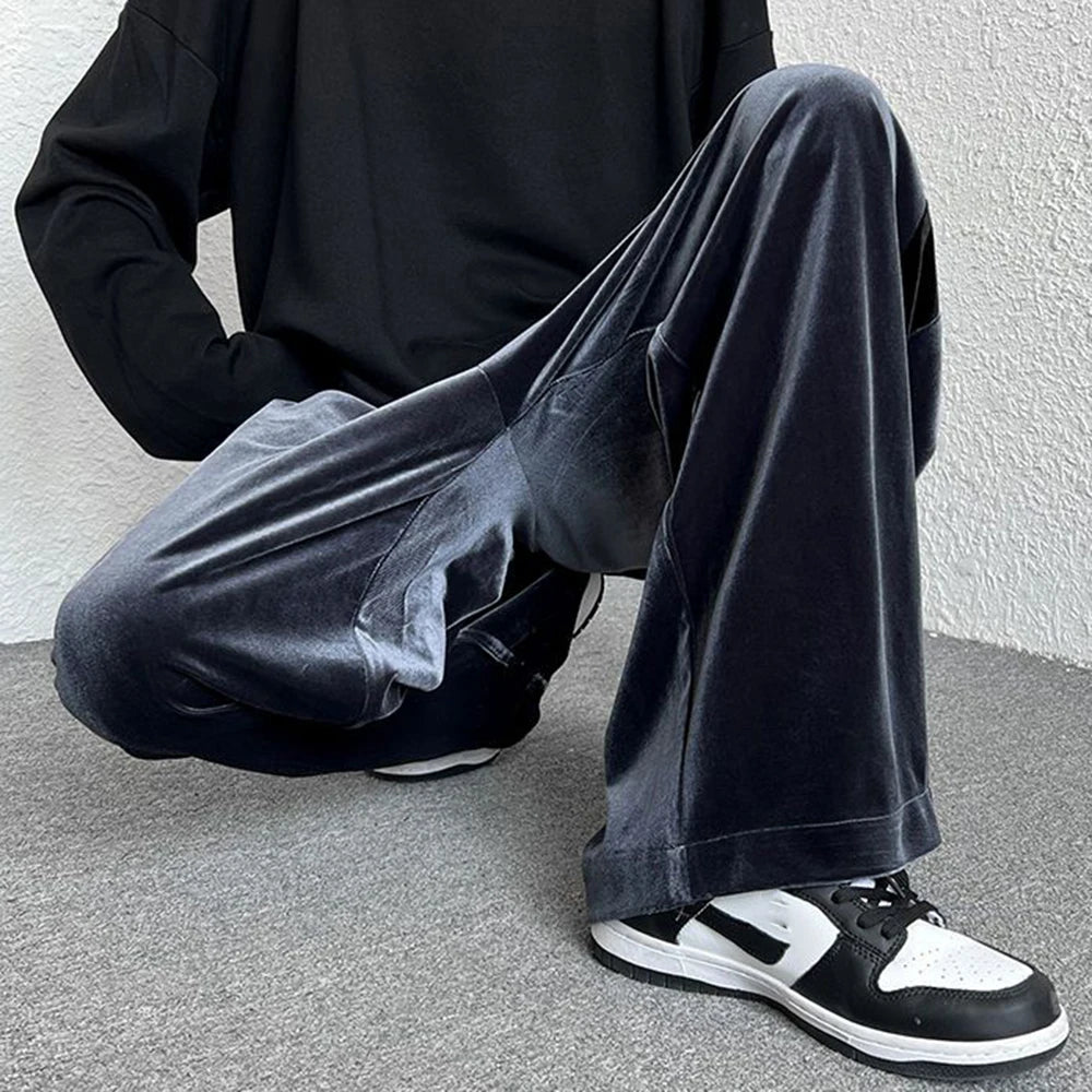 Riolio High Street Casual Sweatpants Men's Gold Velvet Wide-leg Pants Spring Fall Clothes Large Size Trendy Loose Y2k Glossy Long Pants