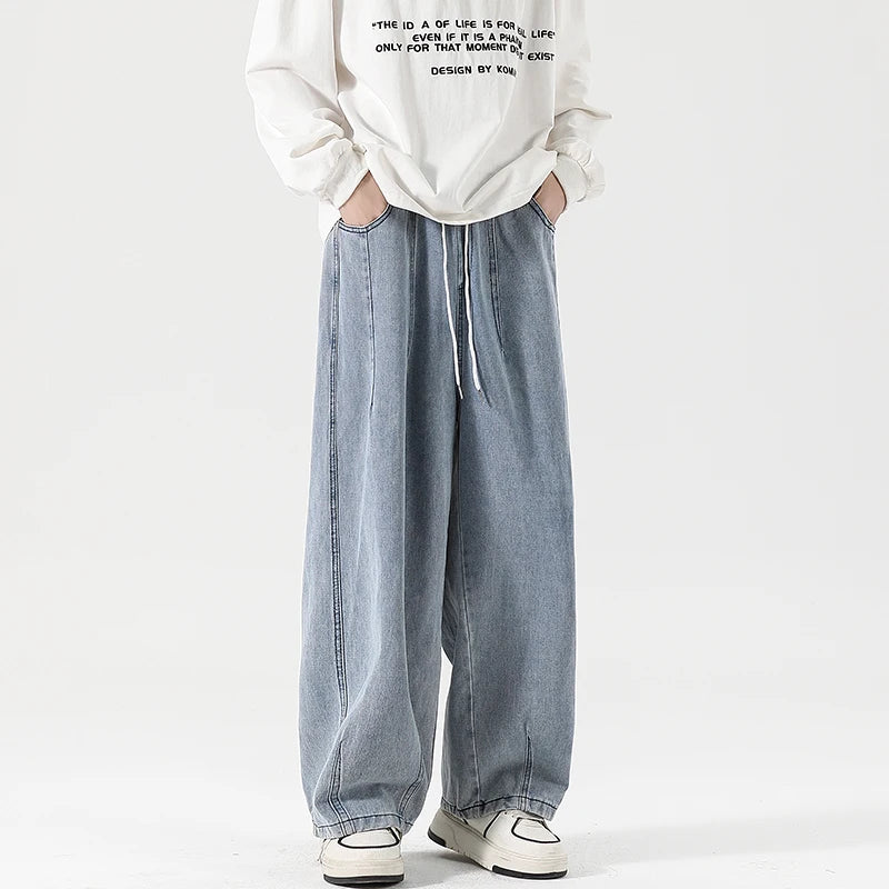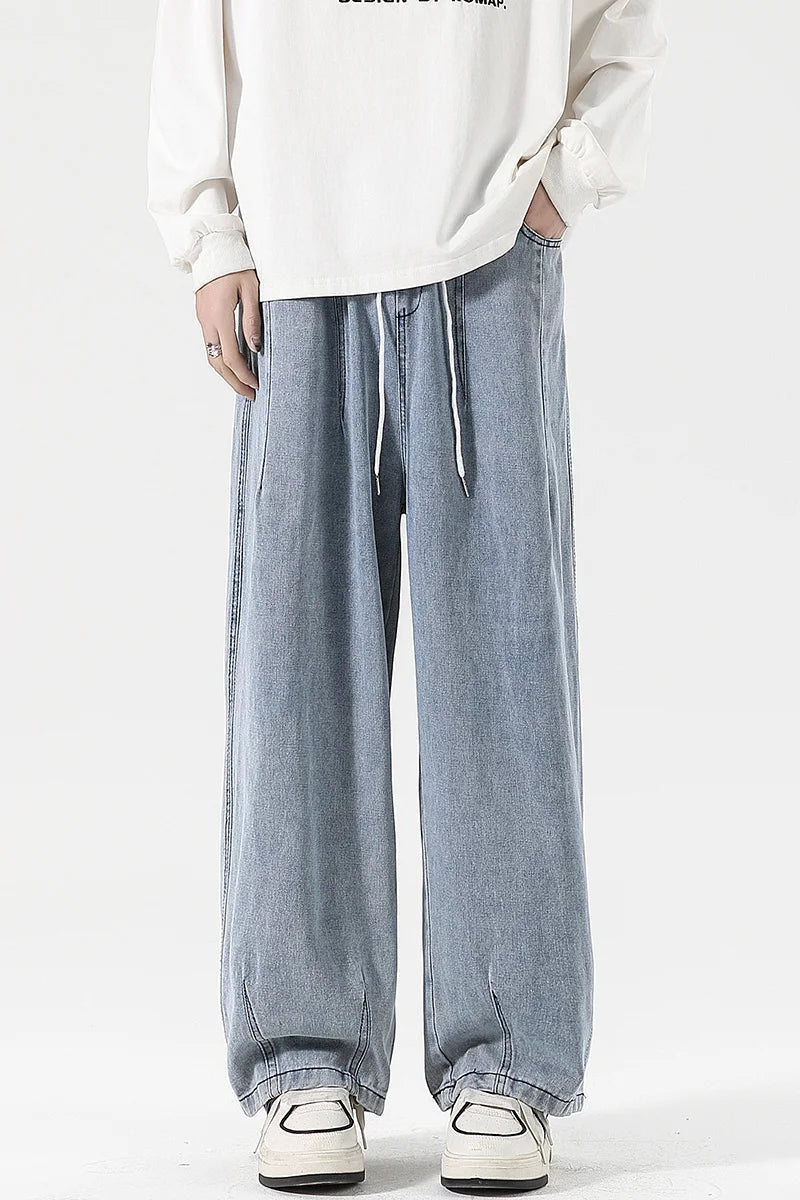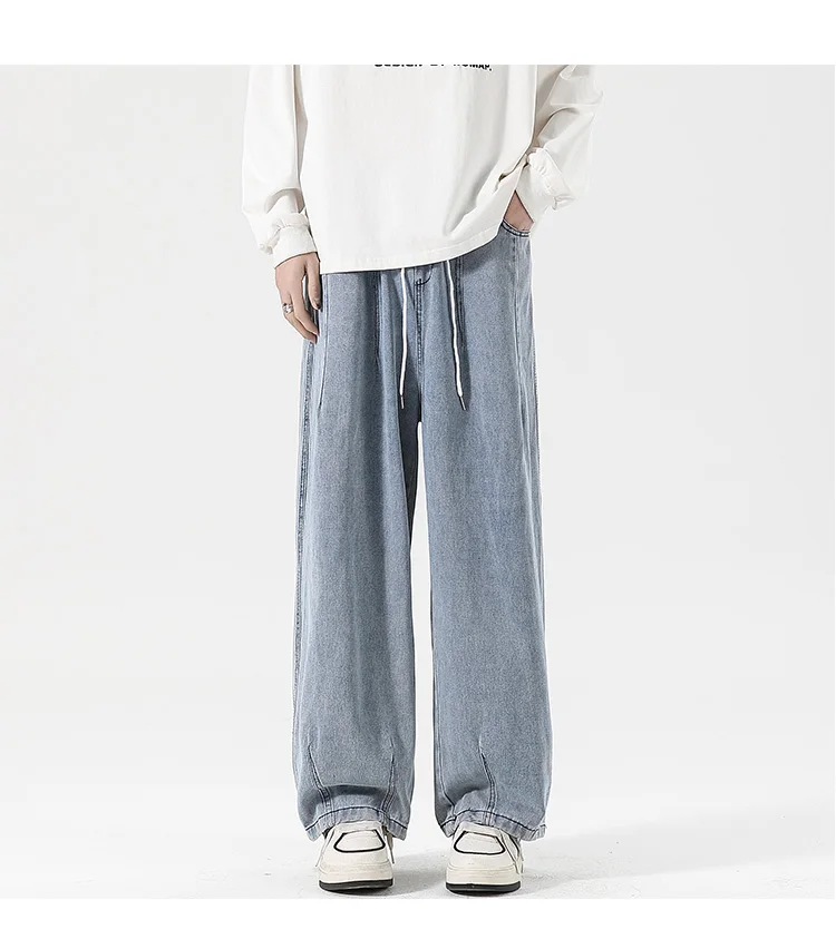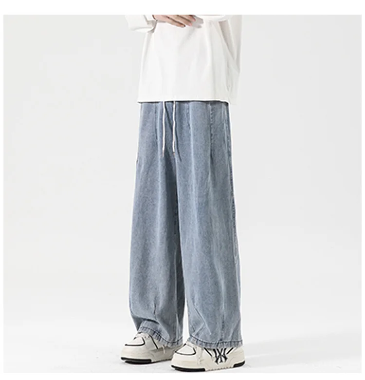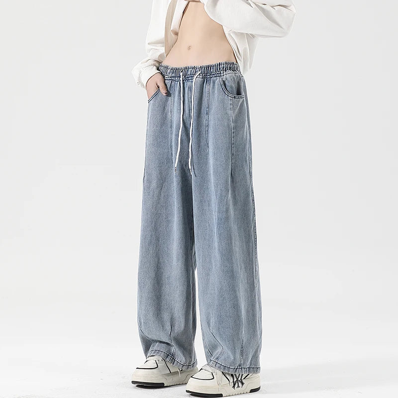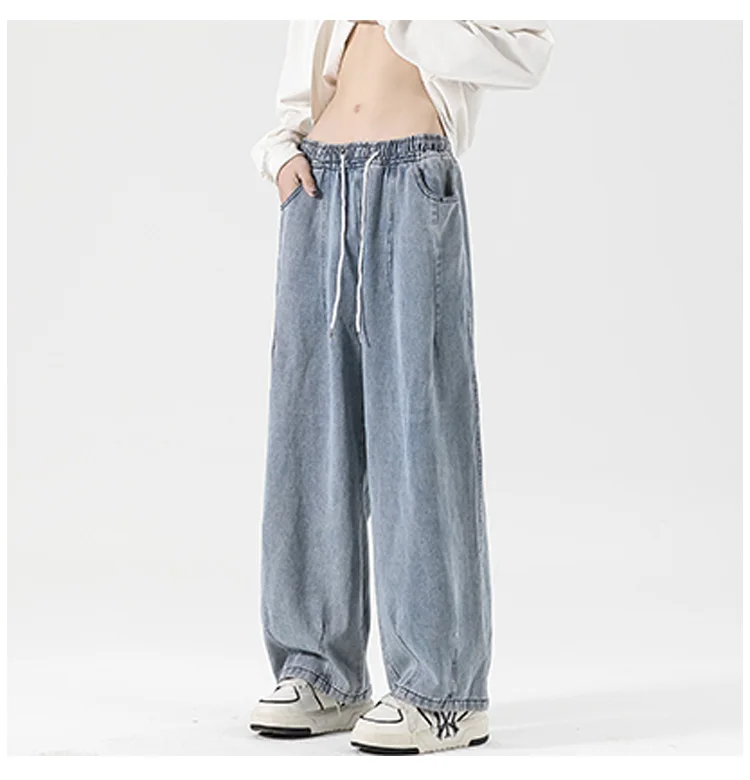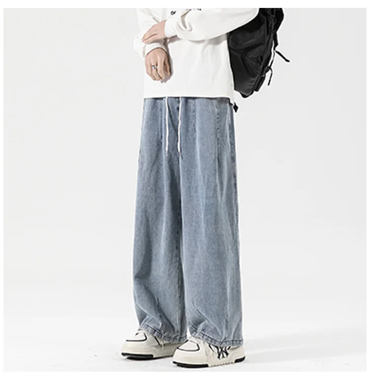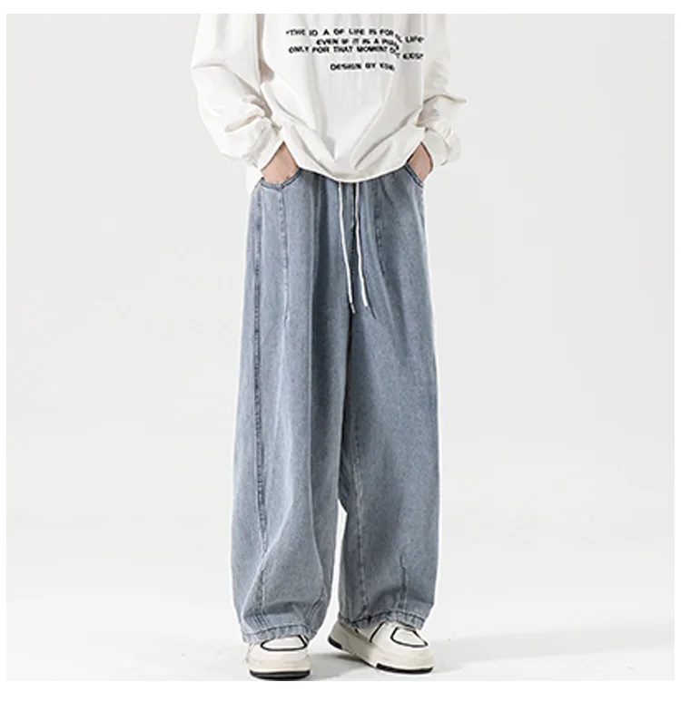 Riolio Light Blue Baggy Jeans for Men Elastic Waist Relaxed Fit Wide Leg Trousers Street Fashion Hip Hop Cargo Pants Men Autumn