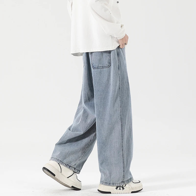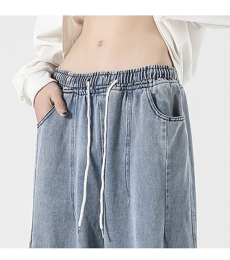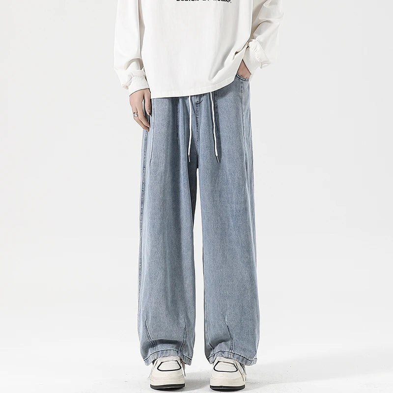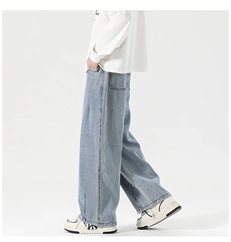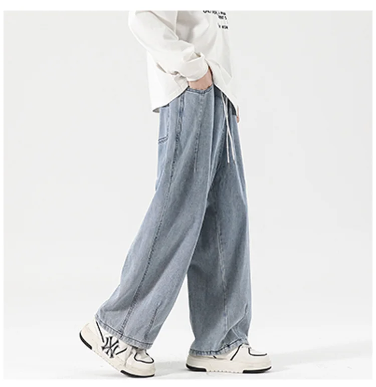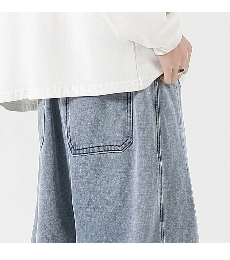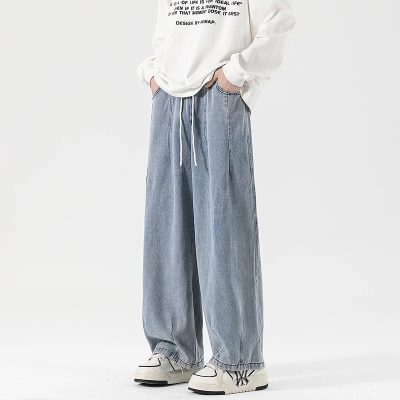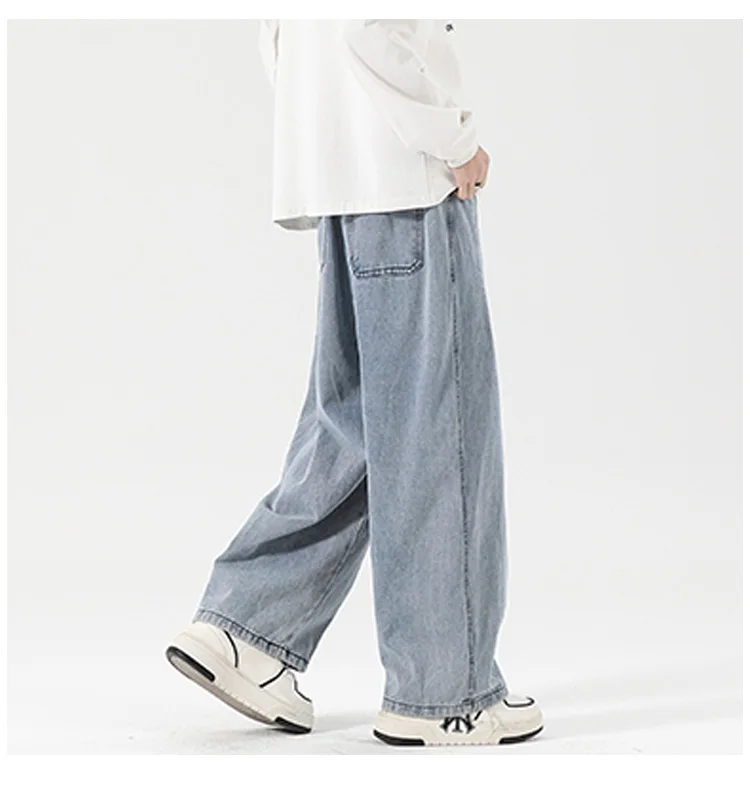 Riolio Light Blue Baggy Jeans for Men Elastic Waist Relaxed Fit Wide Leg Trousers Street Fashion Hip Hop Cargo Pants Men Autumn