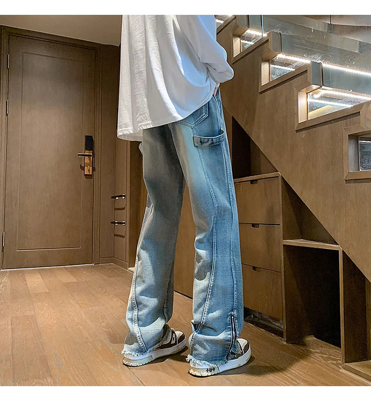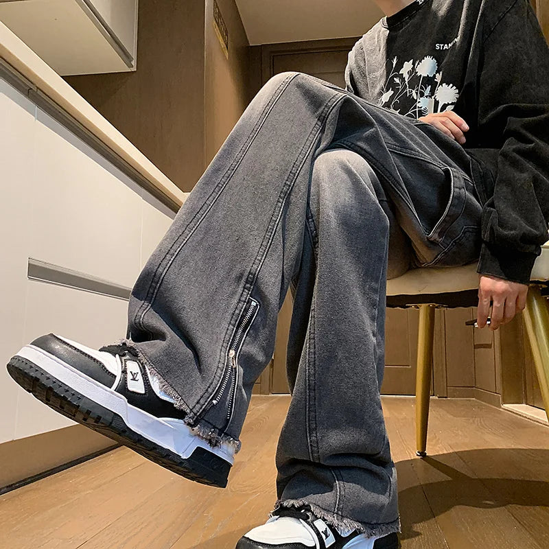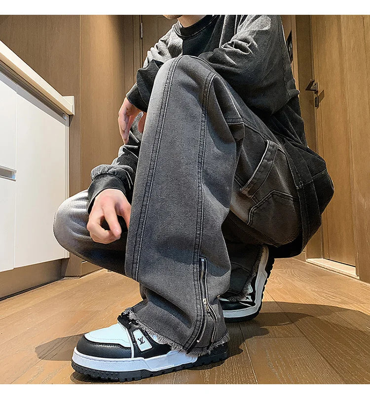 Riolio Men's jeans fashion Side Zipper Pants New Fashion men streetwear Jeans Loose Straight Denim Pant Mens jeans homme hip hop