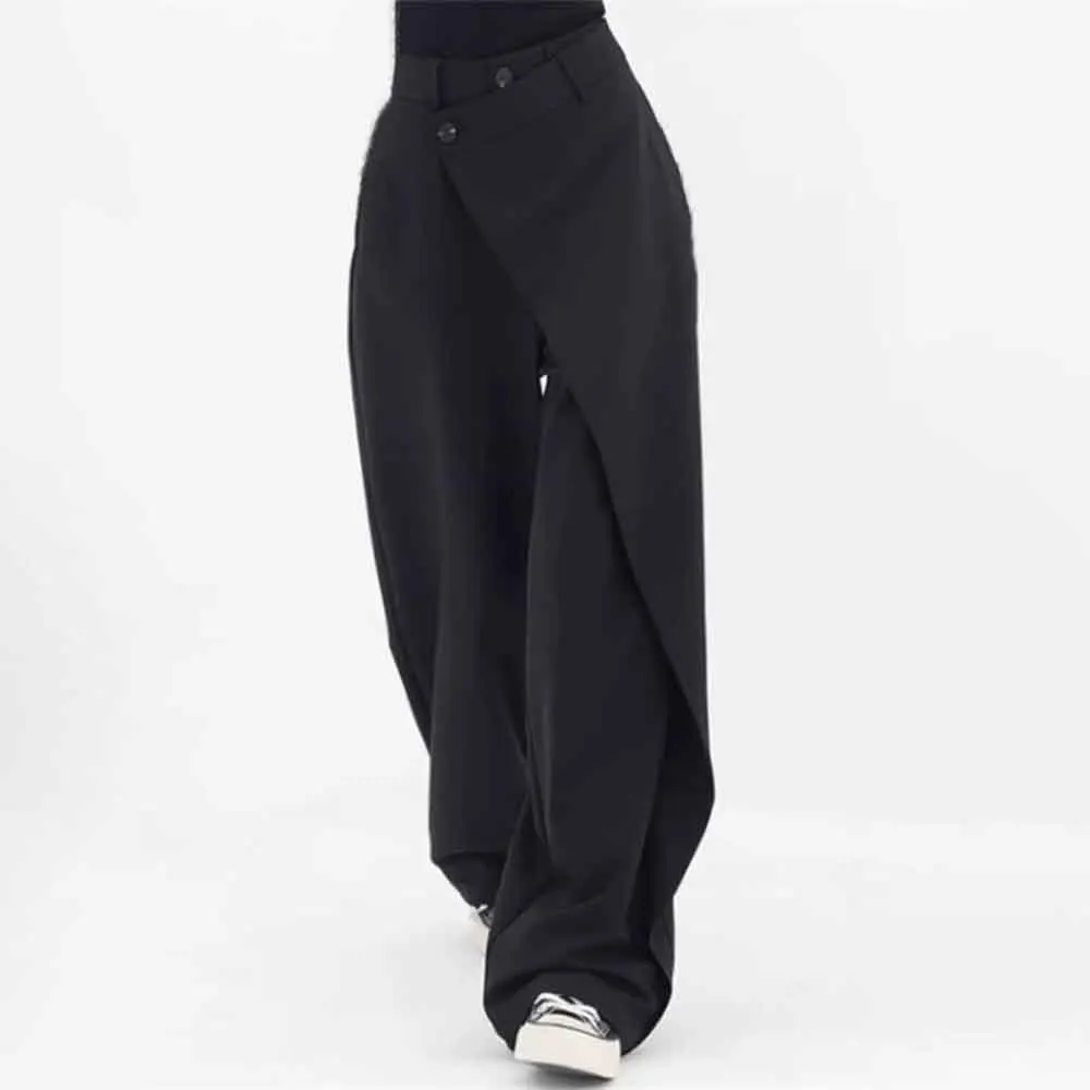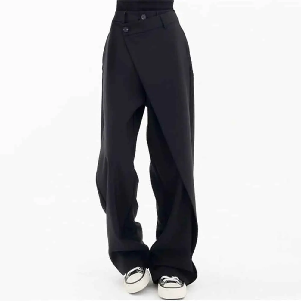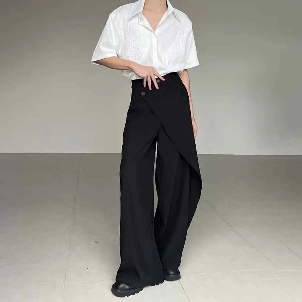 Riolio Mens Spring Pants Double Layer Irregular Side Button Trousers Streetwear Trendy Personalized Casual Trousers Men'S Clothing