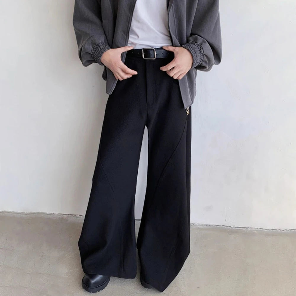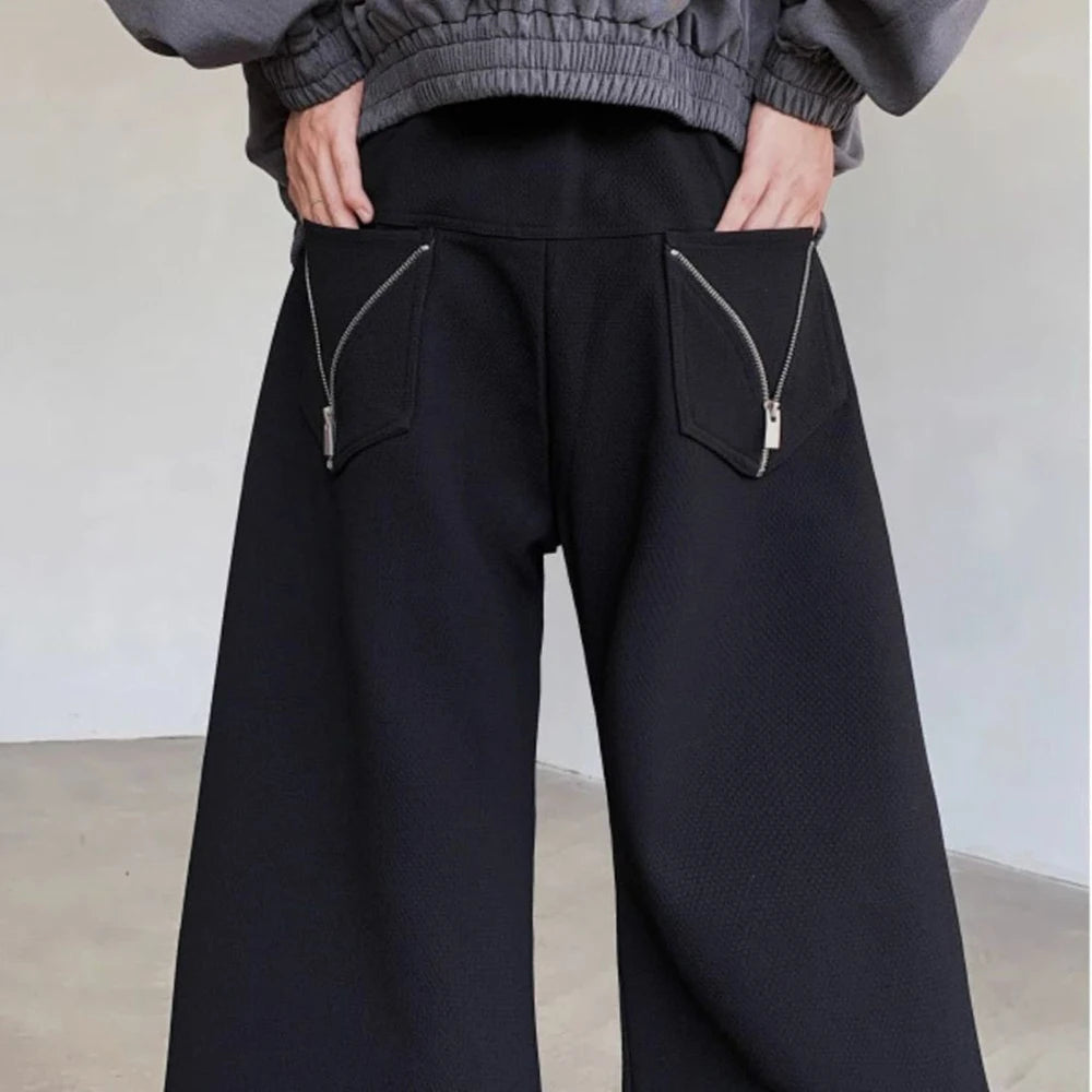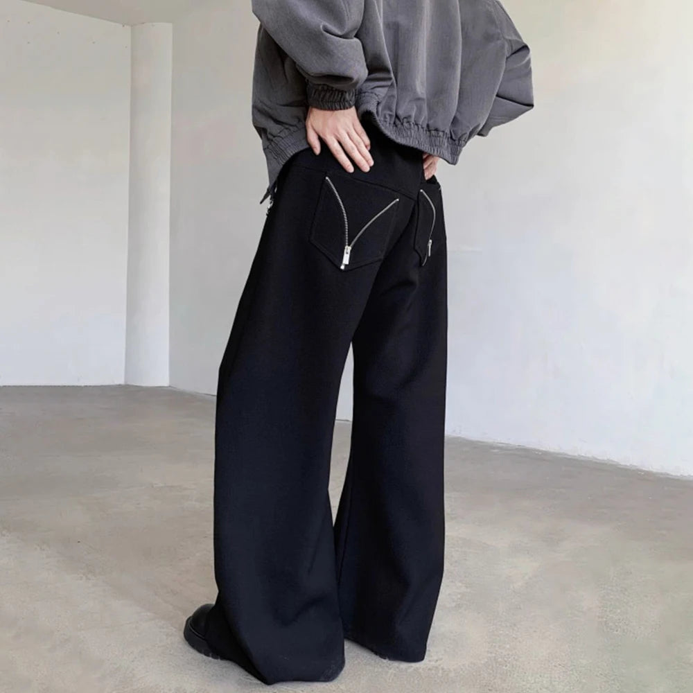 Riolio Mens Trousers Zipper Pocket Design Casual Pants Streetwear Fashion Youth Campus Luxury Niche Wide-Leg Pants Men'S Wear New