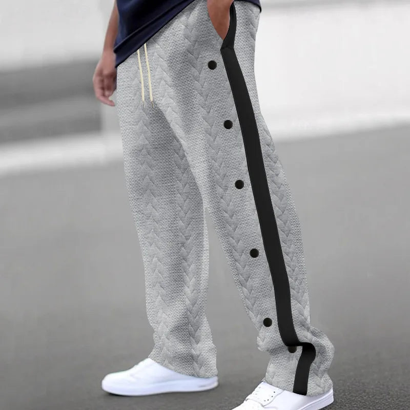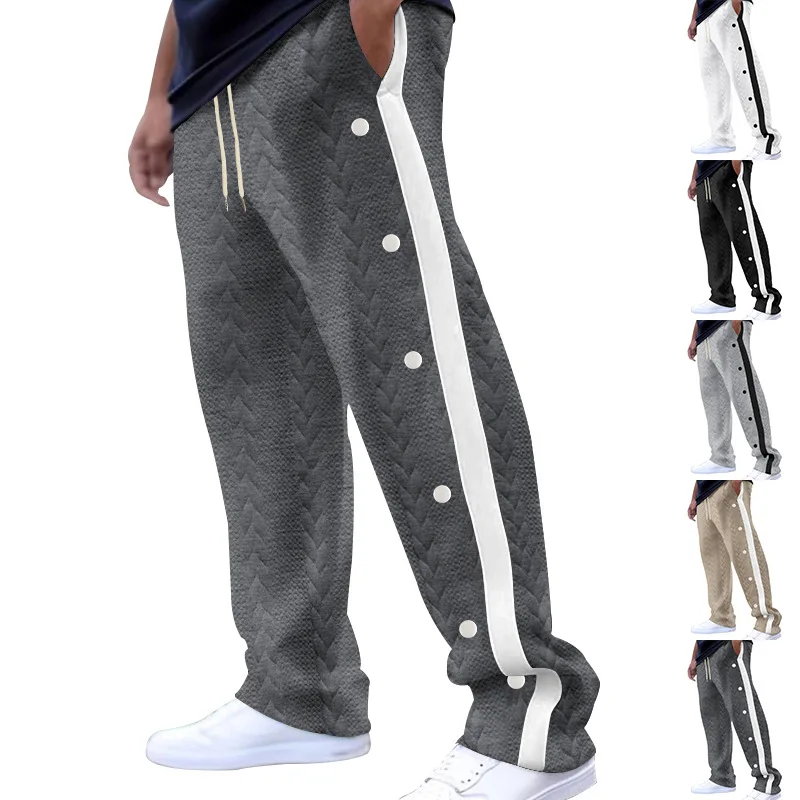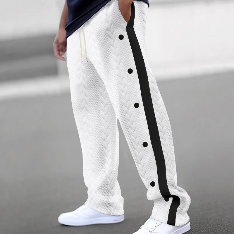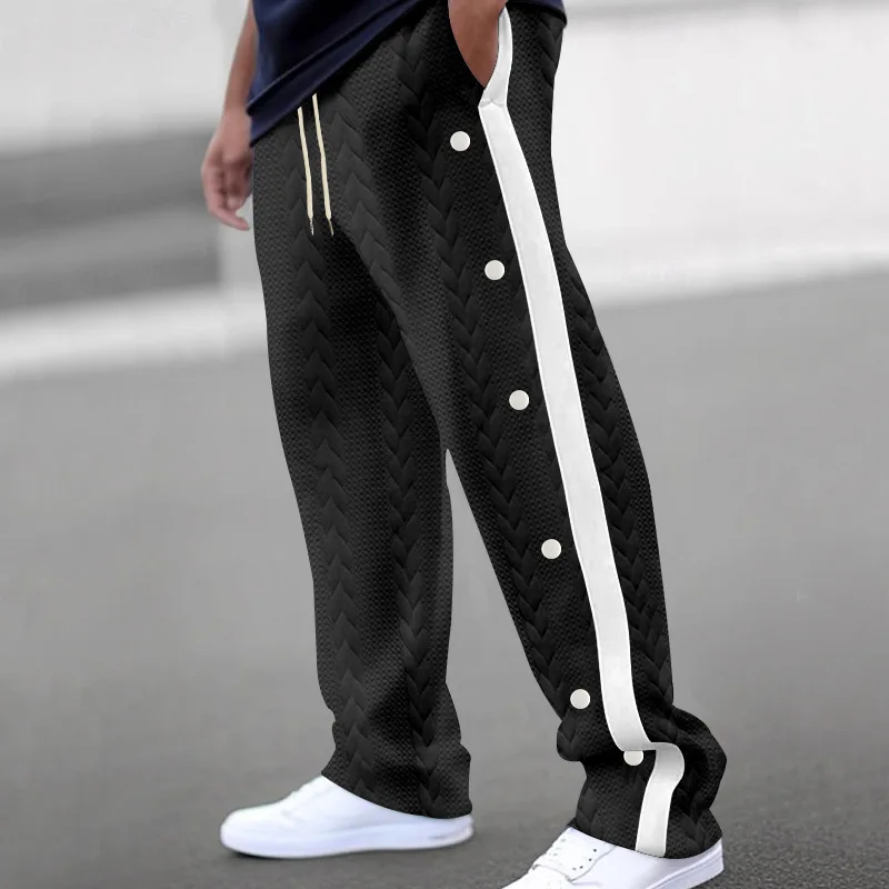 Riolio New men's textured jacquard single-breasted strips loose large-size casual pants versatile sweatpants