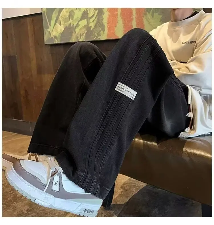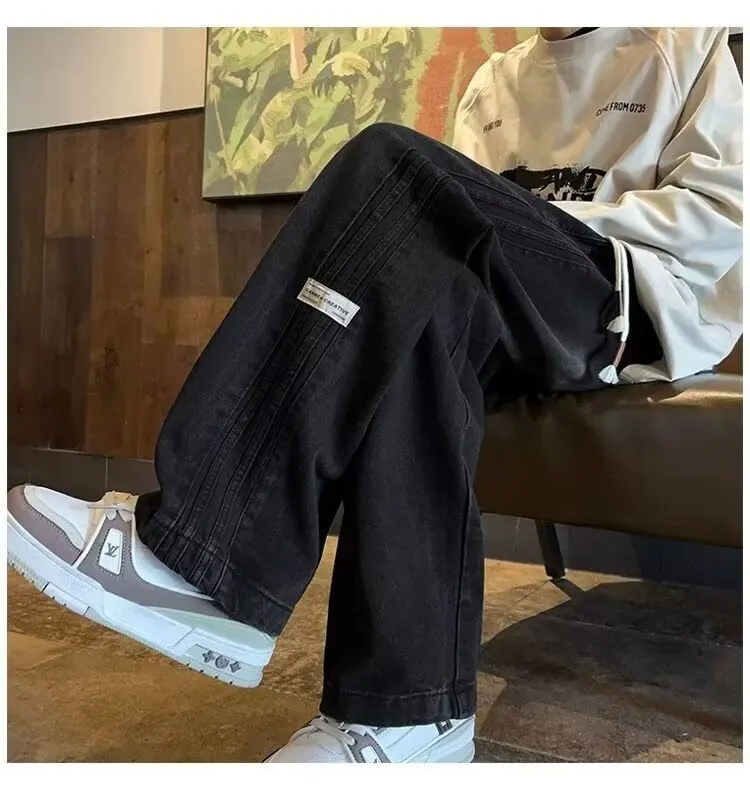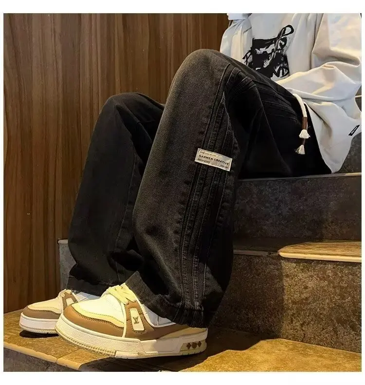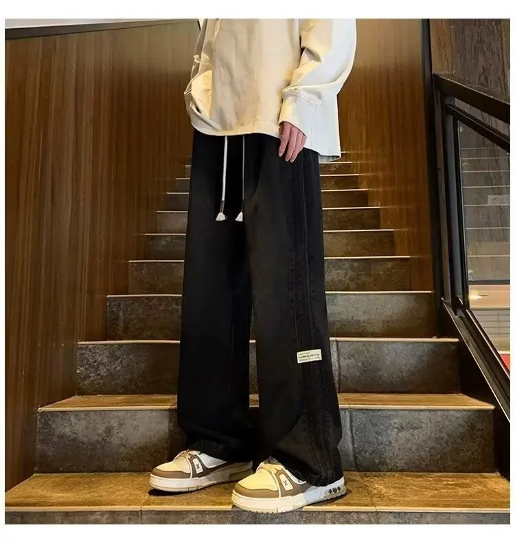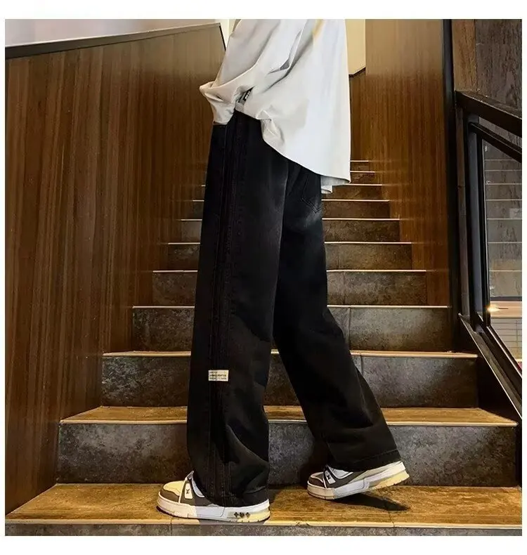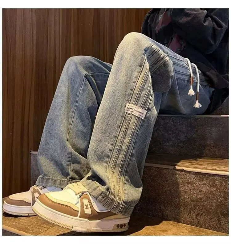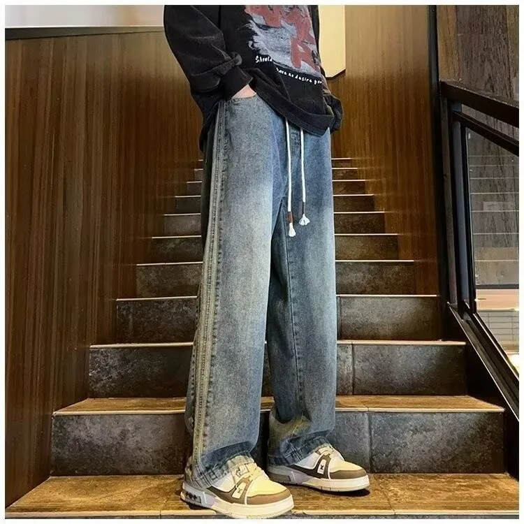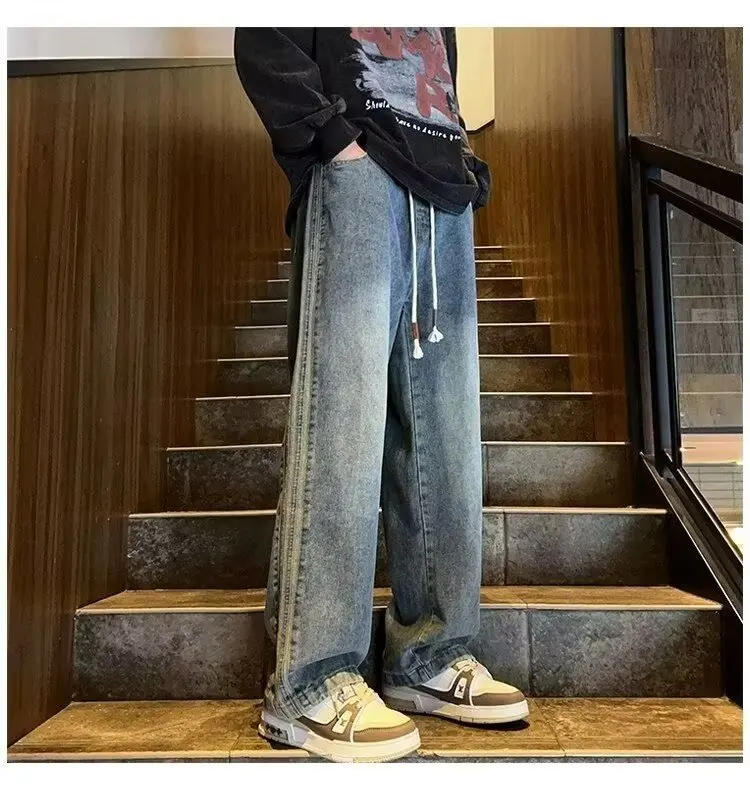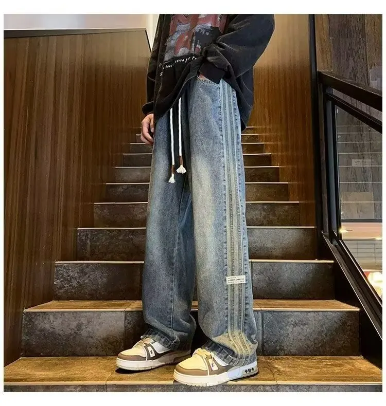 Riolio Striped Jeans Men Spring Summer Denim Jeans Vintage Baggy Pants Women Elastic Waist Loose Straight Pants Fashion Men Trousers