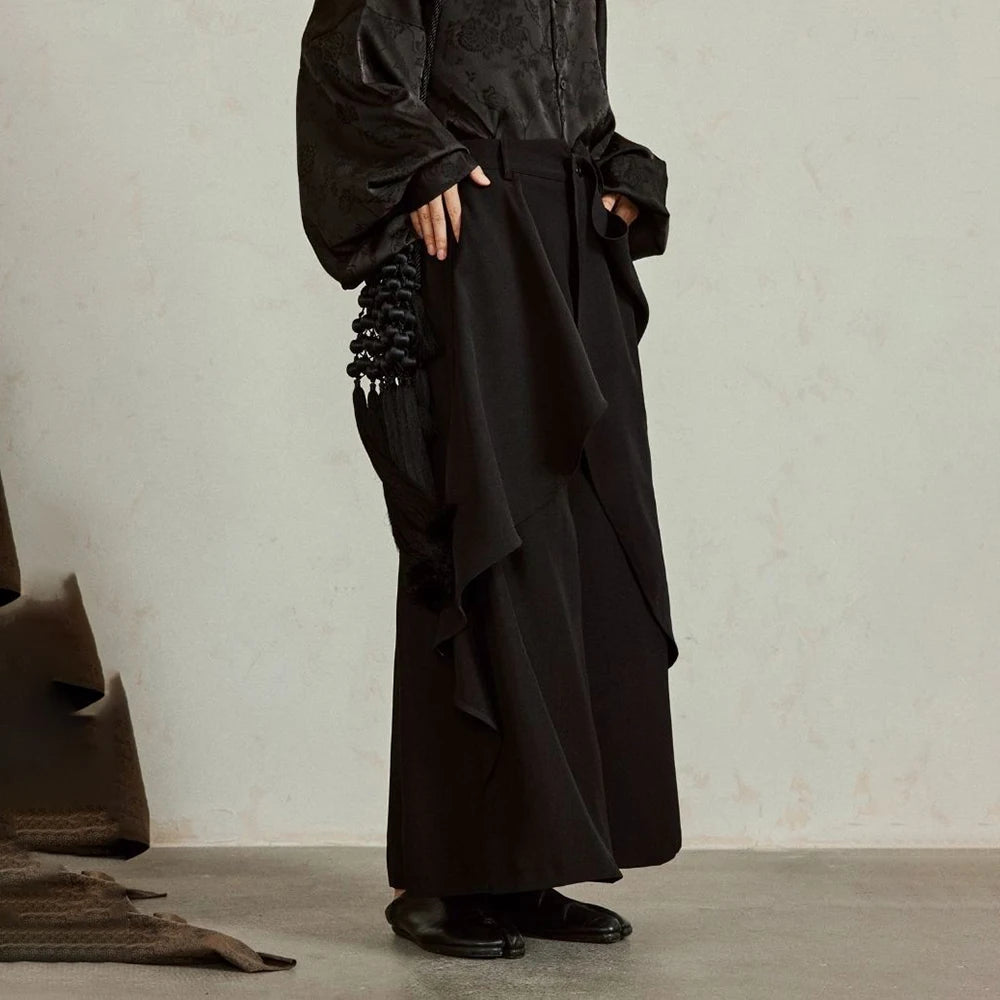 Riolio XS-5XL Y2k Irregular Skirt Pants Gothic Dark Multi-Layer Casual Pants Genderless Streetwear Fashion Youth Wide-Leg Pants Unisex