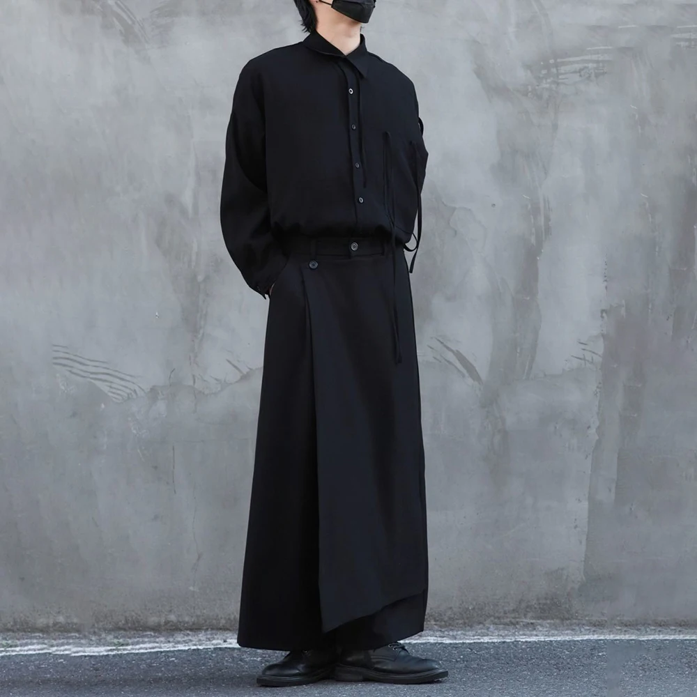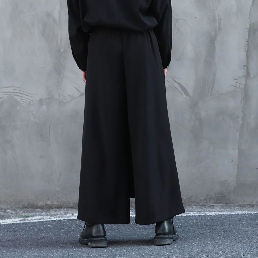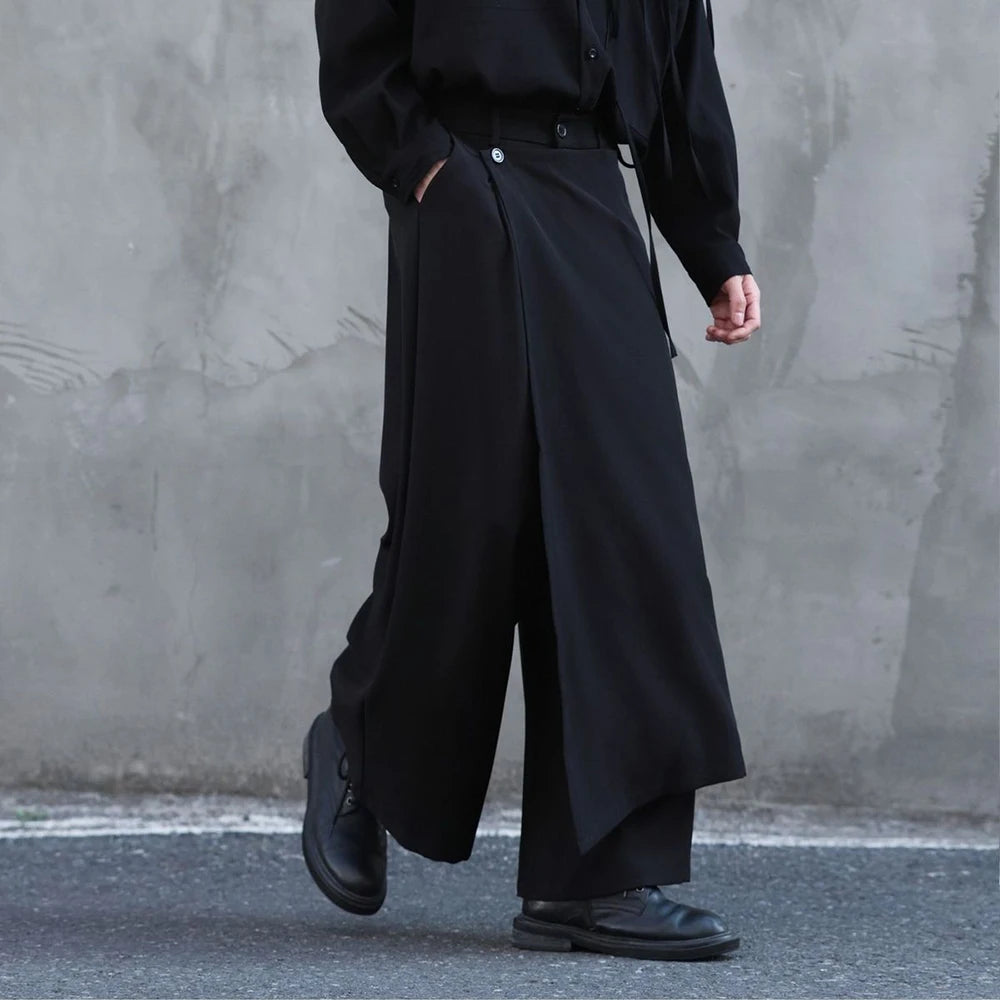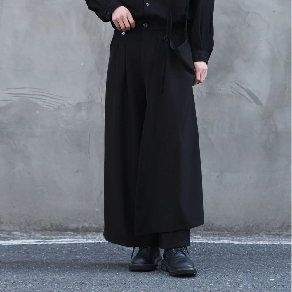 Riolio  Y2k Culottes Double-Layer Side Hem Casual Samurai Pants Hakama Genderless Streetwear Fashion Niche Youth Campus Wide-Leg Pants