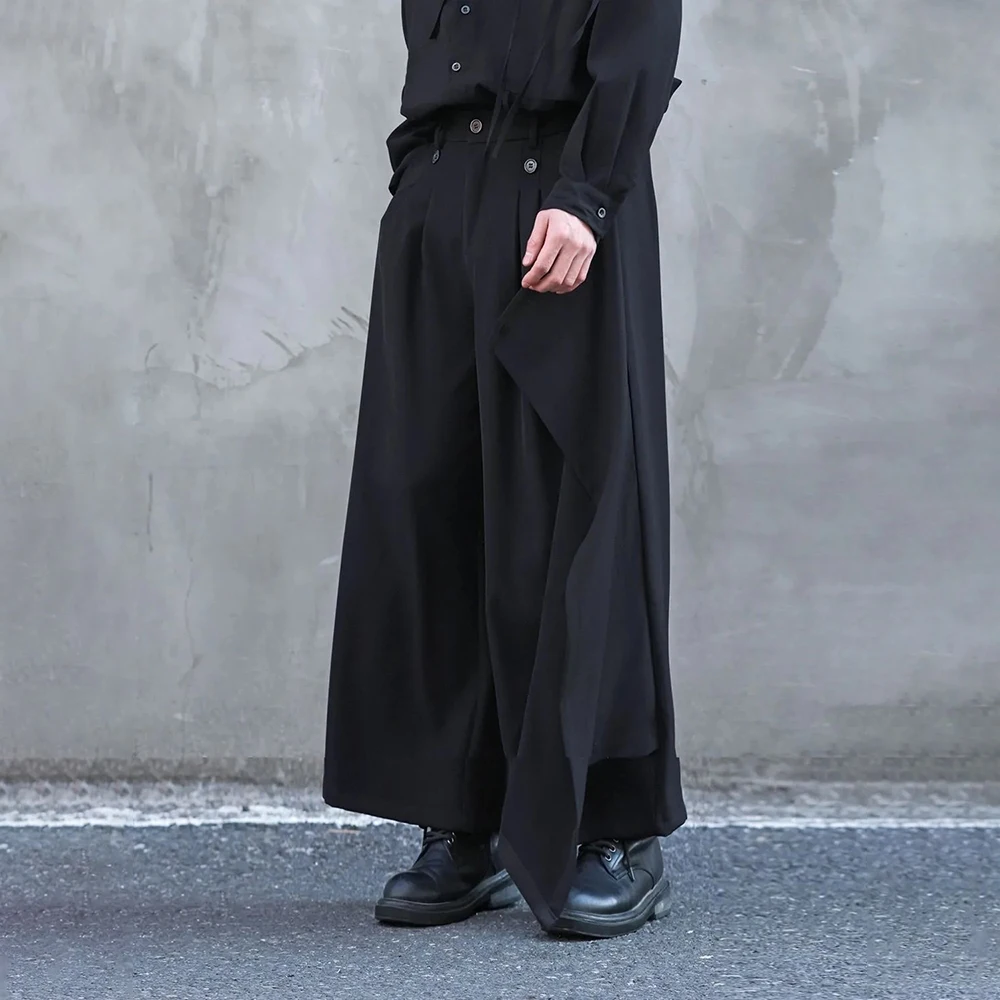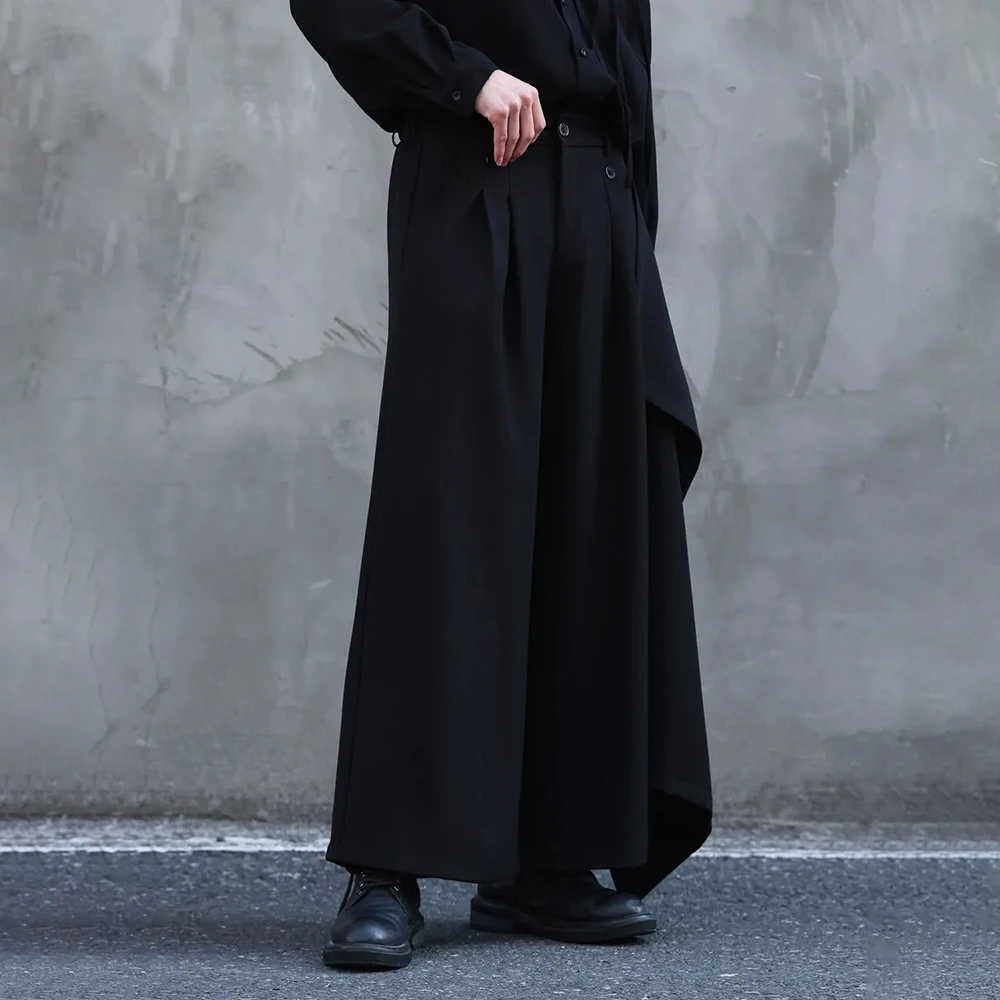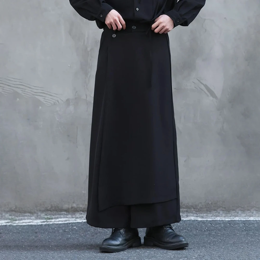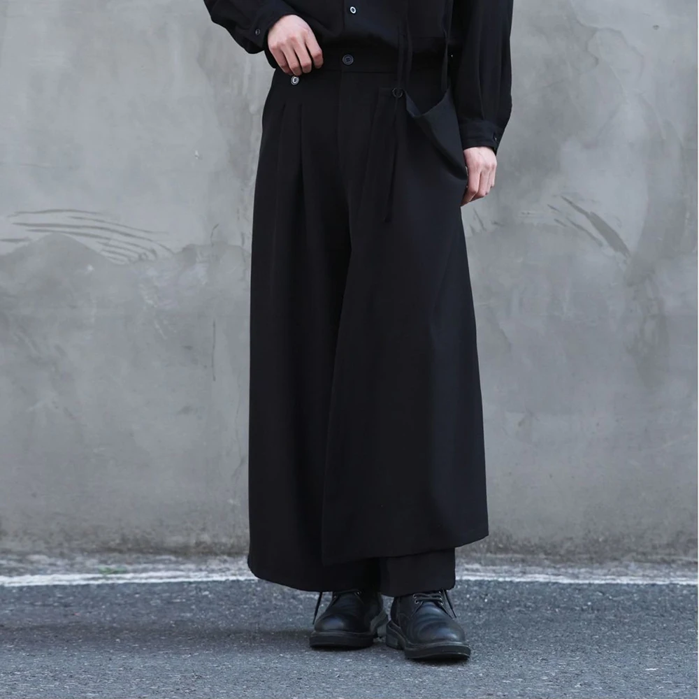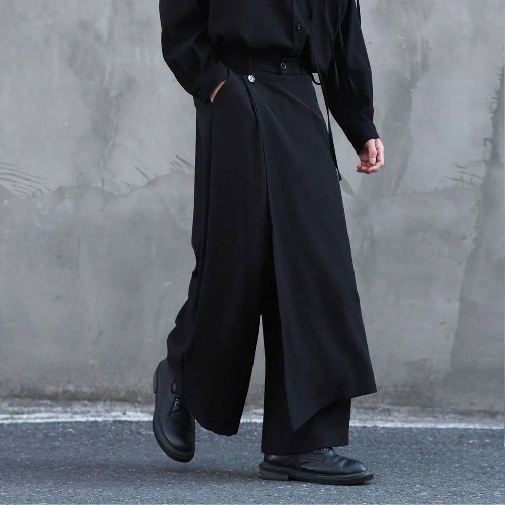 Riolio Y2k Culottes Double-Layer Side Hem Casual Samurai Pants Hakama Genderless Streetwear Fashion Niche Youth Campus Wide-Leg Pants