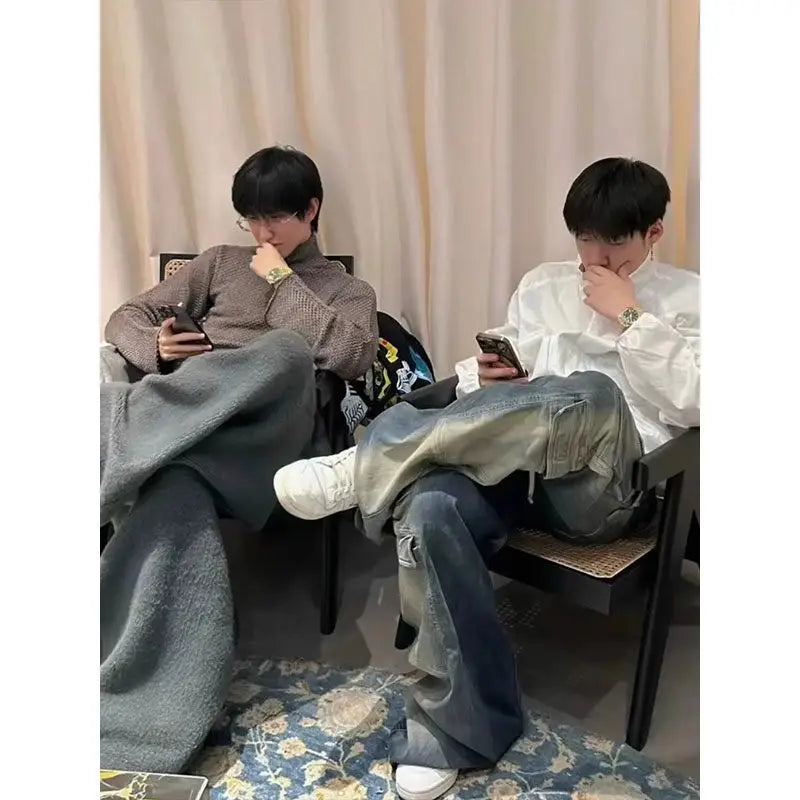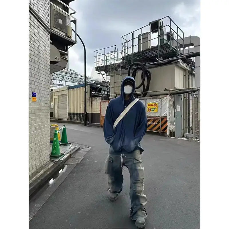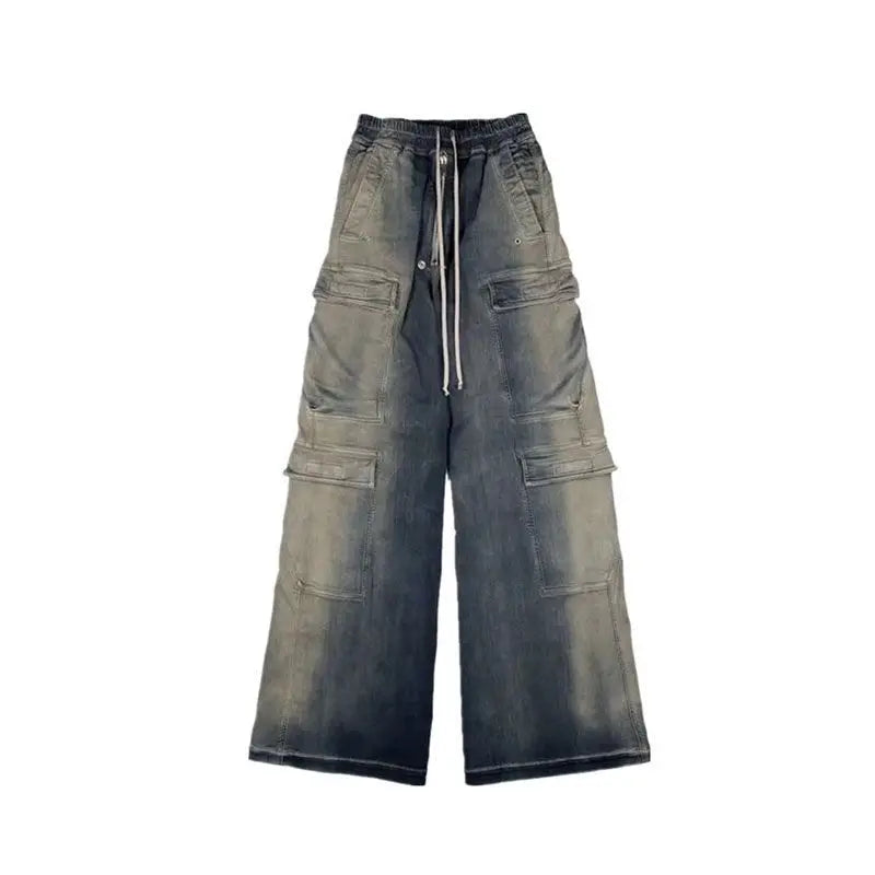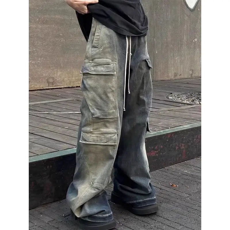 Riolio Y2k hip-hop loose straight leg wide leg men and women summer high-end retro washed gray blue denim workwear casual pants