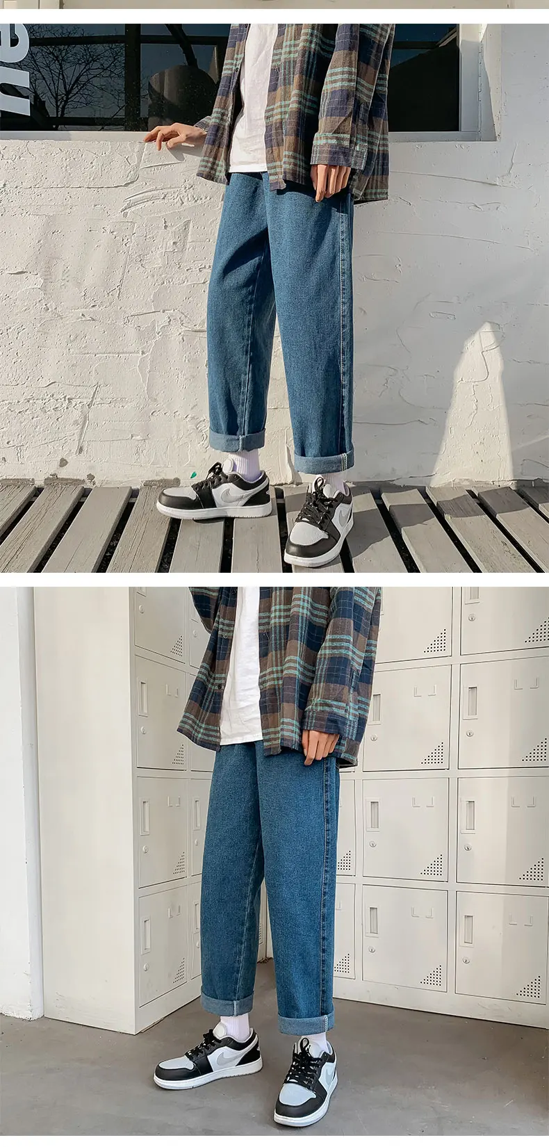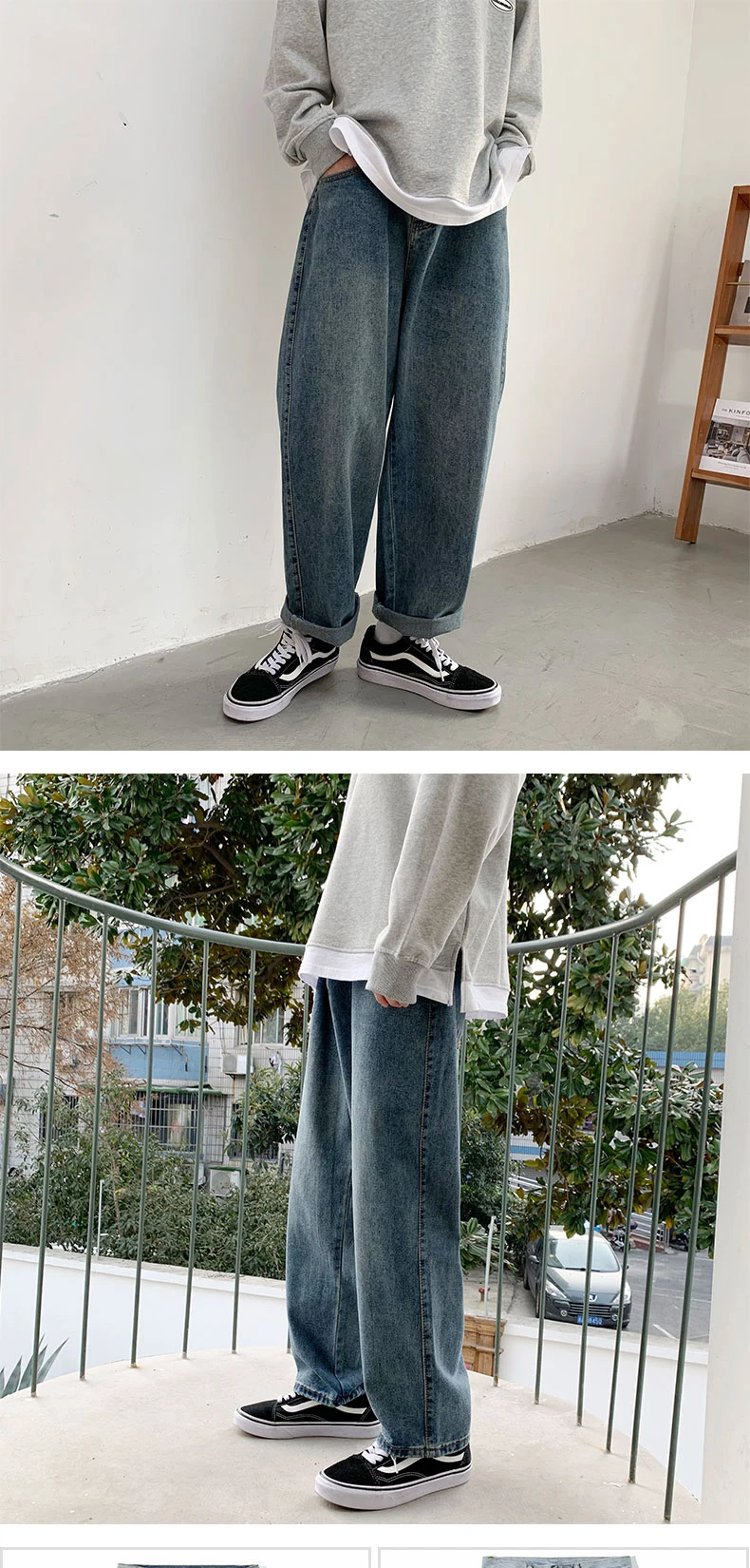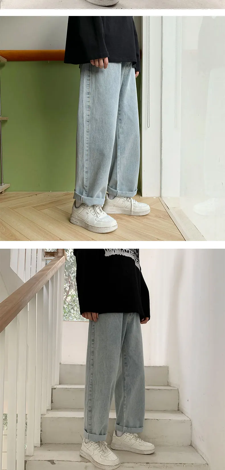 Riolio Wide Leg Jeans Men's Fashion Vintage Trousers Baggy Straight Personality Jeans Denim Pants Male Japanese Streetwear