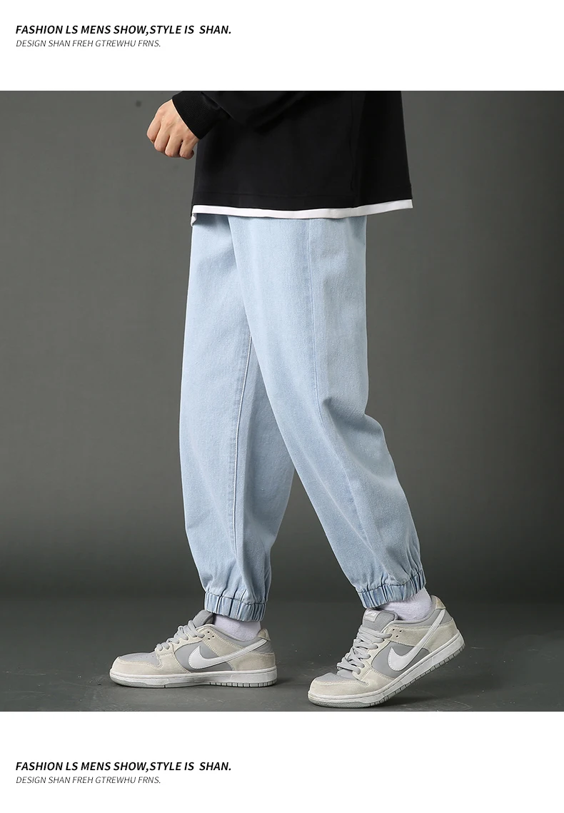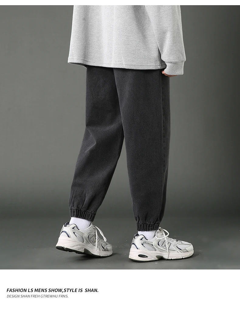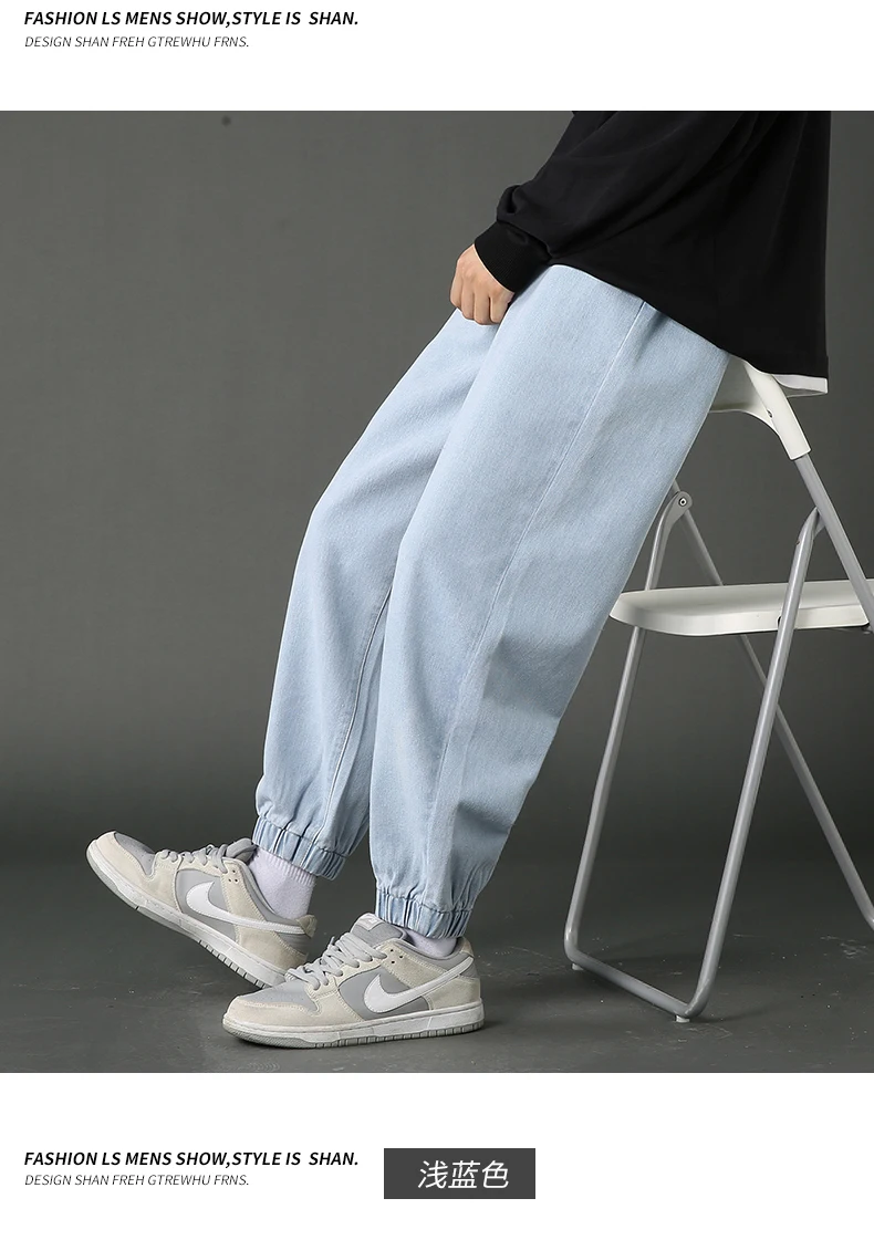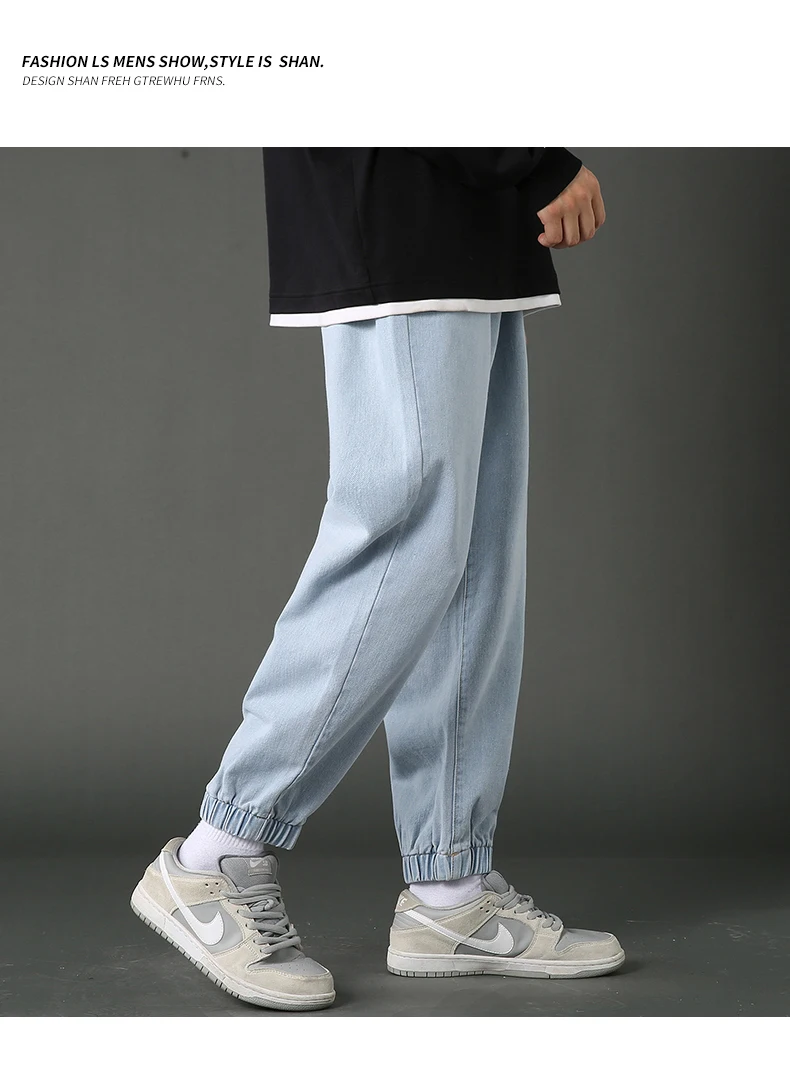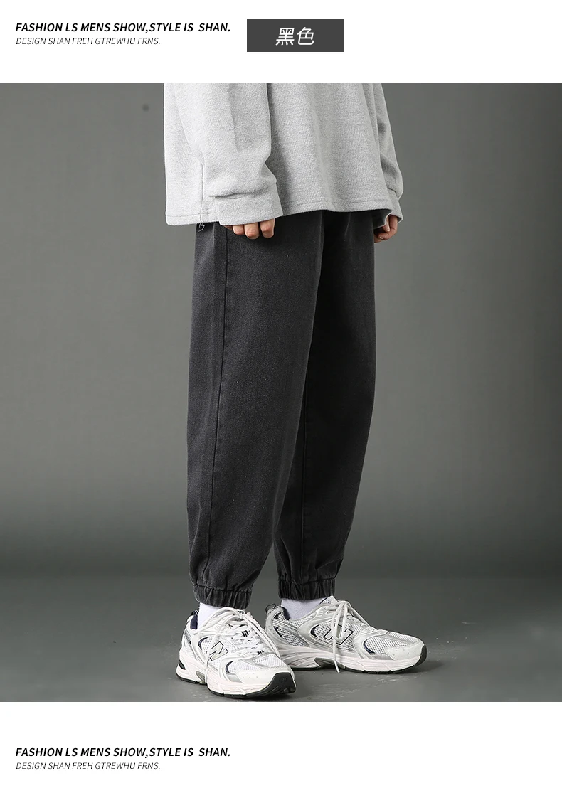 Riolio Young Men's Solid Color Cotton Jeans Fashion Loose Casual Pants High Street Student Casual Pants Blue Black