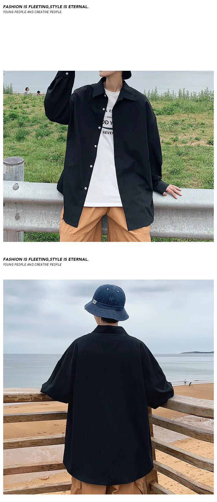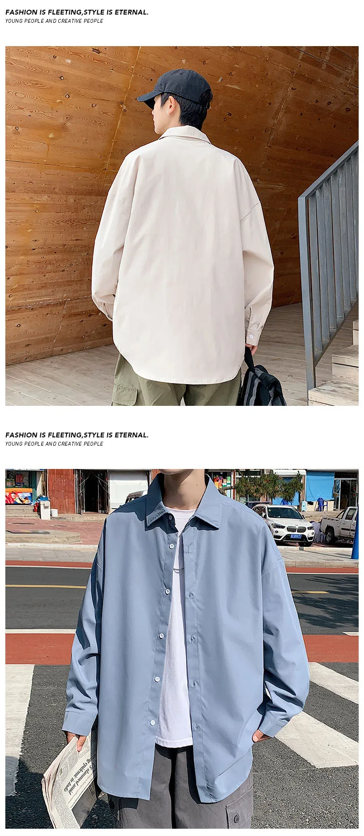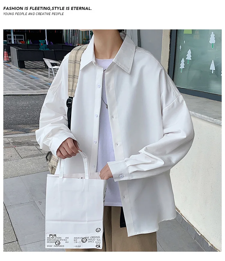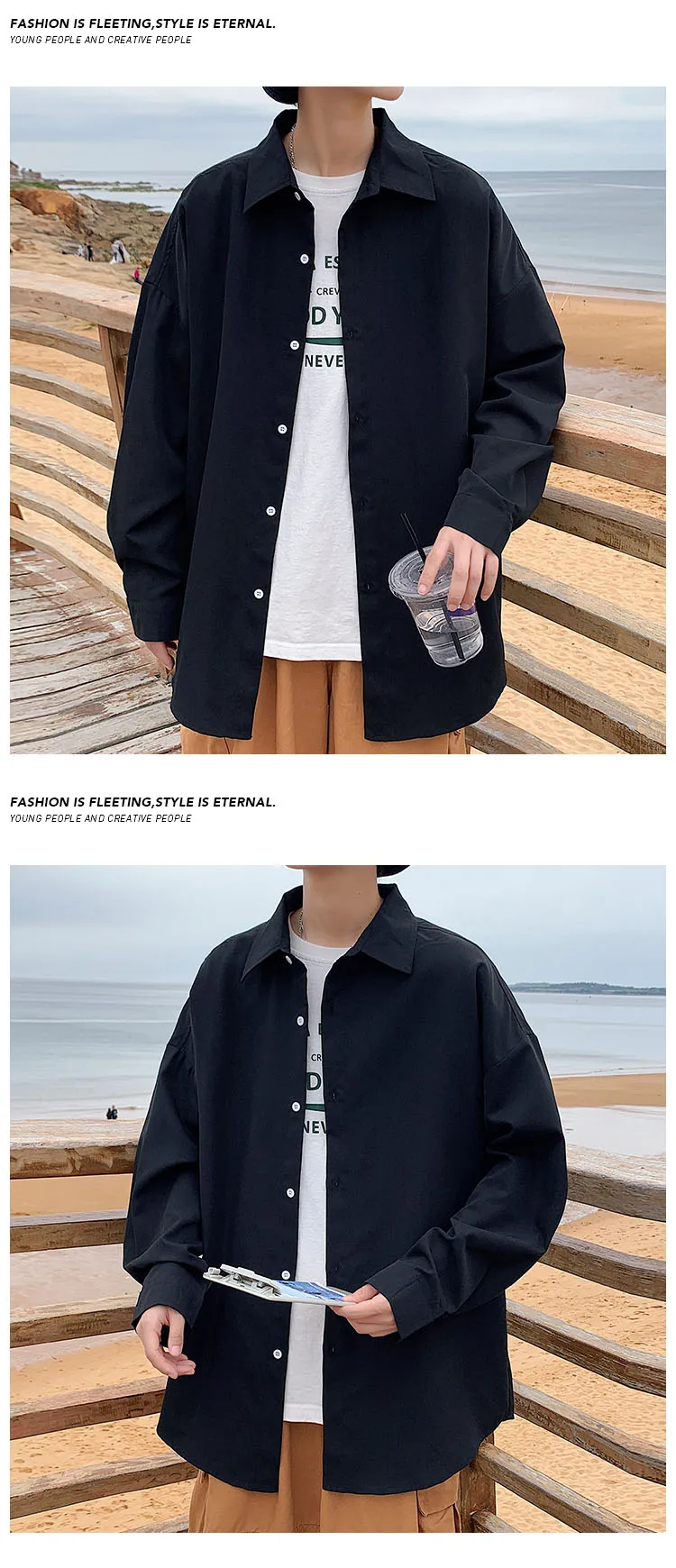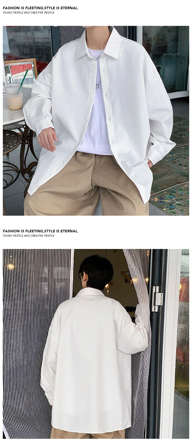 50KG-110KG New Casual Harajuku Plain Men Shirt Long Sleeve White Solid Korean Casual Shirts Loose Button Down Male Blouses
