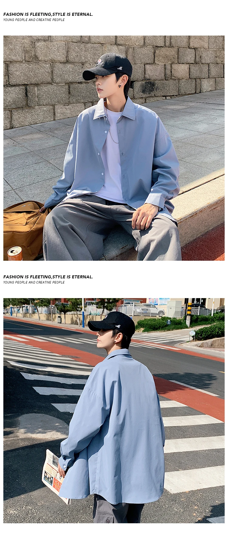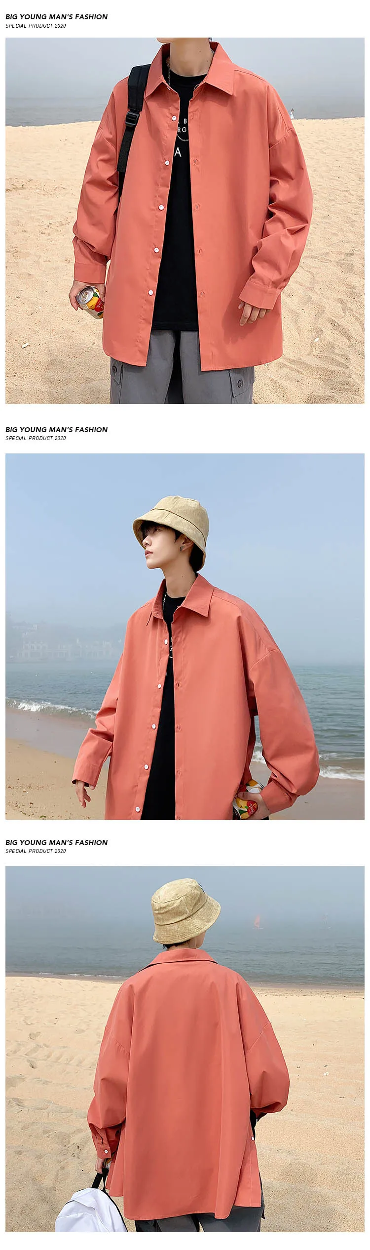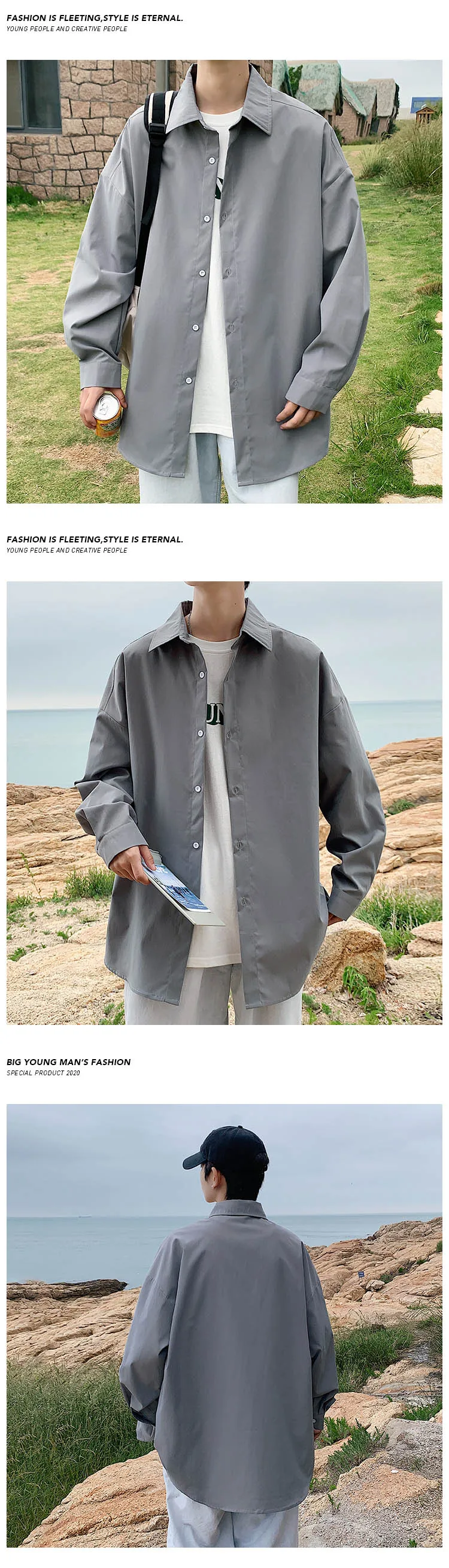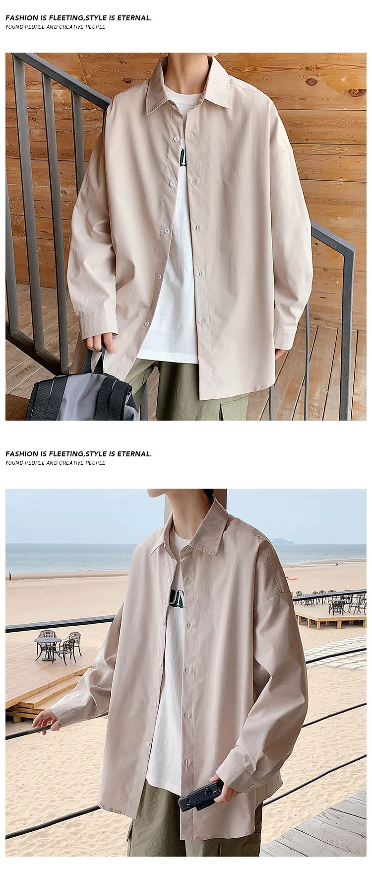 50KG-110KG New Casual Harajuku Plain Men Shirt Long Sleeve White Solid Korean Casual Shirts Loose Button Down Male Blouses