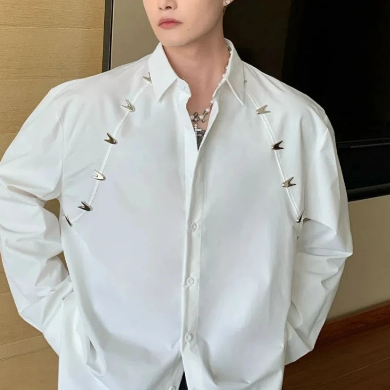 Riolio Spring Autumn New Fashion Turn-down Collar Long Sleeve Solid Color Blouse Men's Clothing Button Korean Embroidered Flares Shirts