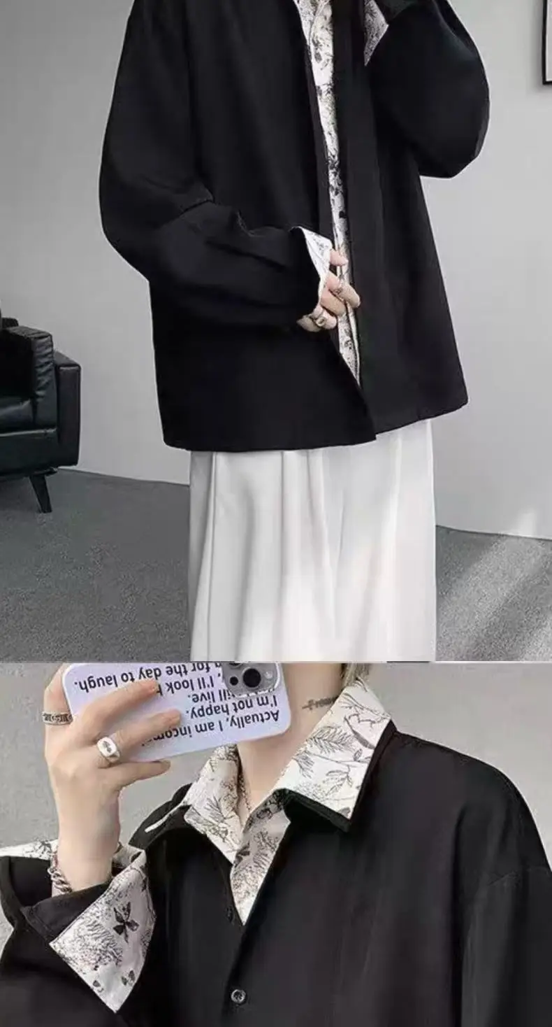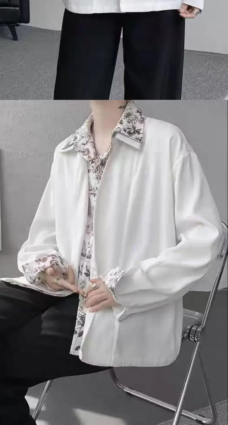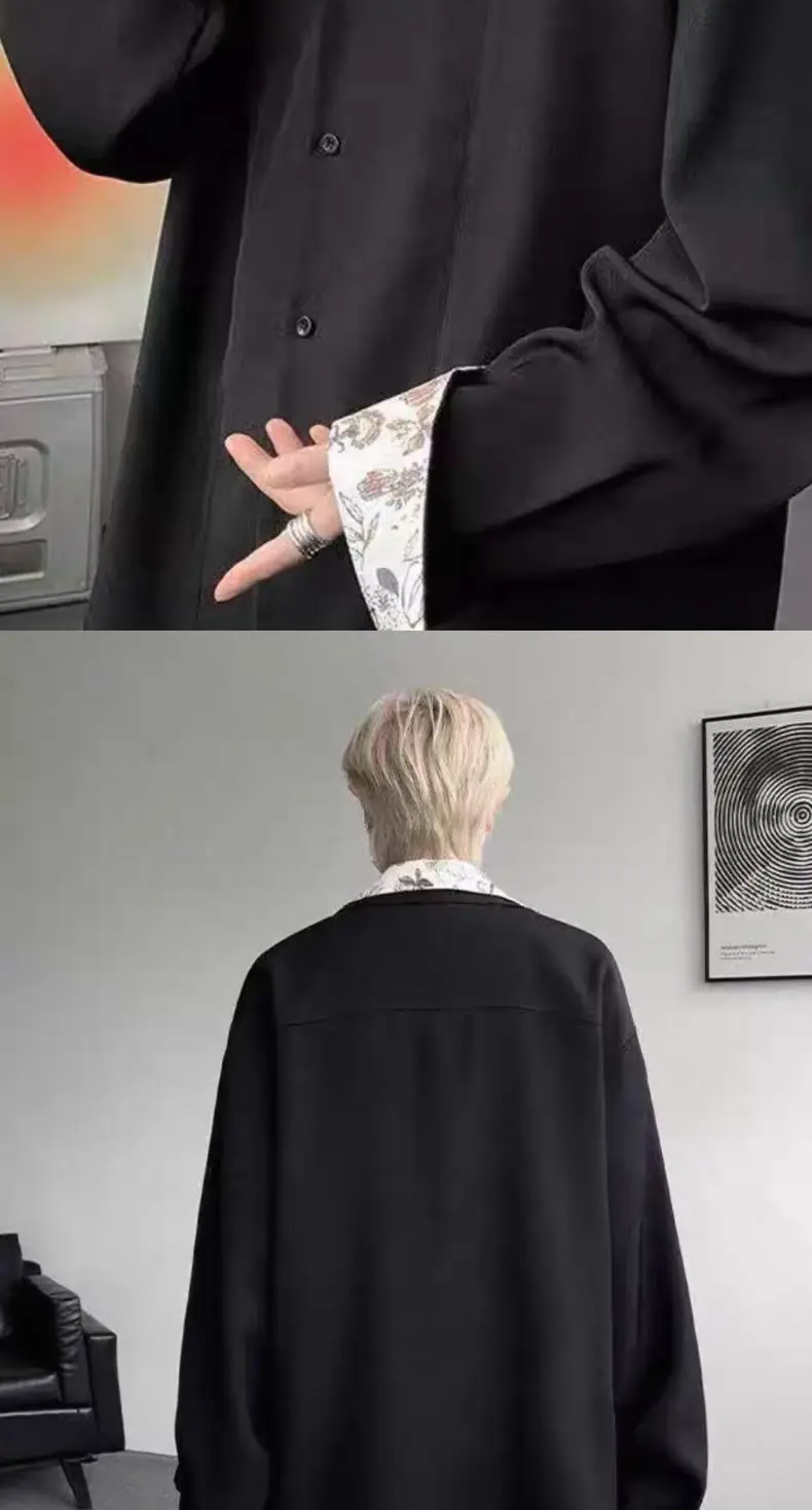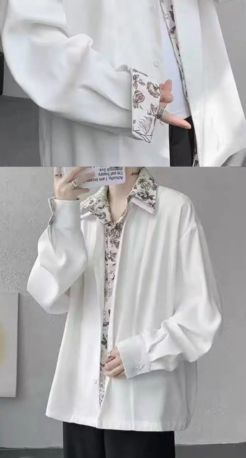 Riolio Men's Oversized Shirt with Floral Print Contrast Collar