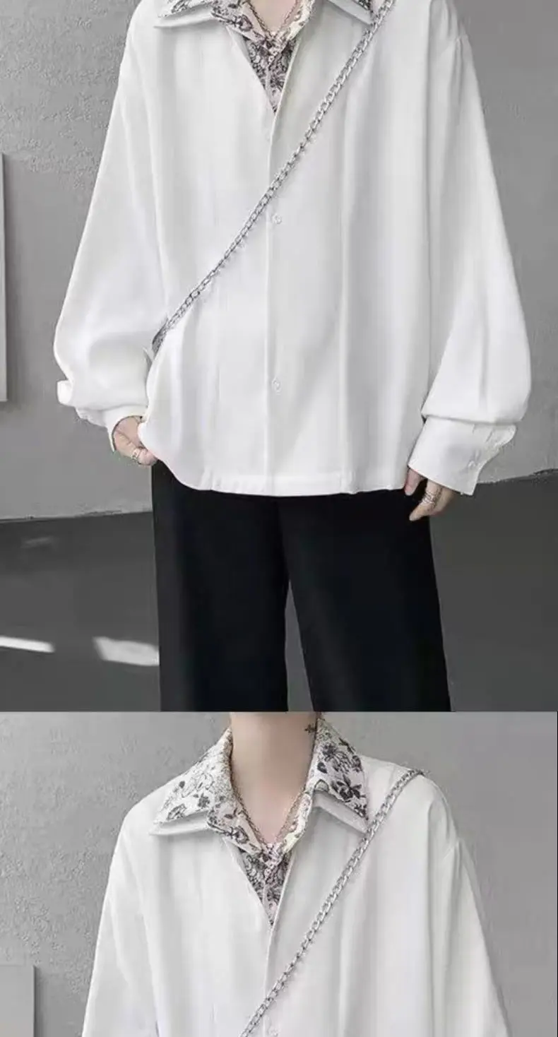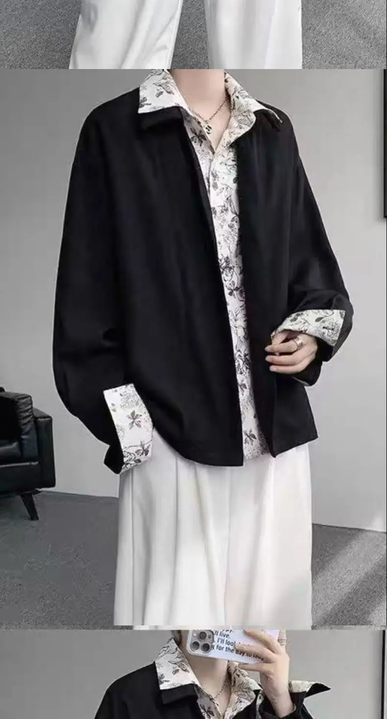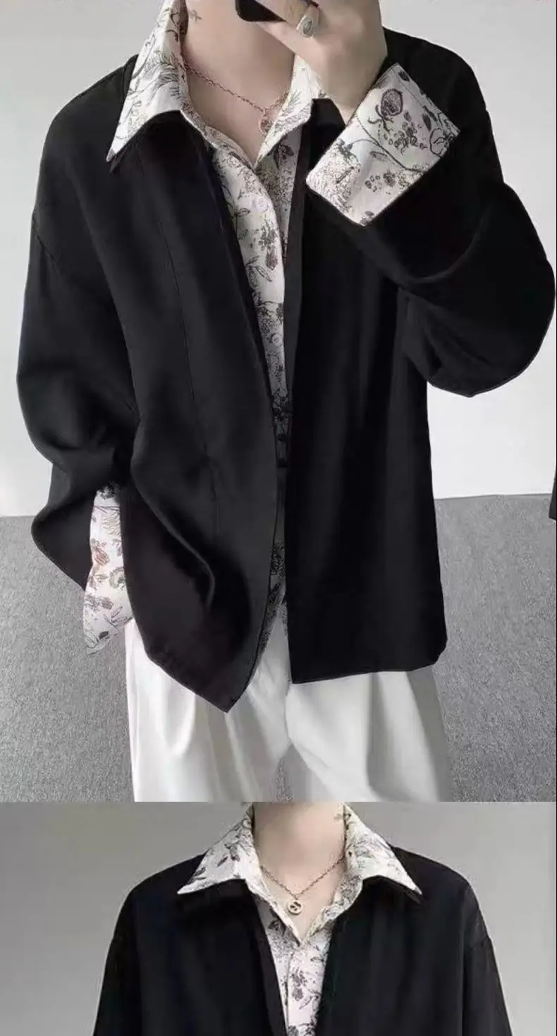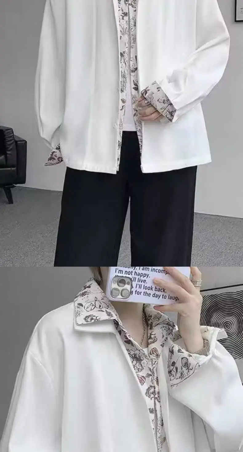 Riolio Men's Oversized Shirt with Floral Print Contrast Collar