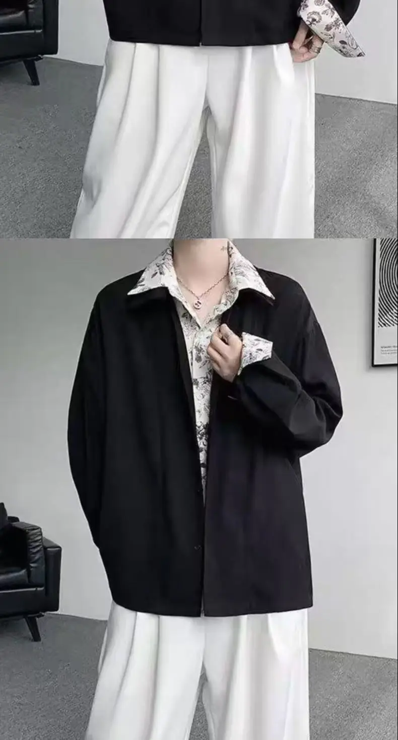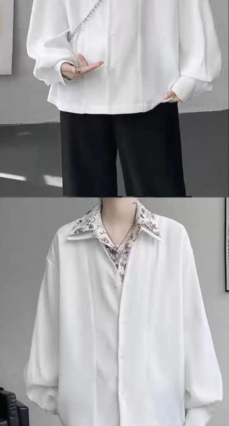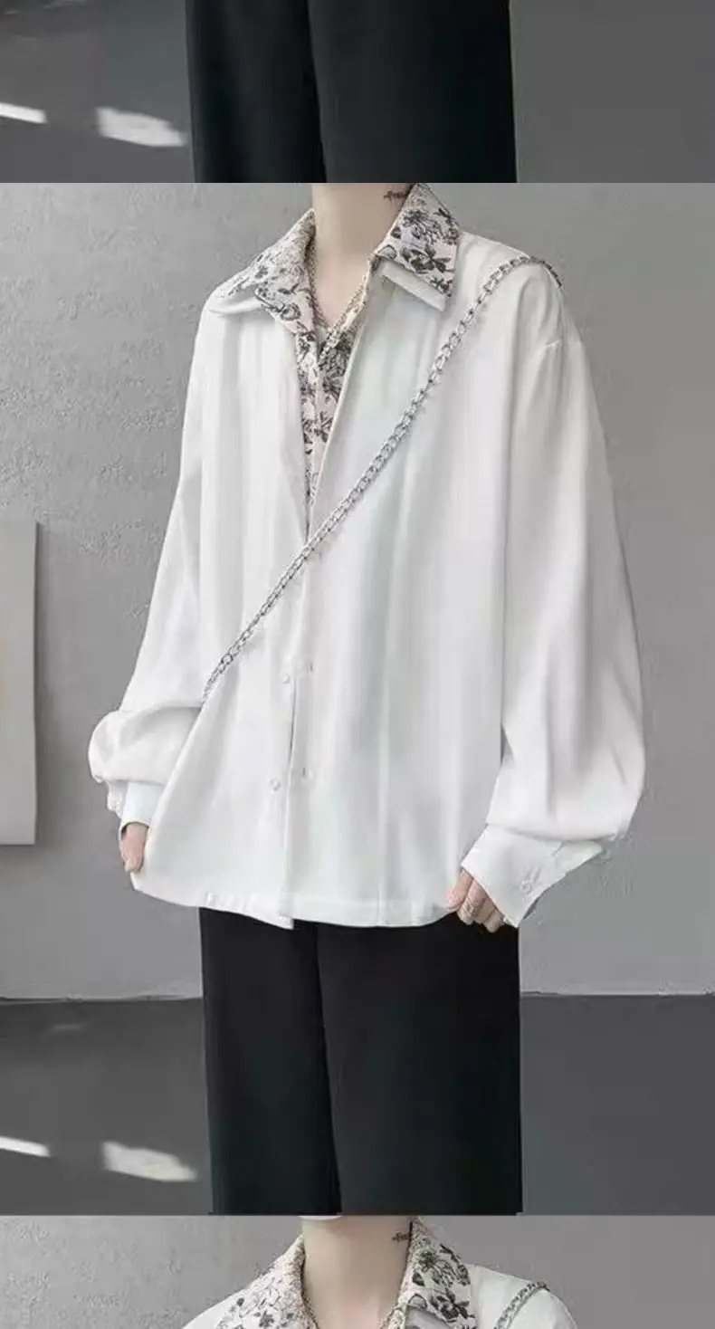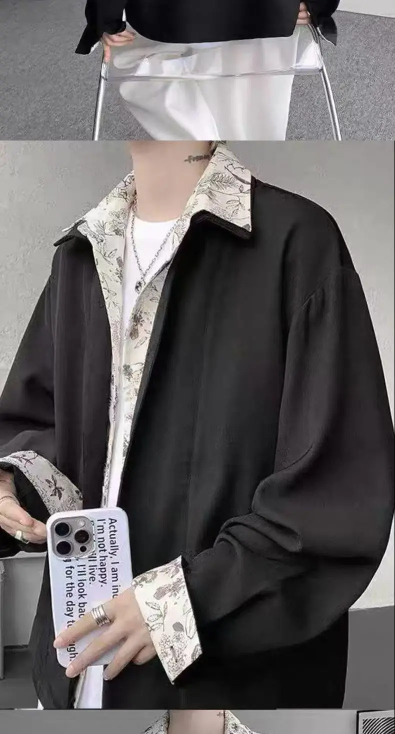 Riolio Men's Oversized Shirt with Floral Print Contrast Collar