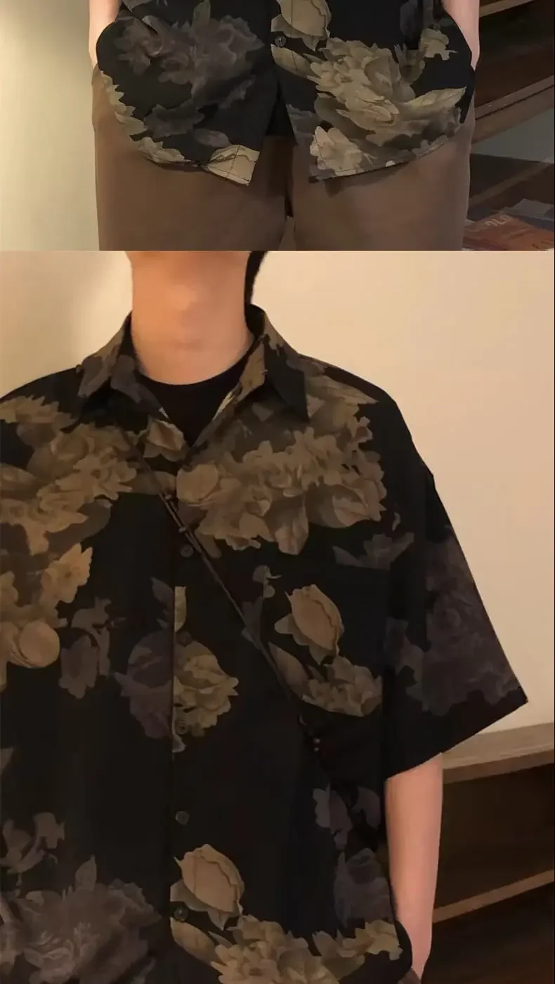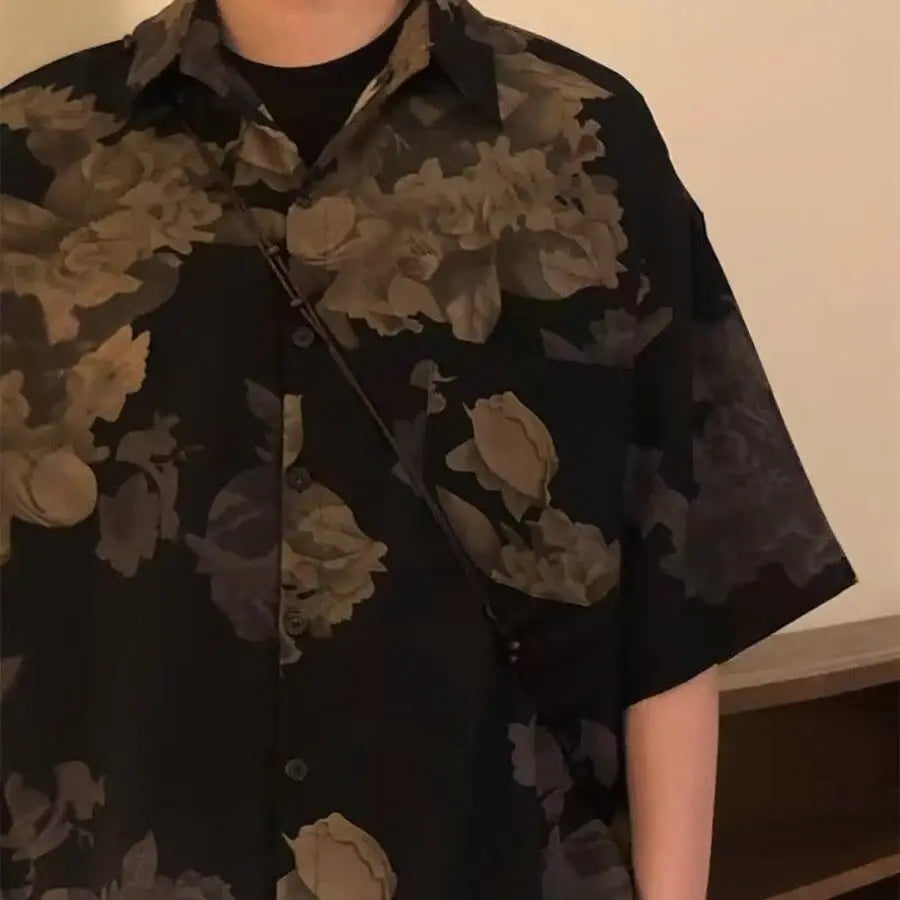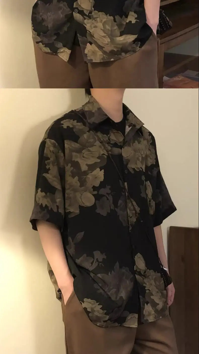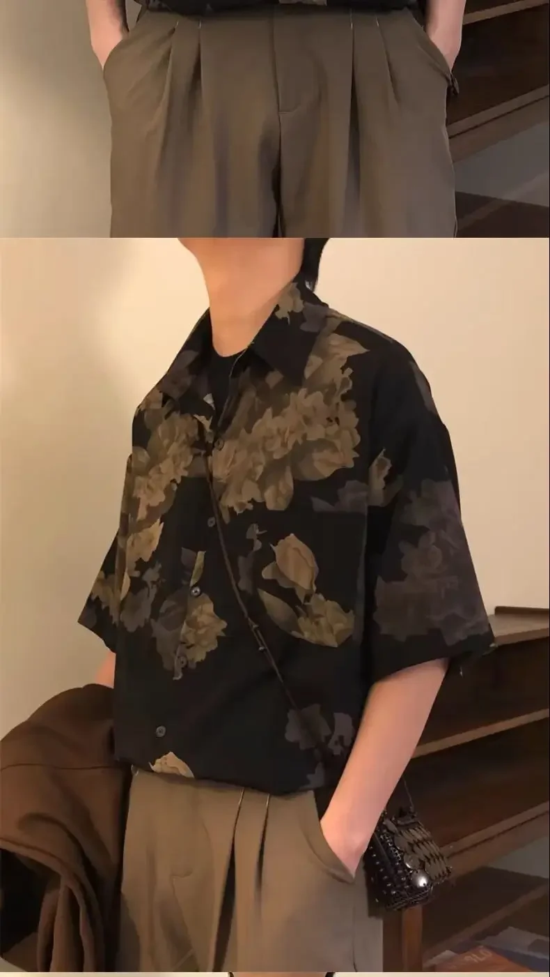 Riolio Printed Short-sleeved Shirt Men's Casual Five-quarter Sleeve Lapel Work Jacket