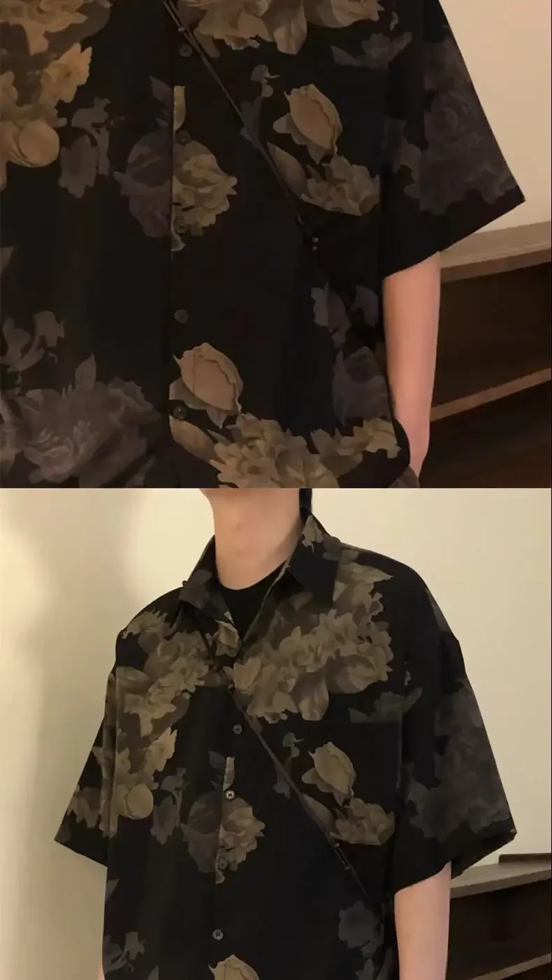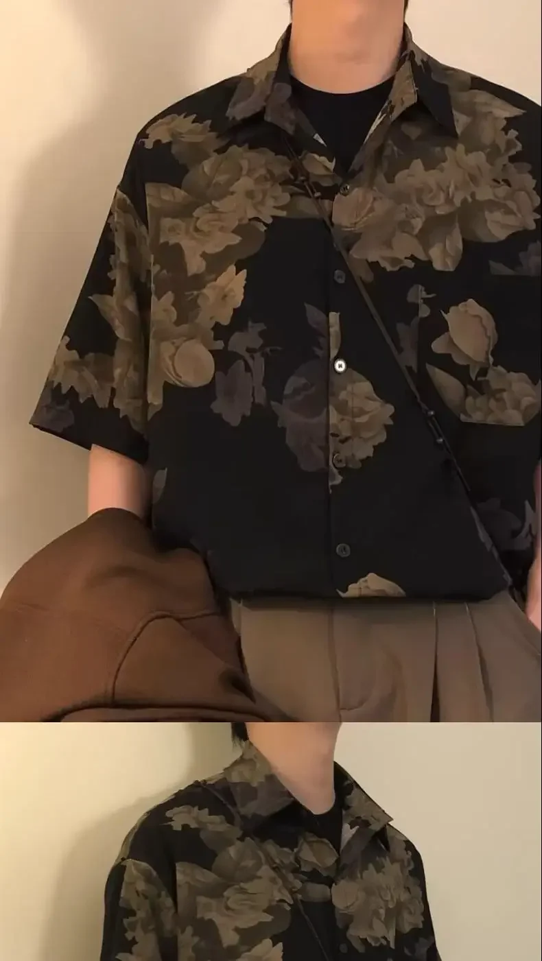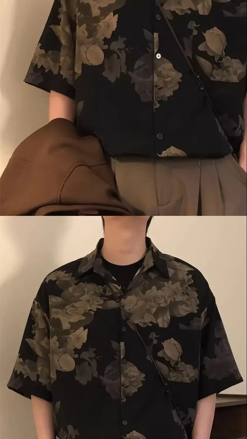 Riolio Printed Short-sleeved Shirt Men's Casual Five-quarter Sleeve Lapel Work Jacket