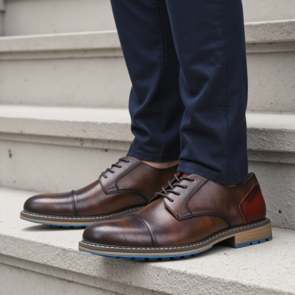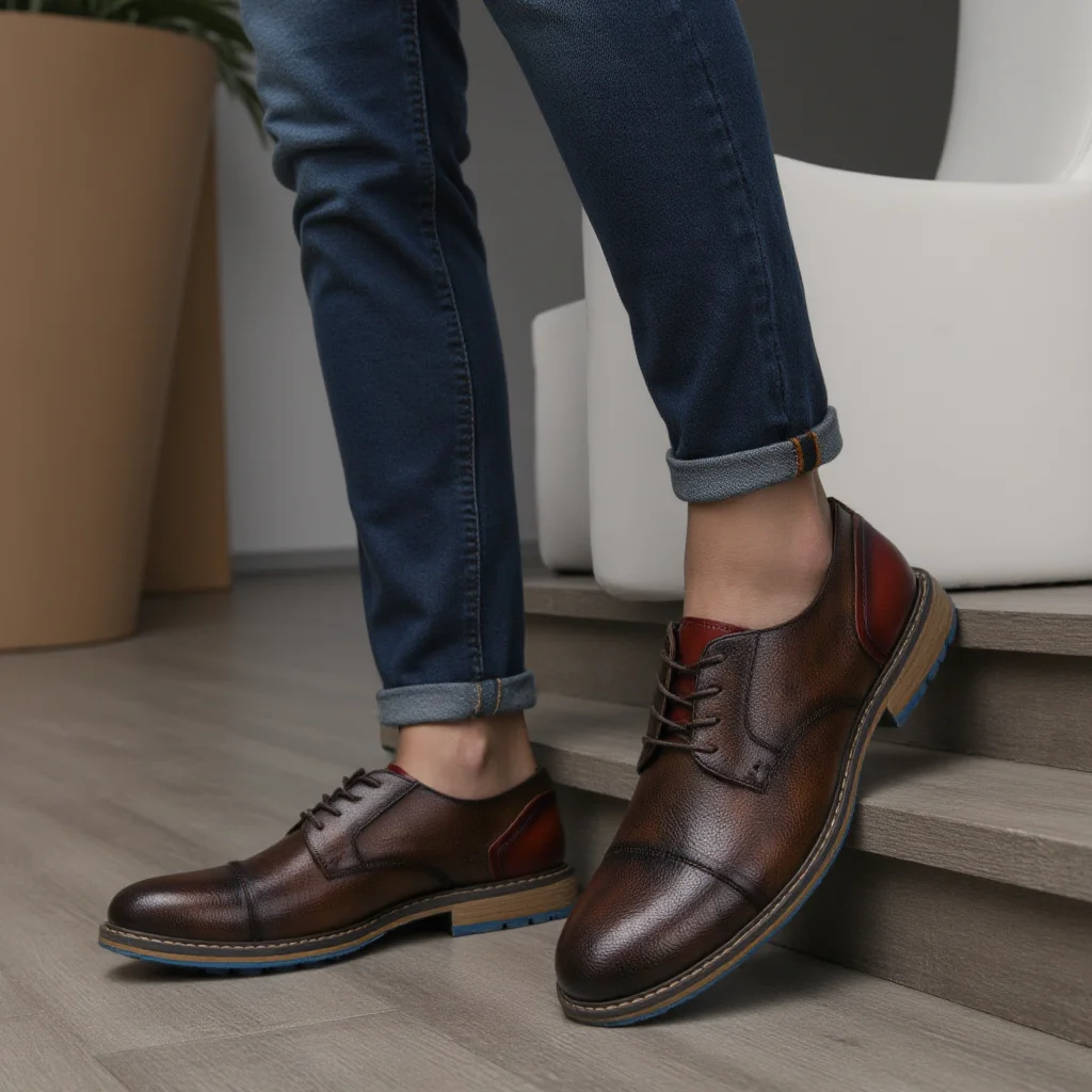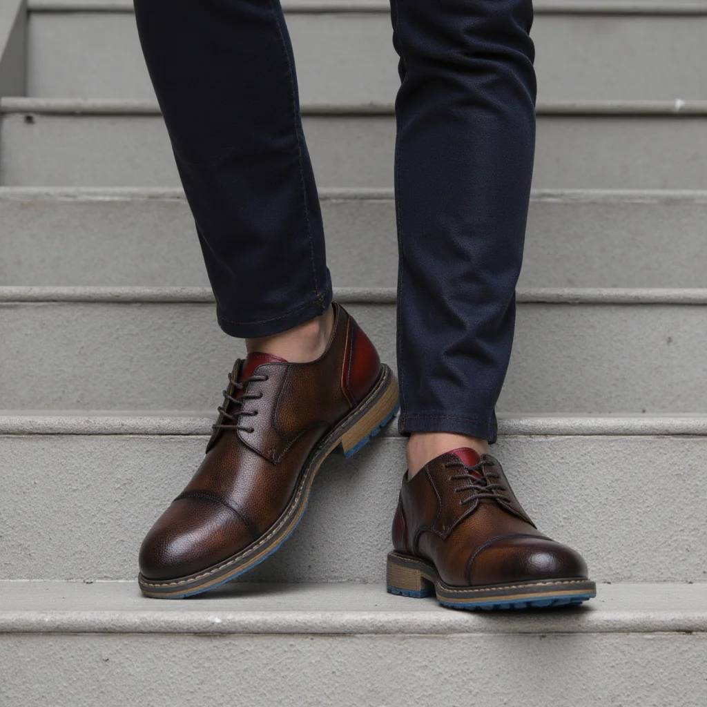 Riolio New Casual shoes Retro Men's Derby Shoes Men Fashion Leather Shoes
