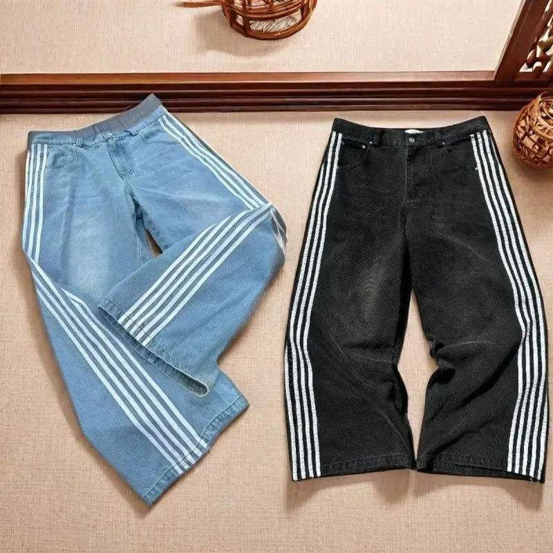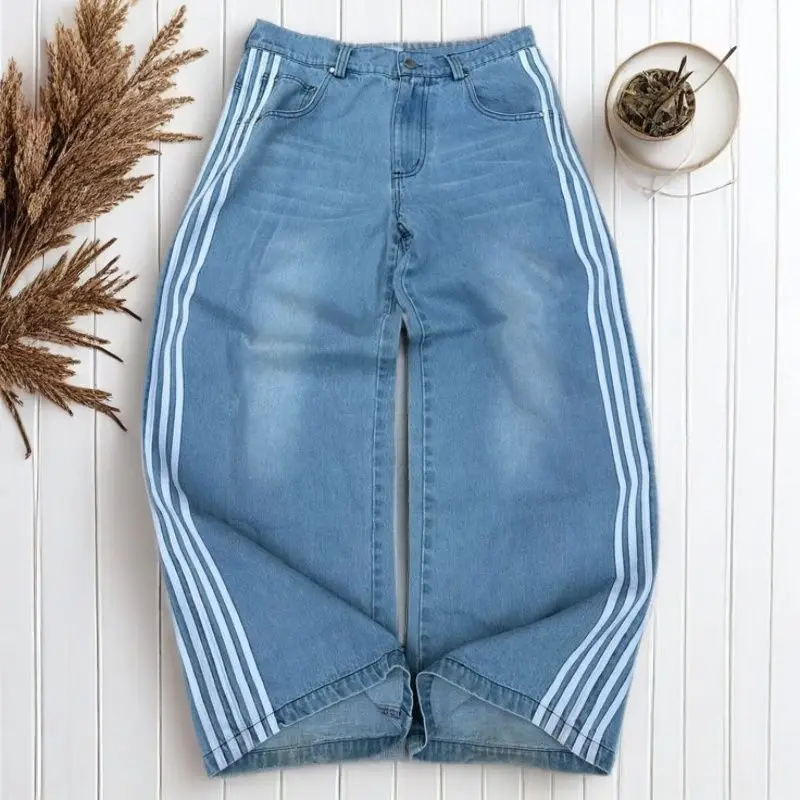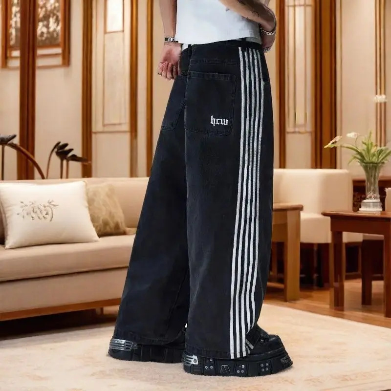 Riolio American striped design jeans harajuku straight wide leg pants loose casual denim pants vintage streetwear joggers men clothing