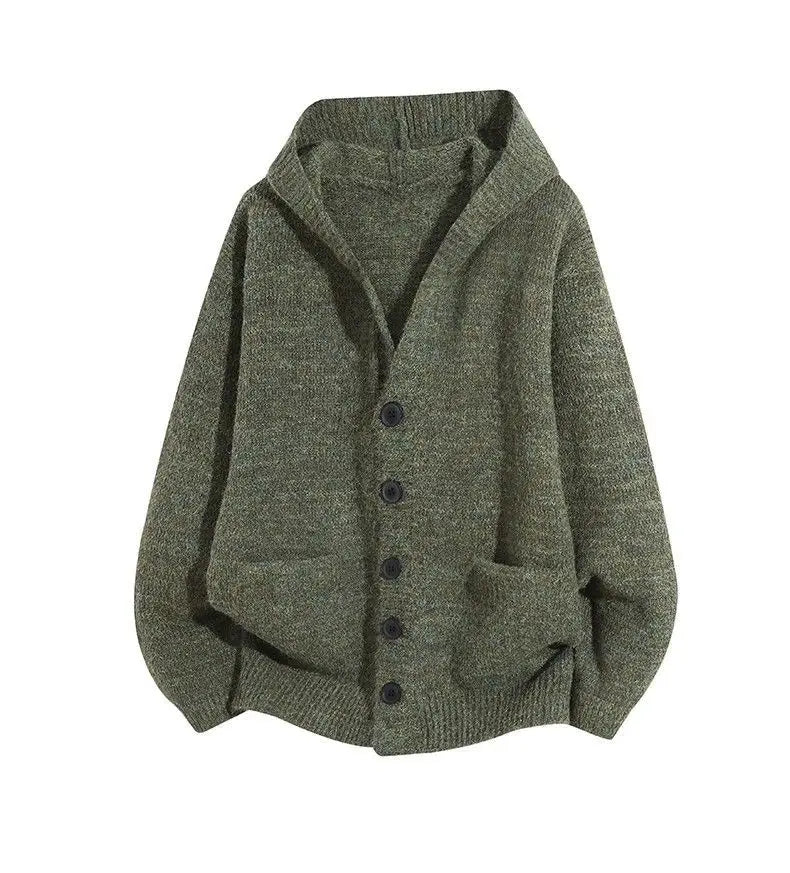 Riolio American-style autumn/winter streetwear unisex trendy hooded knit sweaters for couples with loose-fit retro Harajuku casual tops