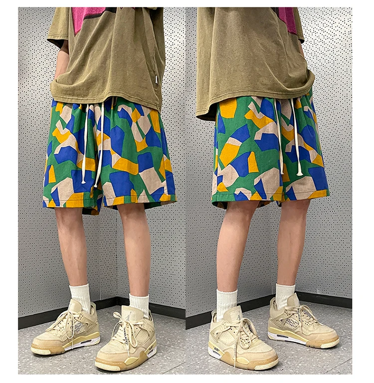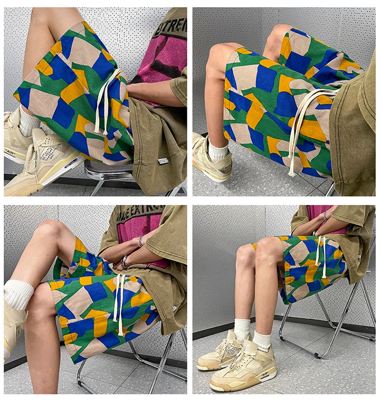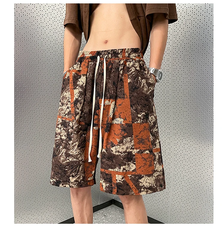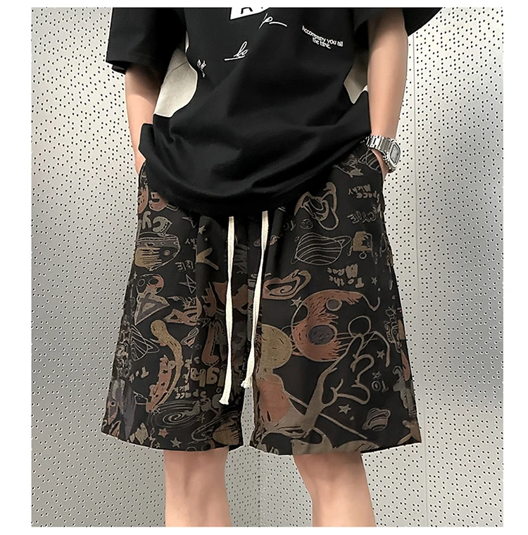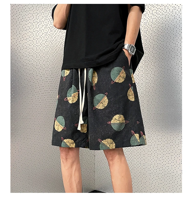 Casual Shorts For Men Gothic Summer Beach Knee Length Pants Elastic Waist Loose Male High Street Streetwear