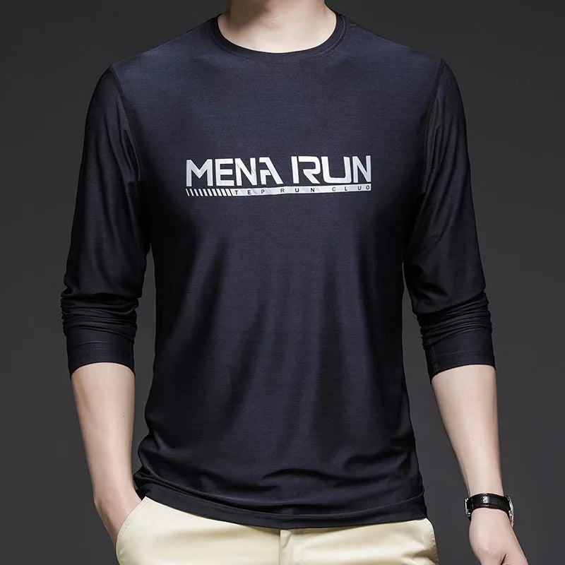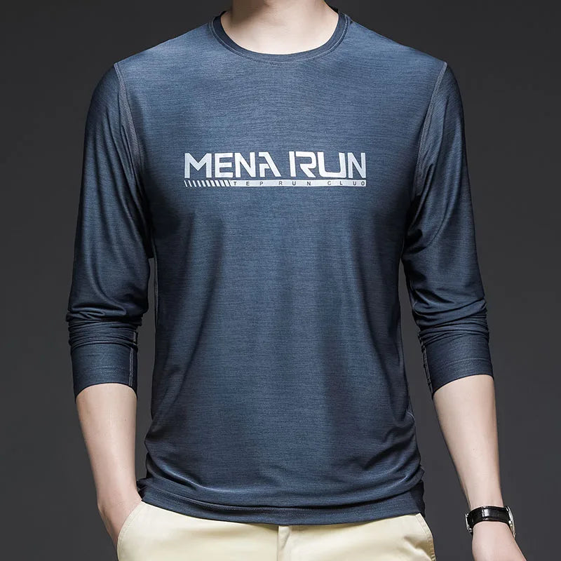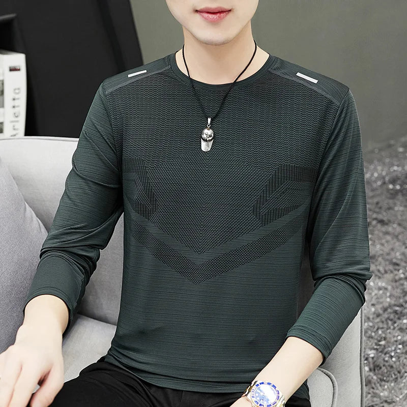 Riolio Ice Silk Long Sve T-irt for Men Slim Fit Qui Dry Smooth Material Spring Summer Base irt 30 40 Years Old Men's Faion