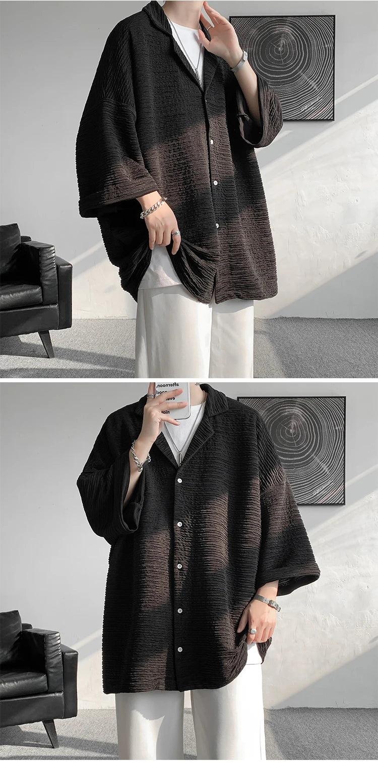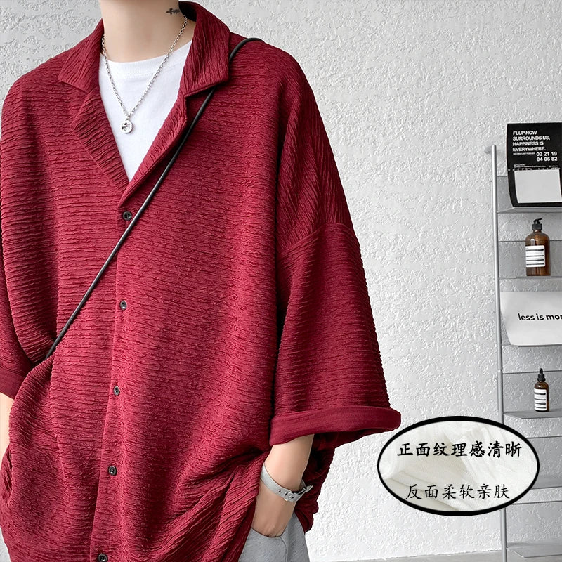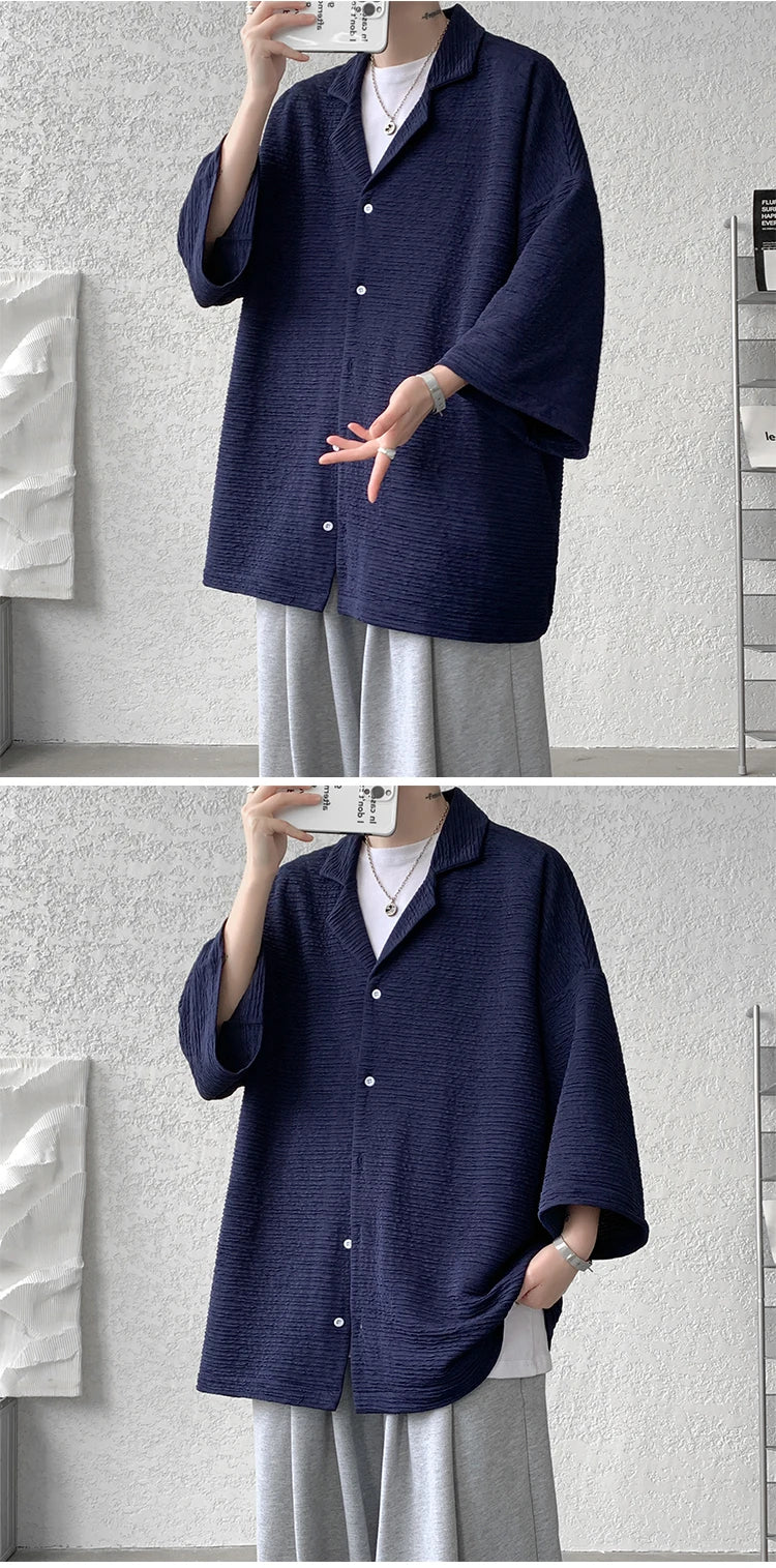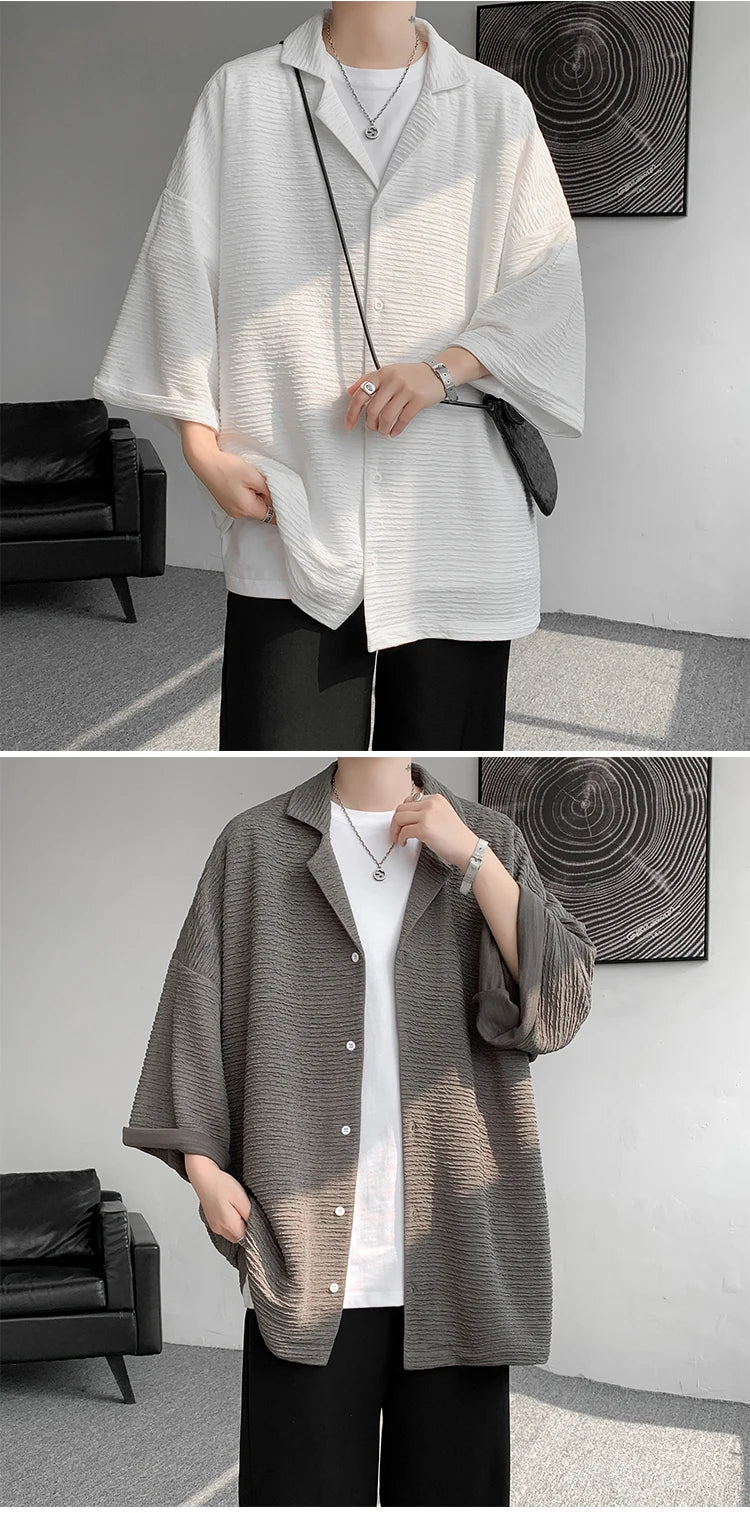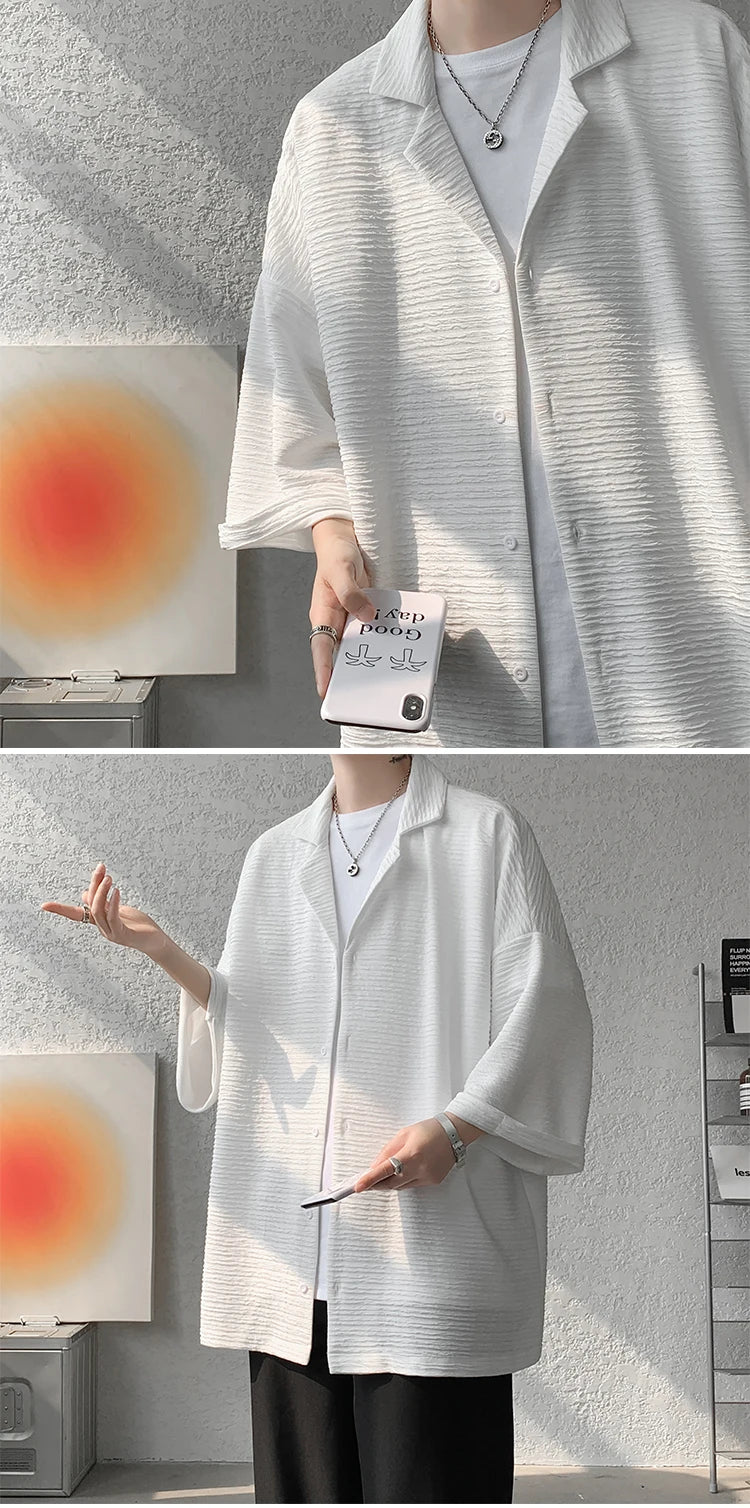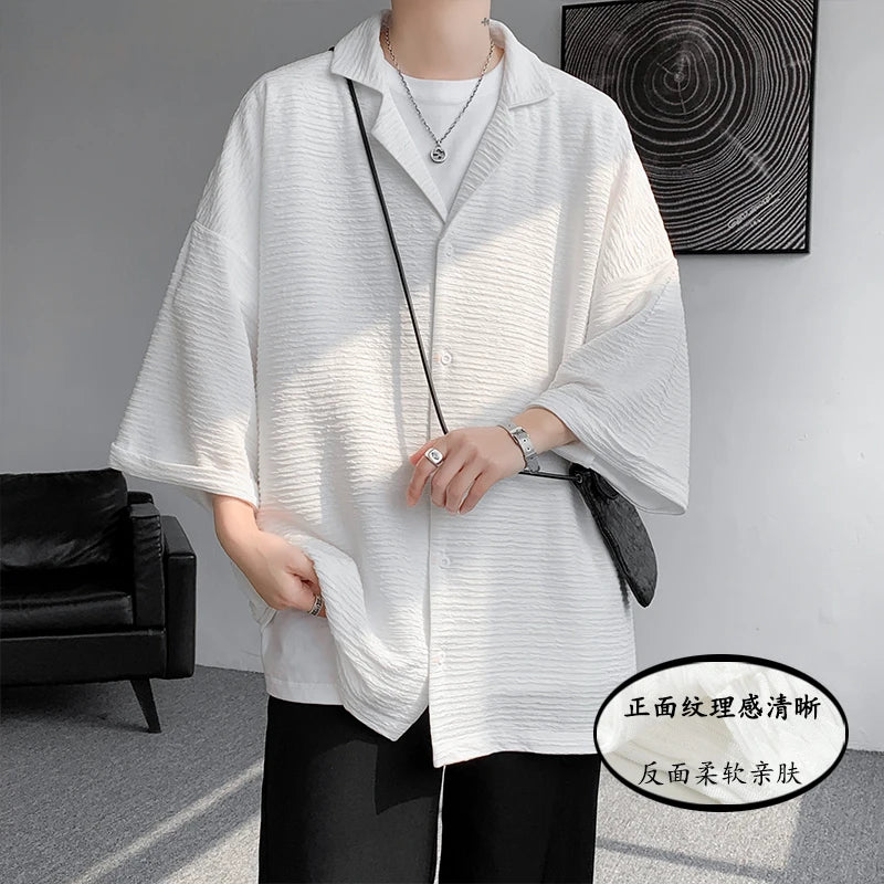 Riolio Ice Silk Shirt Men's High Quality Summer Fashion Brand ins 5-sleeve shirt loose casual masculina camisas hombre