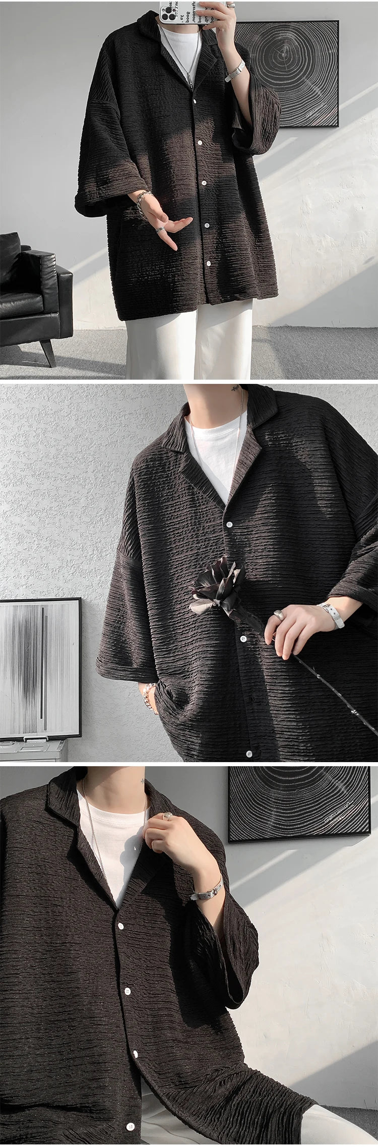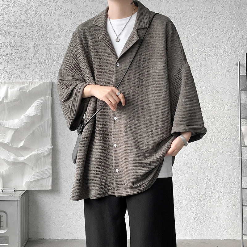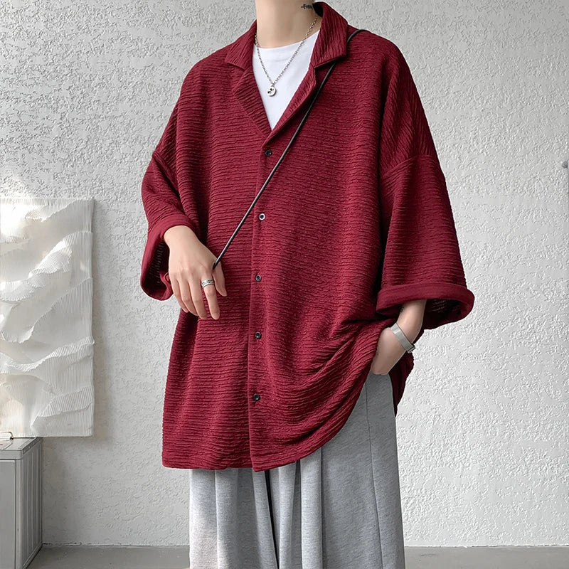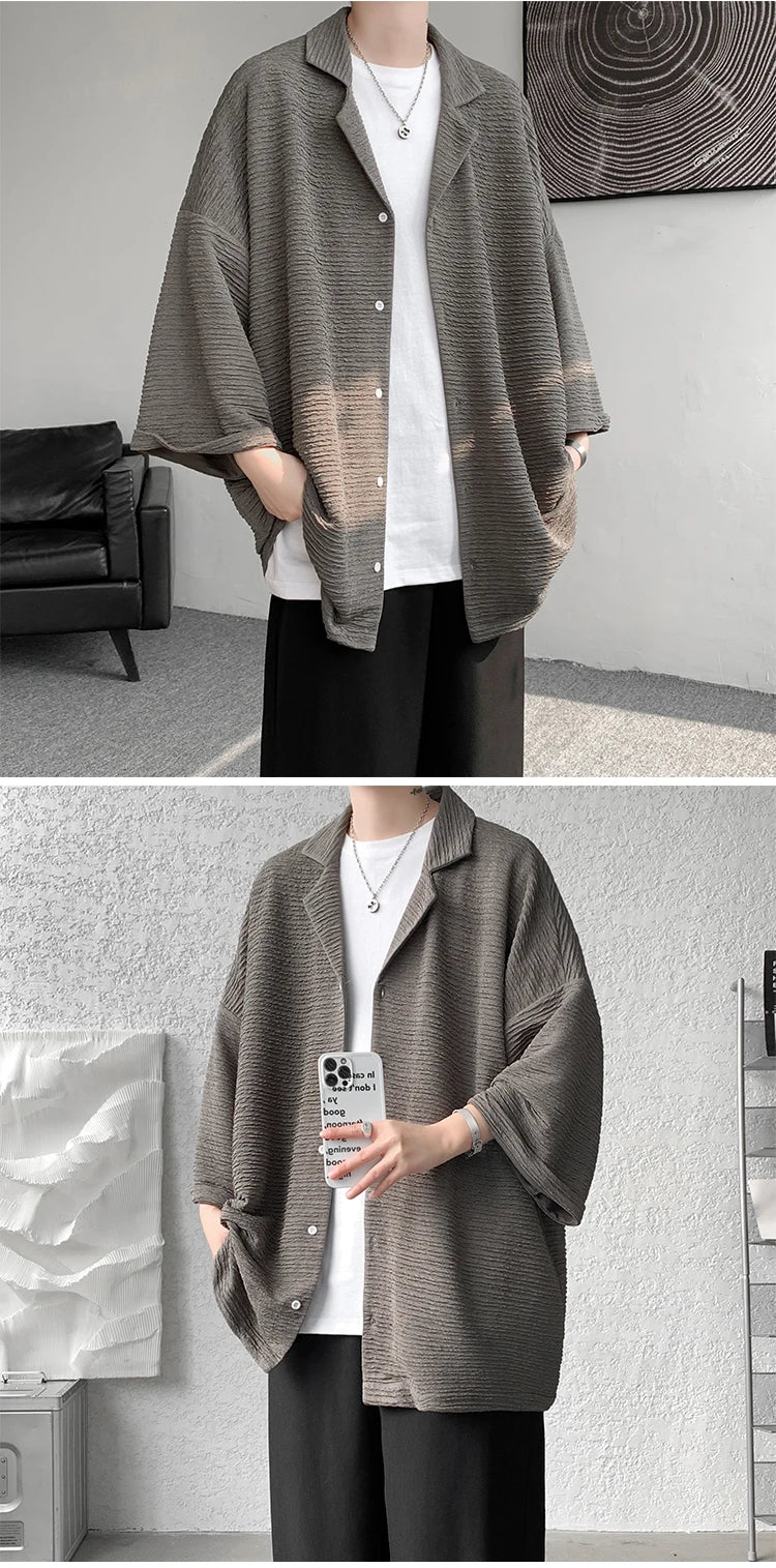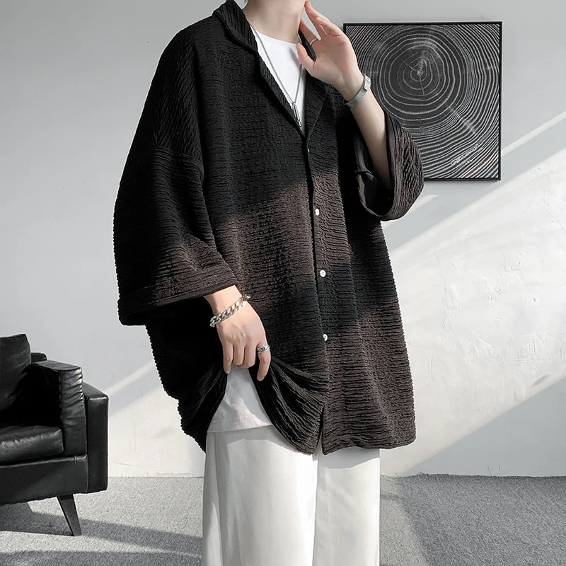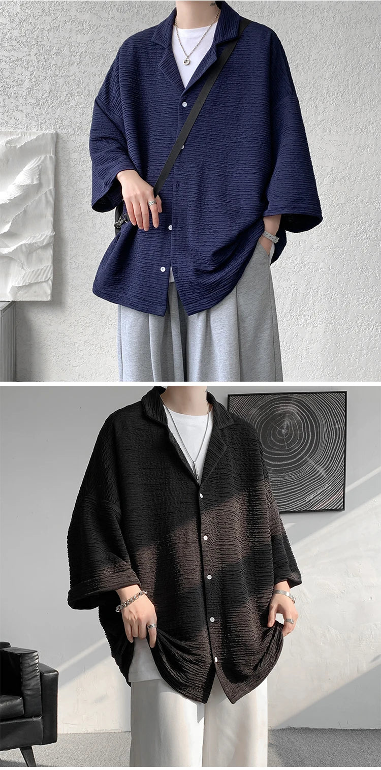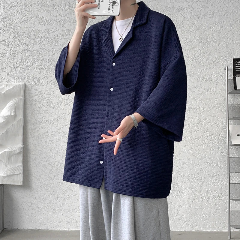 Riolio Ice Silk Shirt Men's High Quality Summer Fashion Brand ins 5-sleeve shirt loose casual masculina camisas hombre