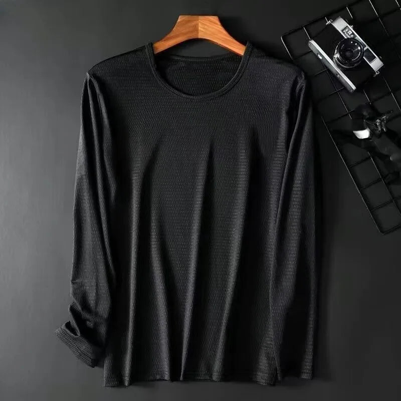 Riolio Men's Summer Lightweight Breathable Long Sve Casual Sun Protection Clothing Qui Dry round Ne T-irt for Youth Daily Use