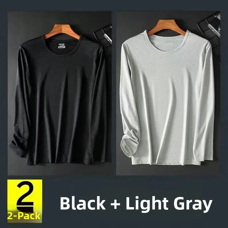 2 pieces - [mesh long sleeves] light gray + dark gray