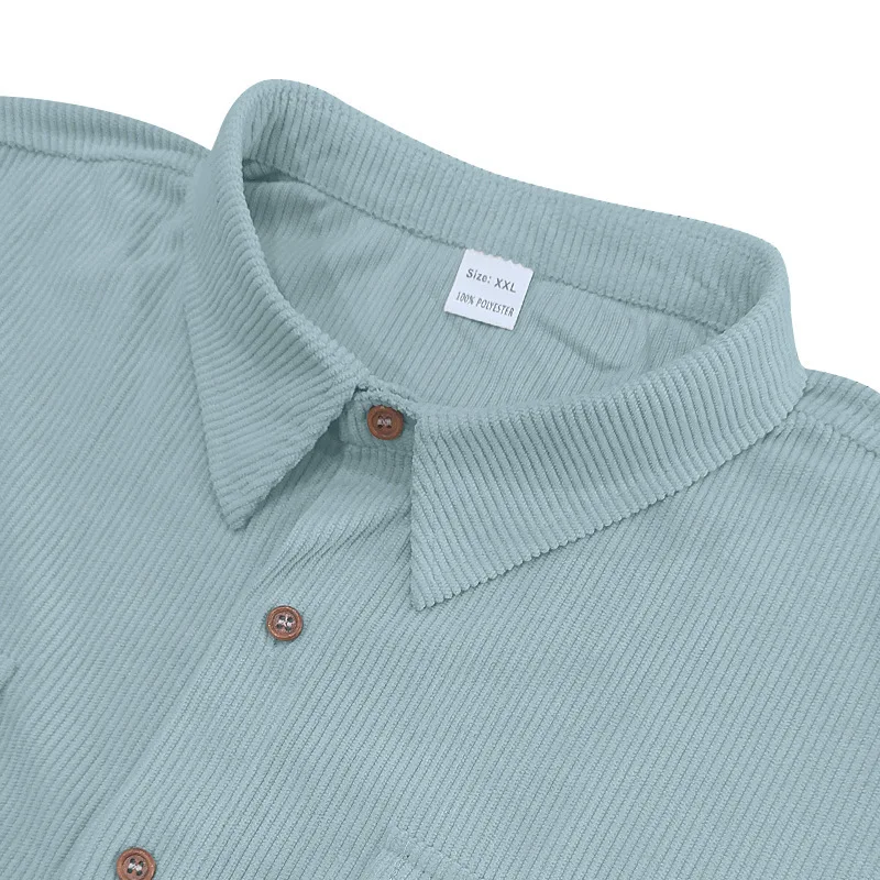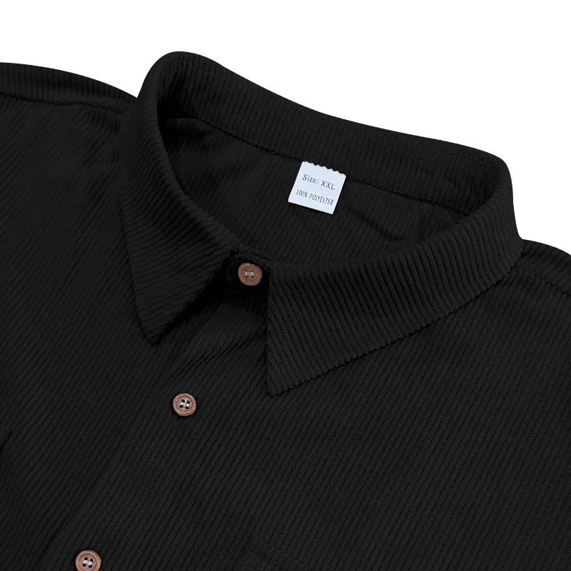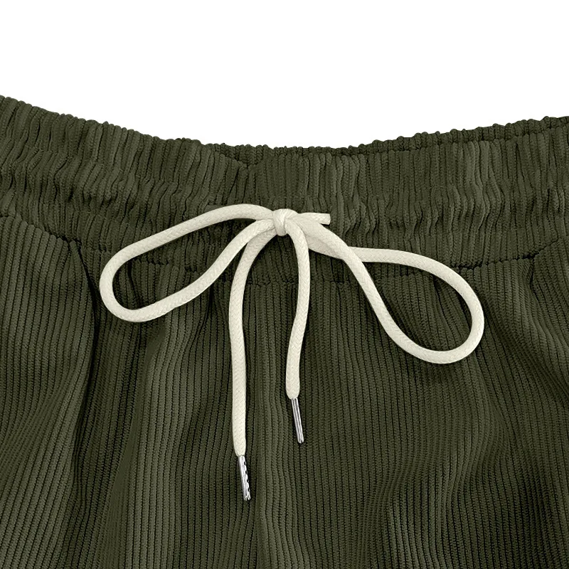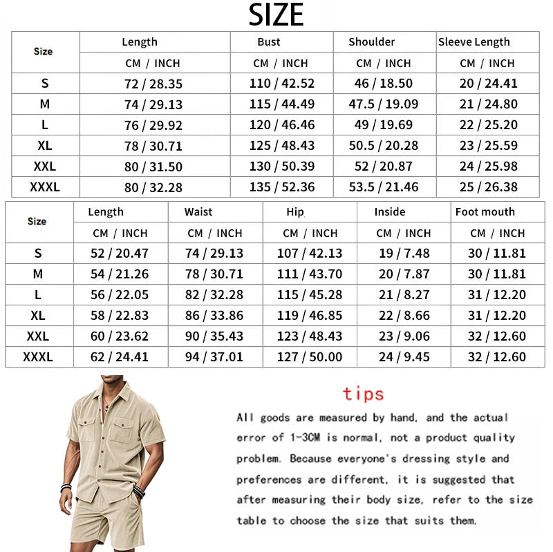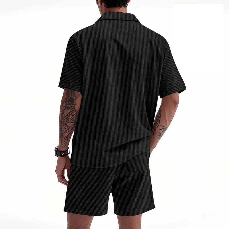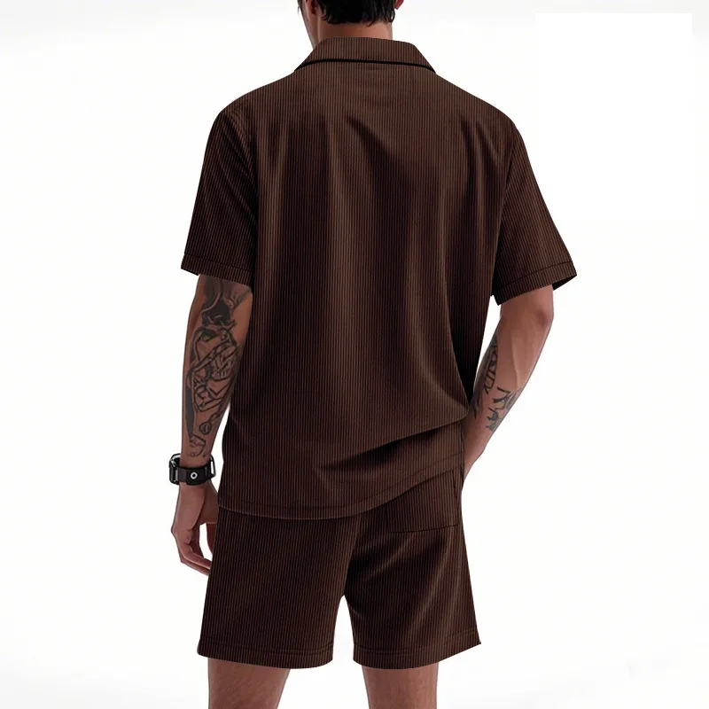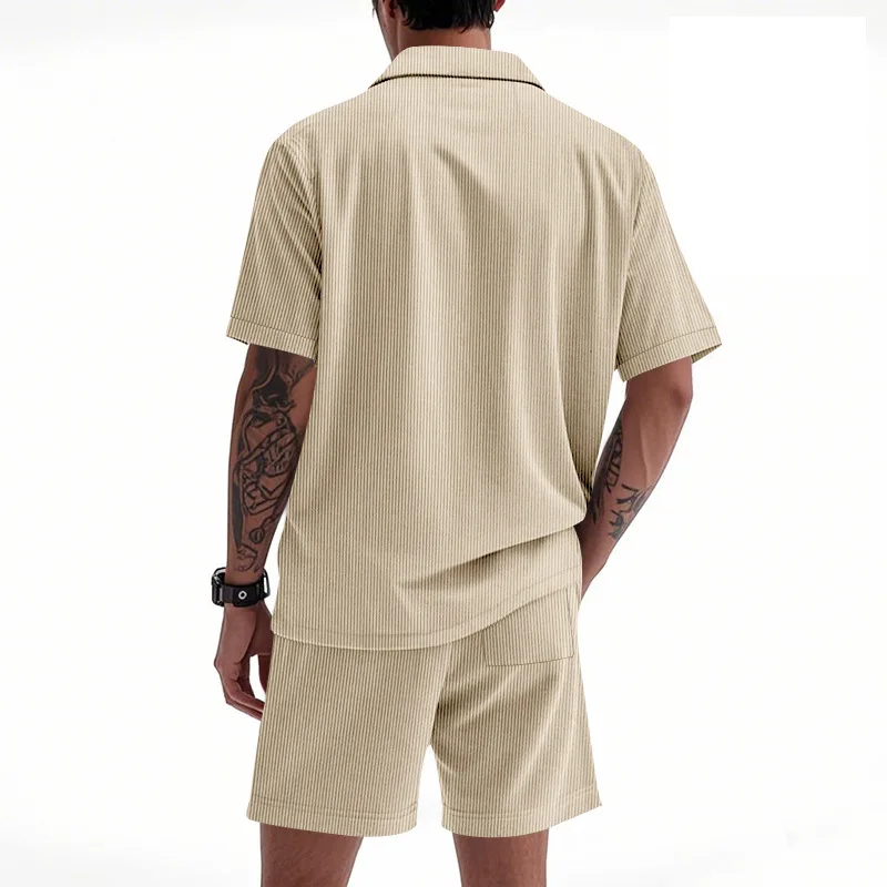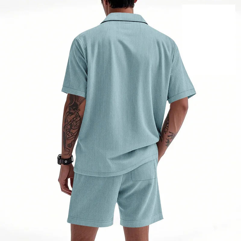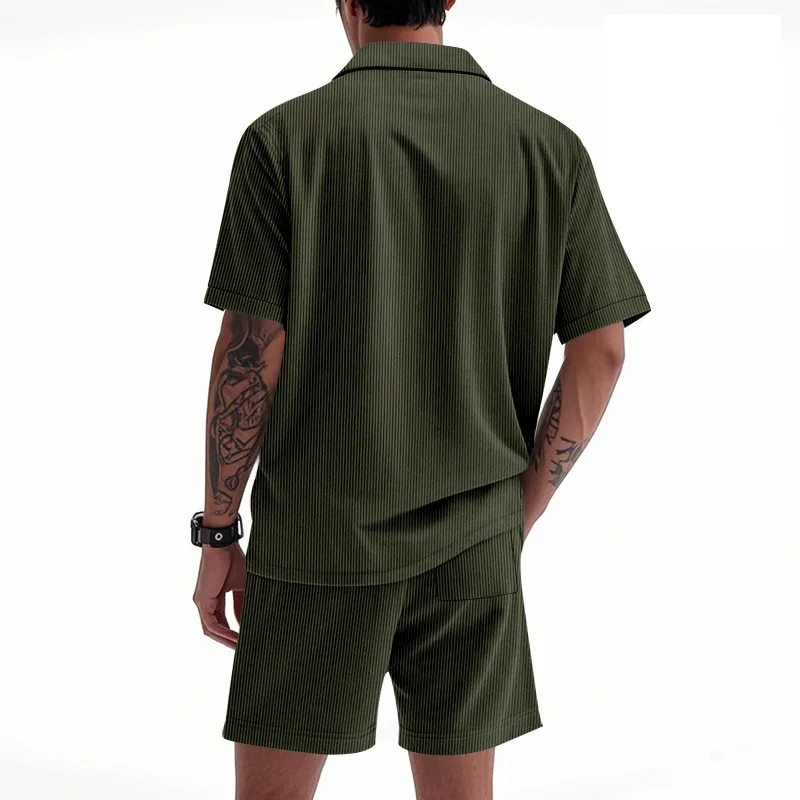 Riolio Men's Summer Suit Amazon Corduroy Solid Pocket Shirt Short Sleeve Shorts Suit