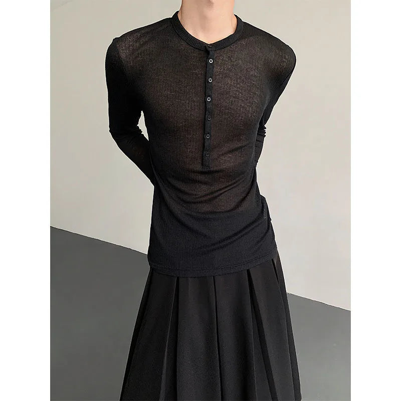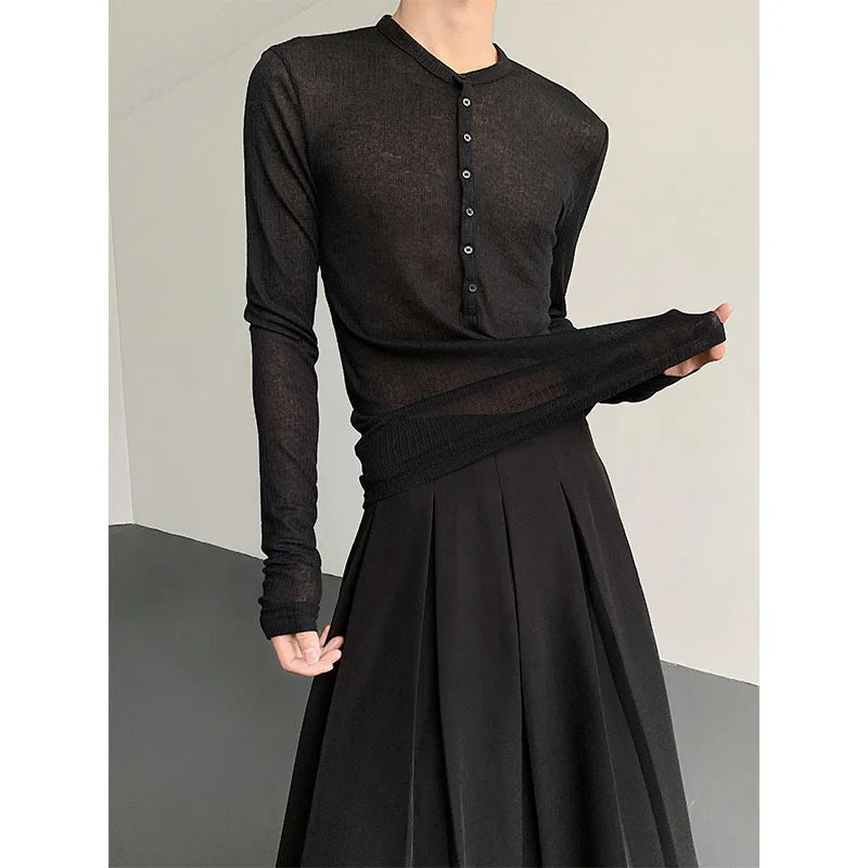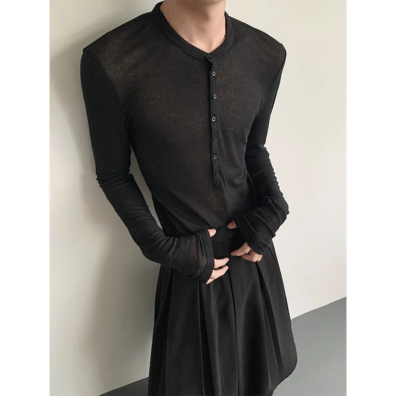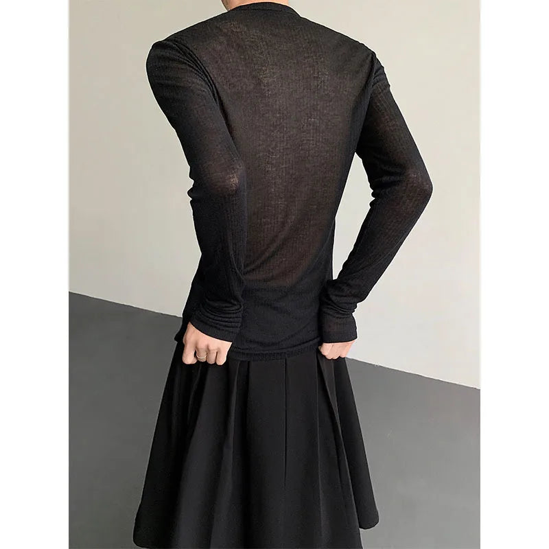 Riolio Black Long Sleeved T-shirt Men Slim Fit Fashion Black Casual T Shirt Men Streetwear Korean Loose Cardigan T-shirt Mens Top