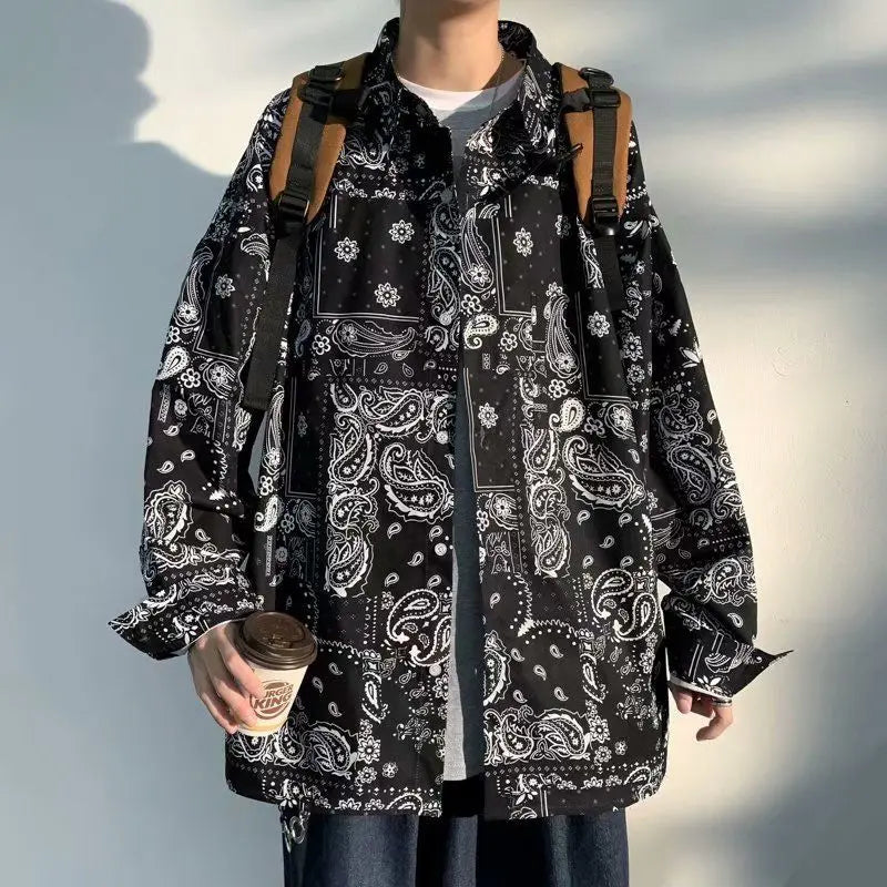 Riolio Cashew Flower Shirt Men's Long Sleeved Hong Kong Style Japanese Fashion Brand Top Jacket Shirt Student Korean Version Trend