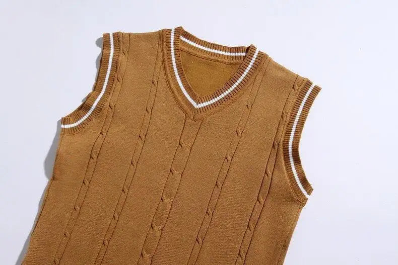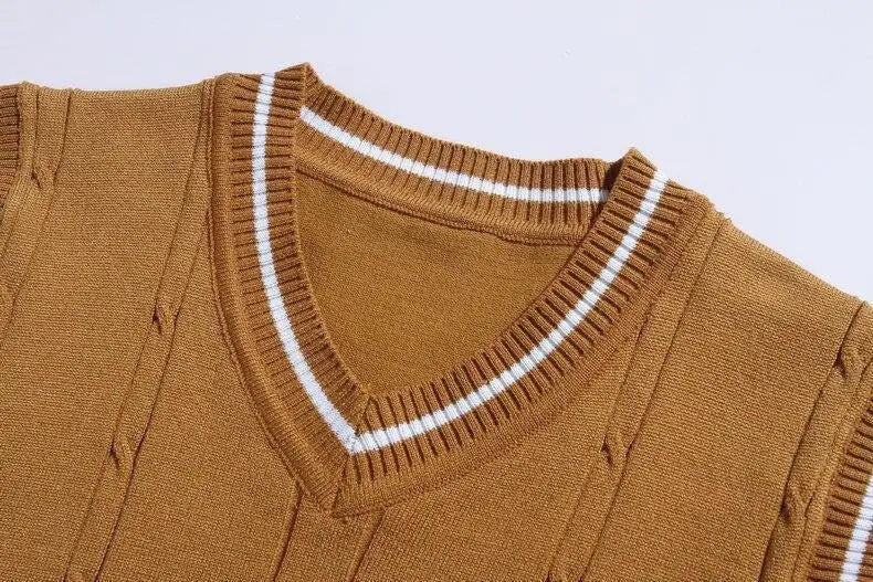 Riolio European American Sleeveless Sweater Autumn Winter New Style Men's Youth Vest Knitwear Sleeveless Cardigan V Neck Pullover Top