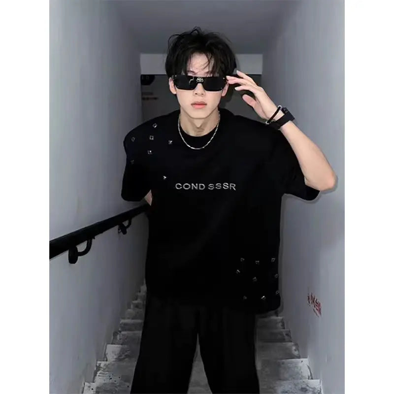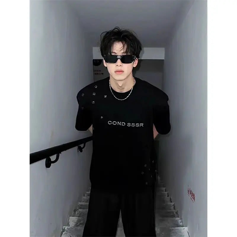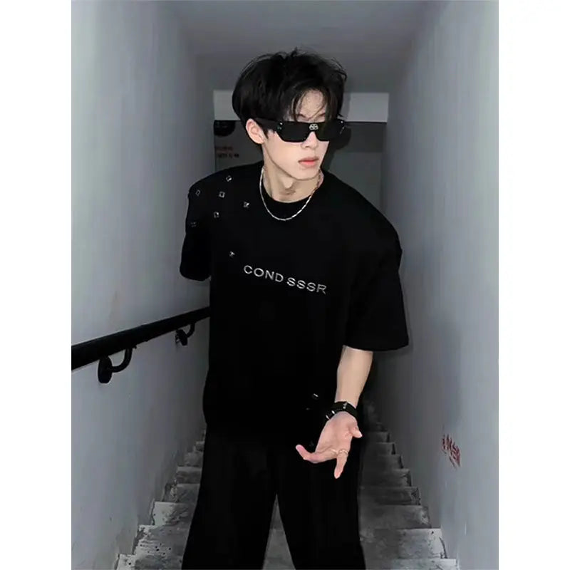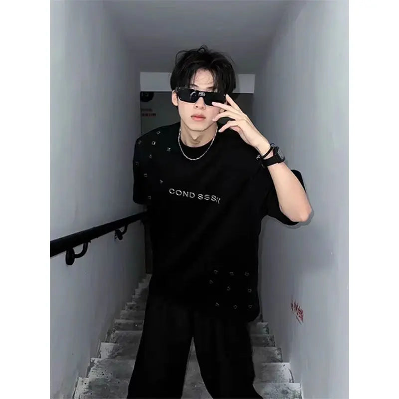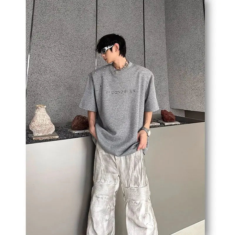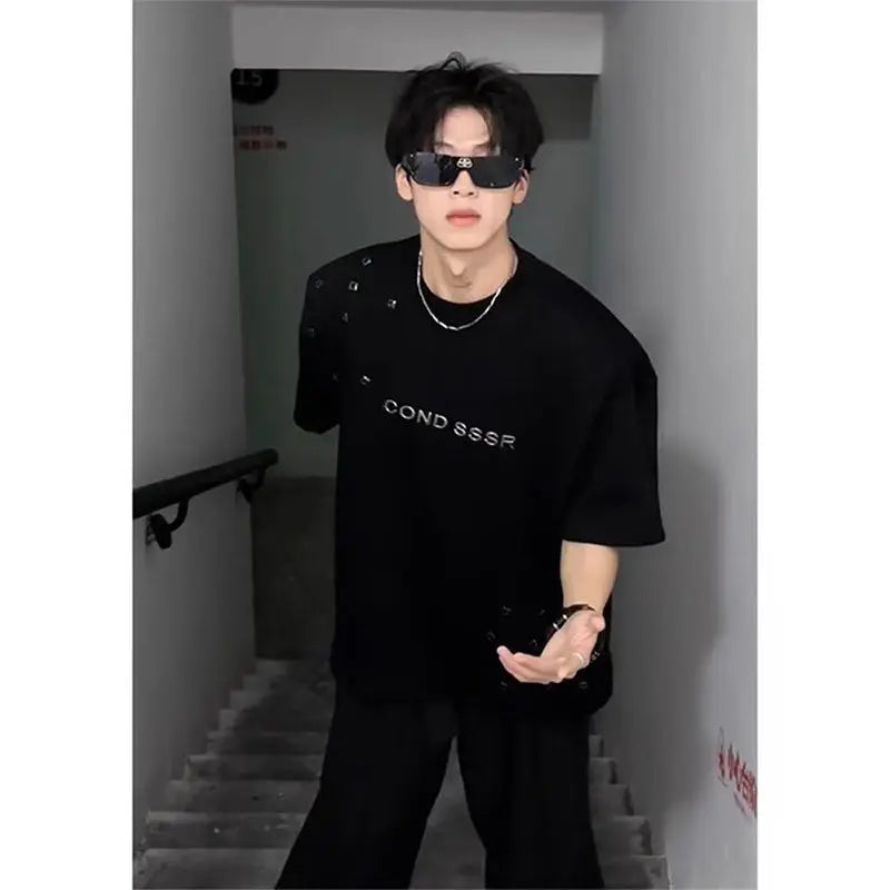 Riolio European and American Summer Trendy Handsome Personality Letter Round Neck Short Sleeve Couple Hip Hop Loose Casual T-shirt Top