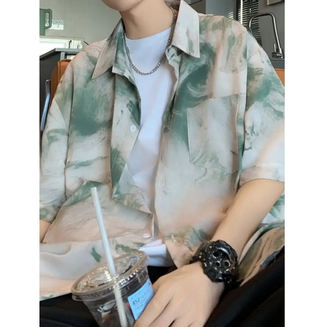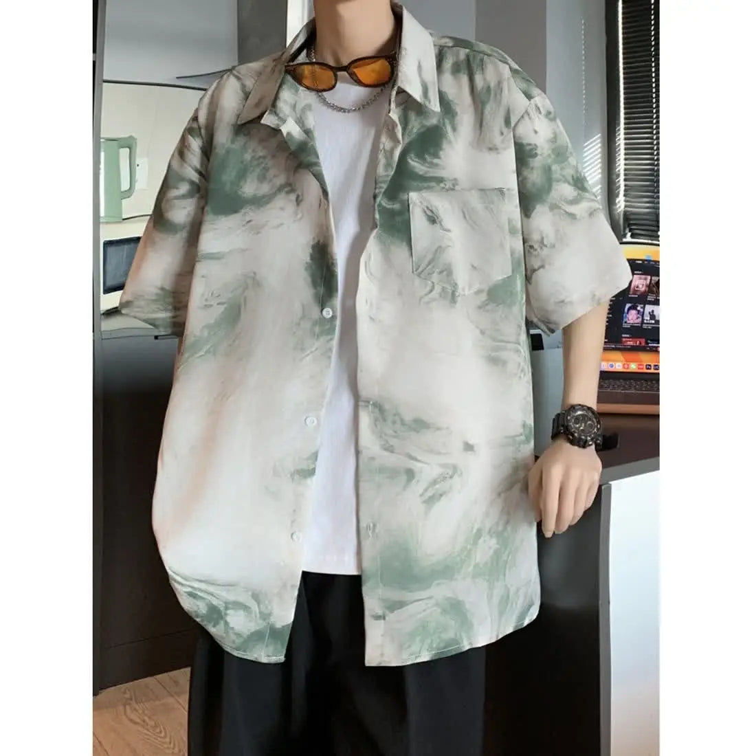Riolio Hawaiian Short-sleeved Men's New Style Ice Silk Light Mature Handsome Flower Shirt Top Men