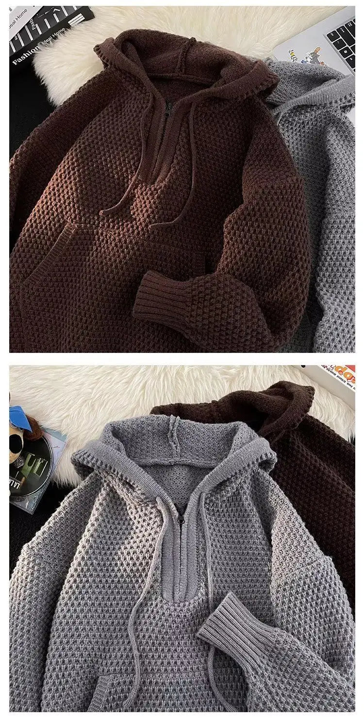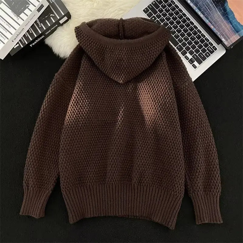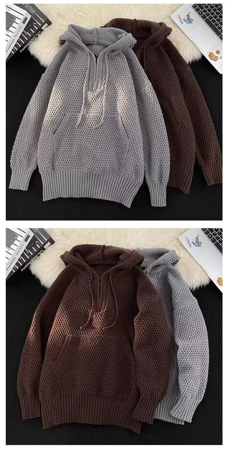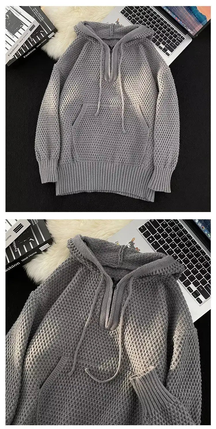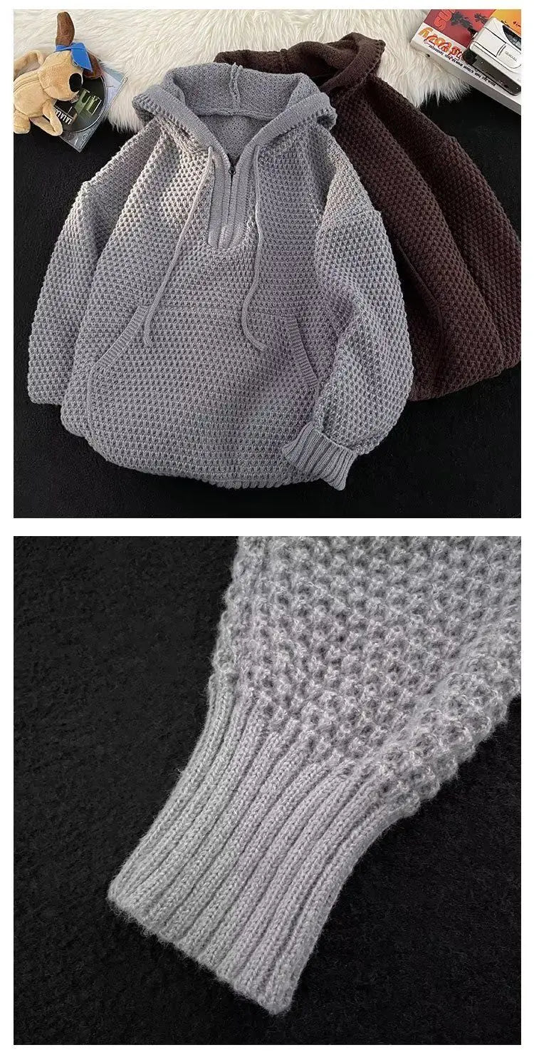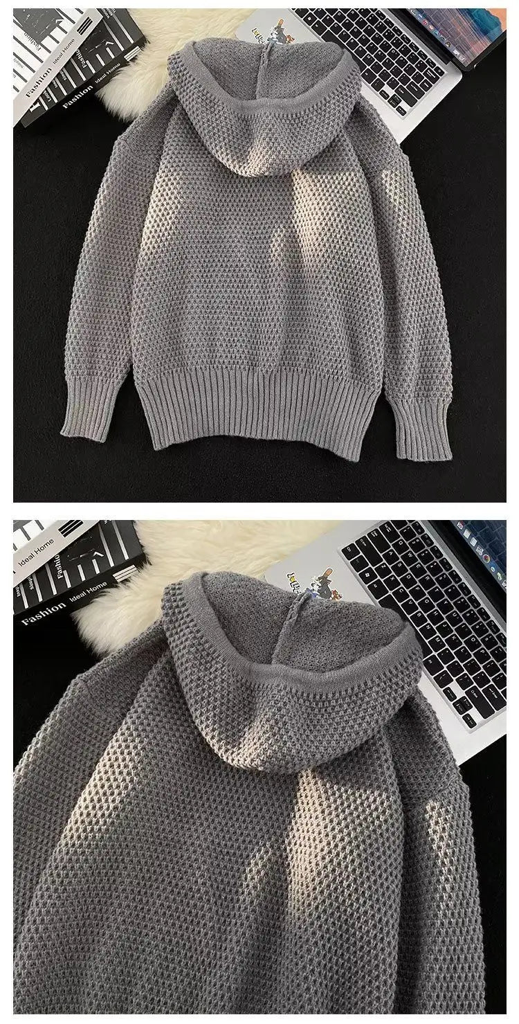 Riolio Hip hop trend men and women personality hooded knit shirt American couple autumn and winter loose fitting Harajuku casual top