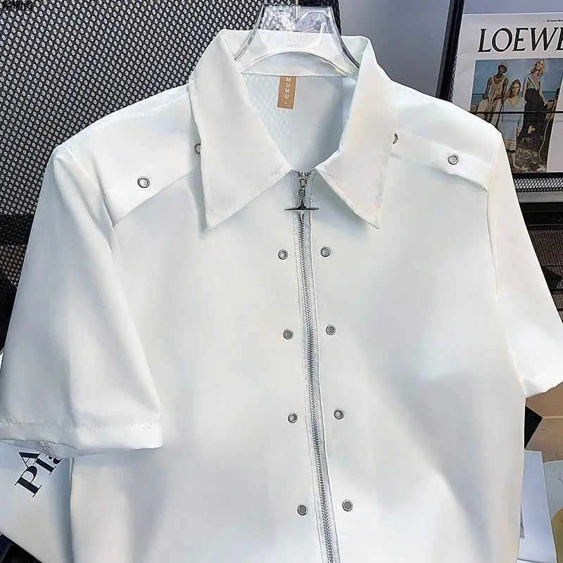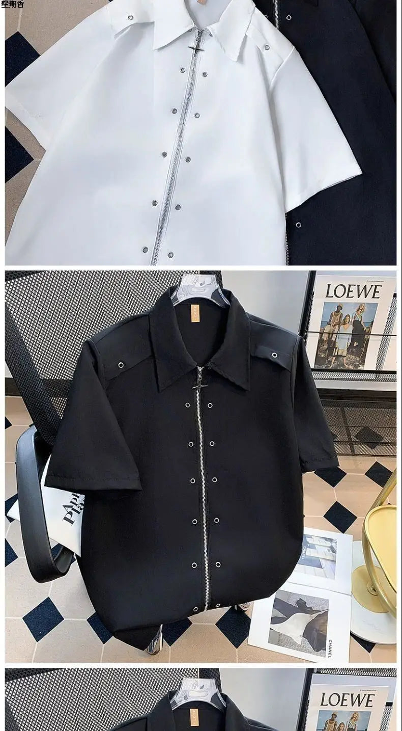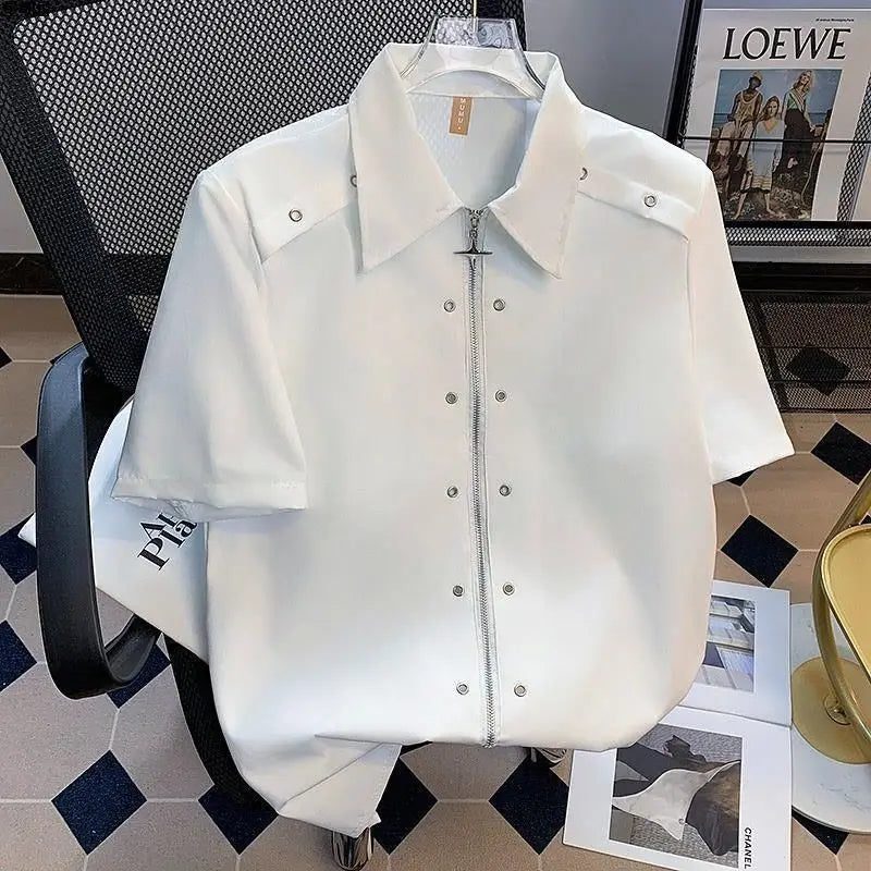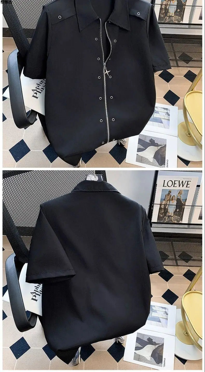 Riolio Korean Summer High Street Trendy Men and Women Hip Hop Retro Design Shirt Couple Harajuku Personalized Casual Short Sleeve Top