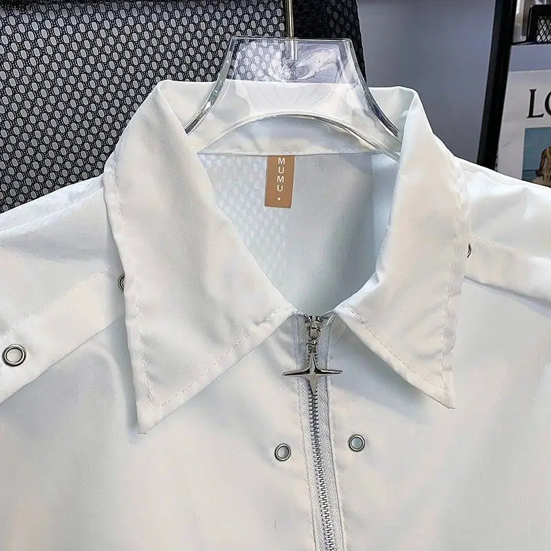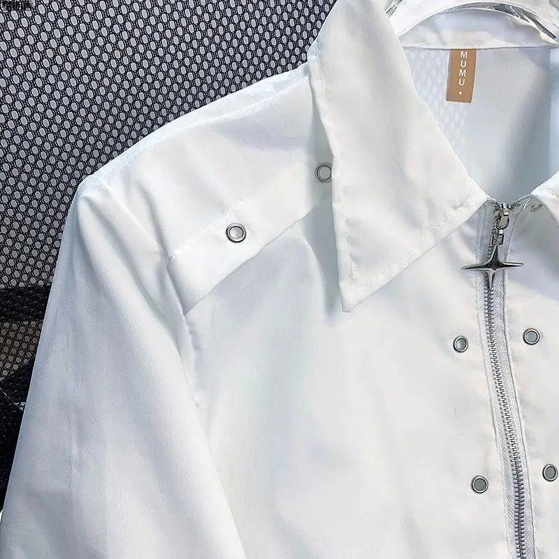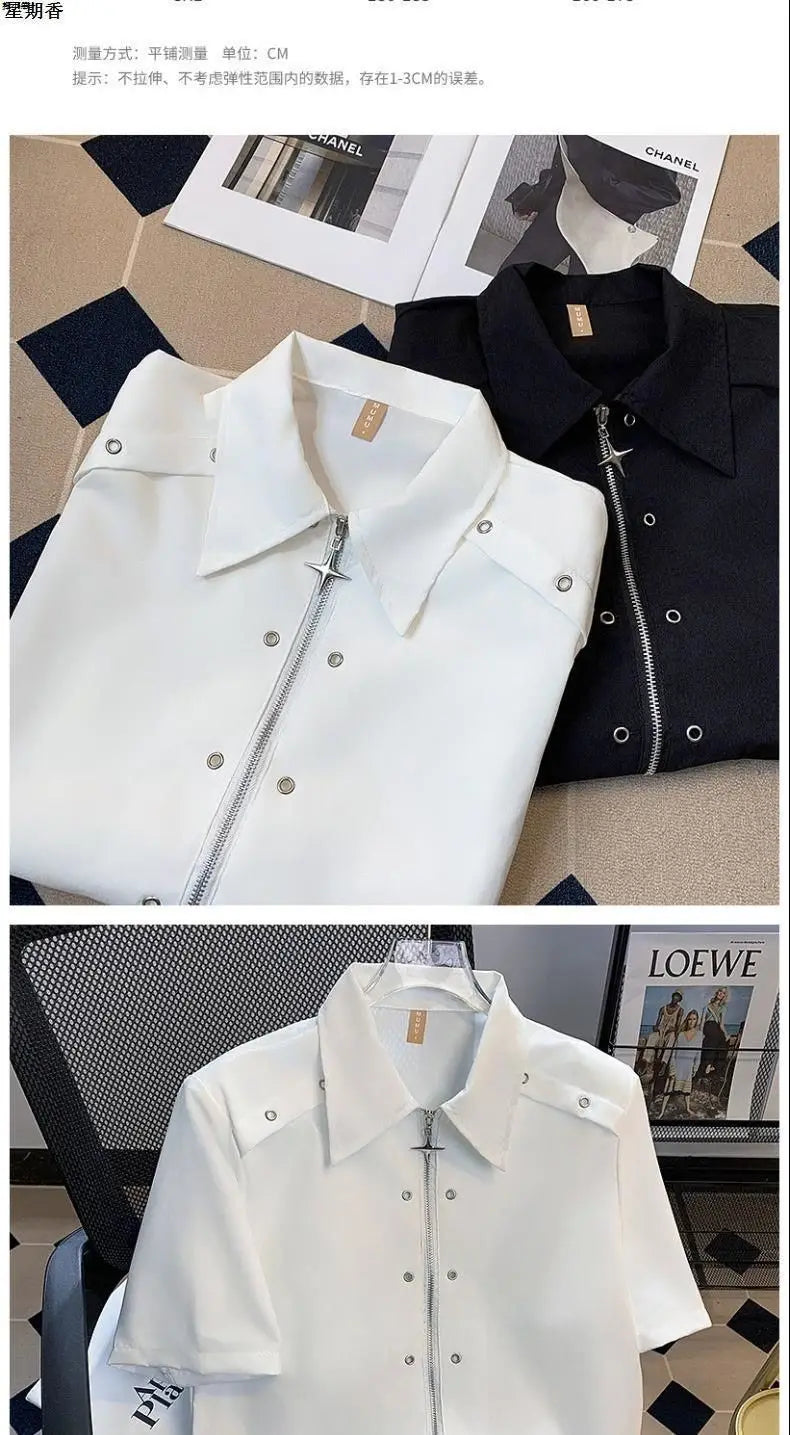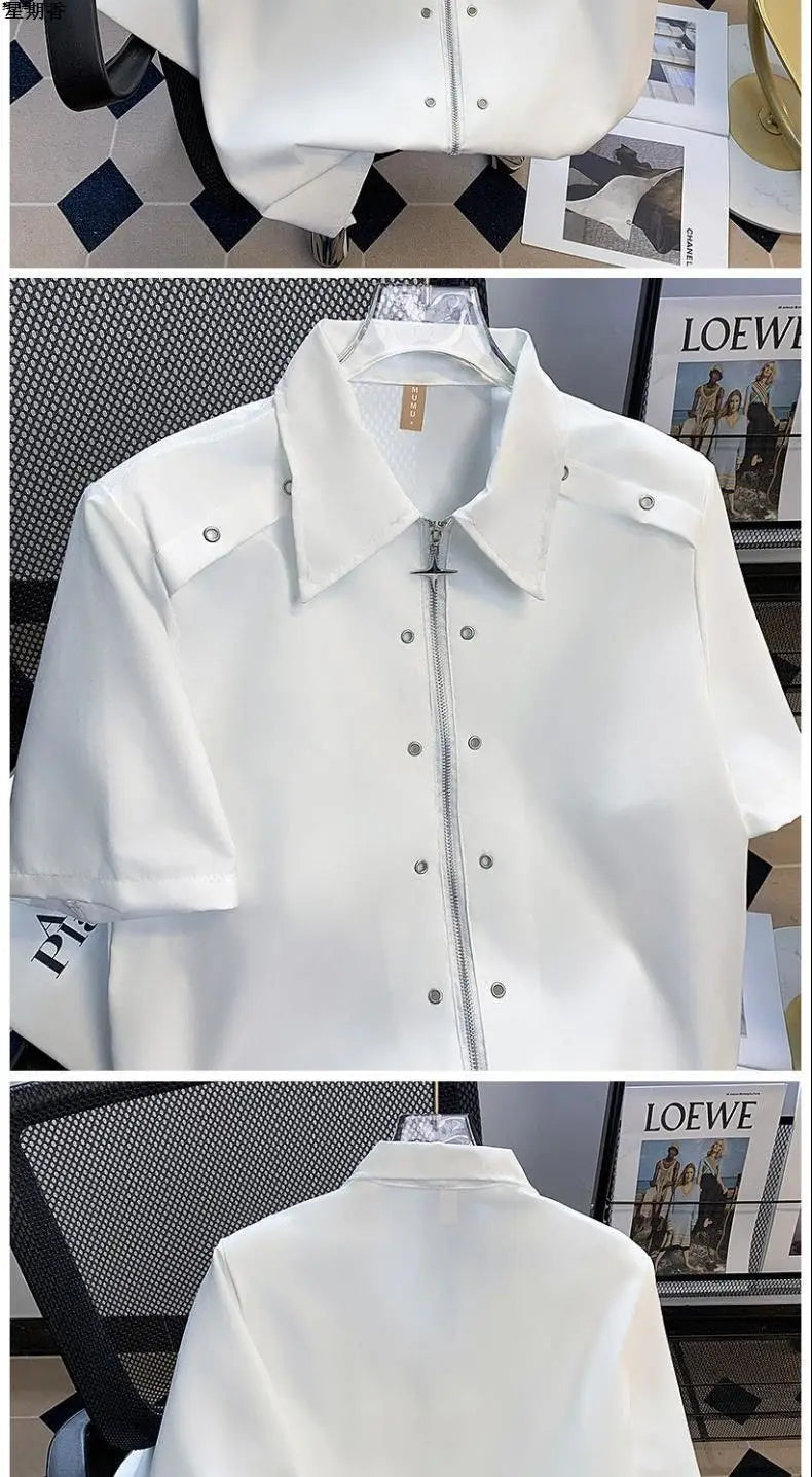 Riolio Korean Summer High Street Trendy Men and Women Hip Hop Retro Design Shirt Couple Harajuku Personalized Casual Short Sleeve Top