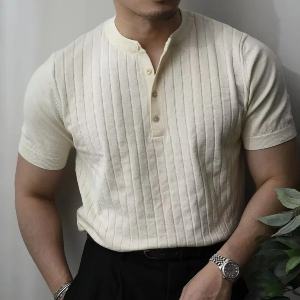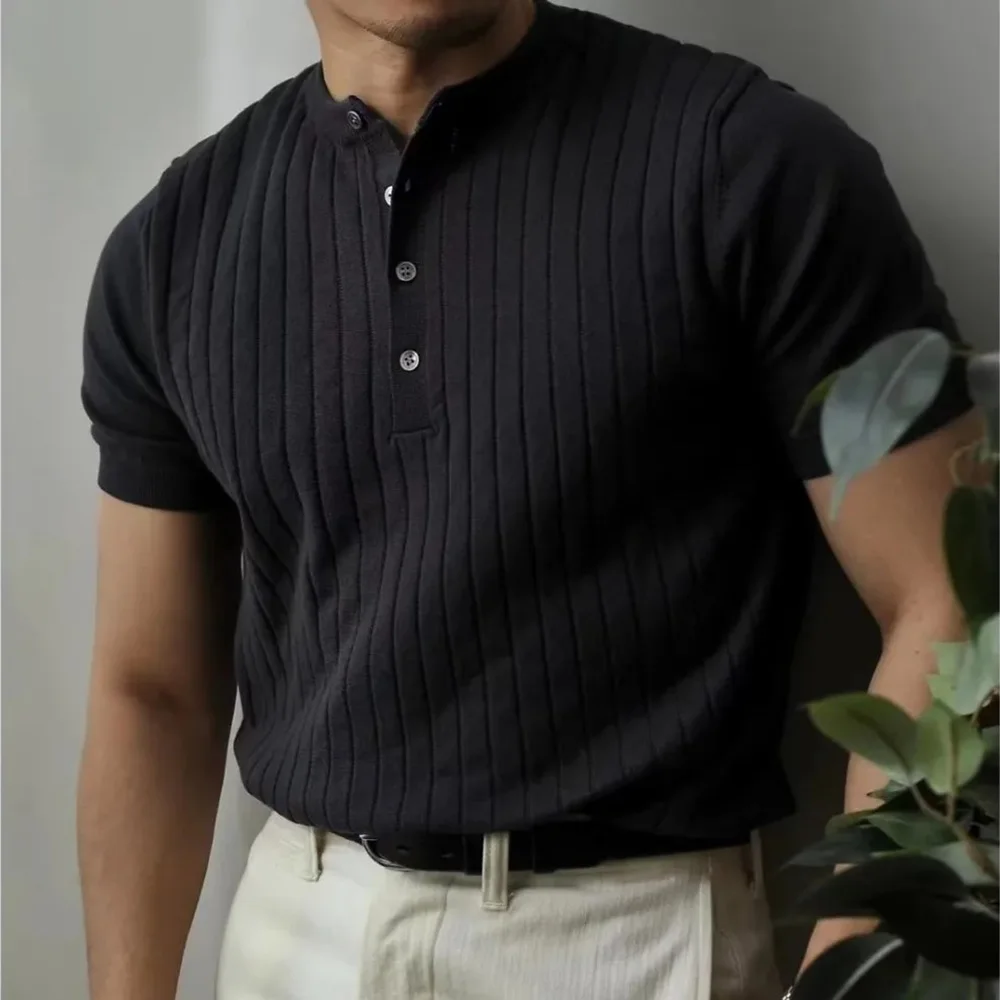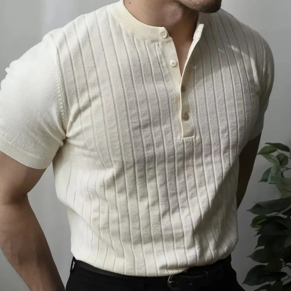 Riolio New Men's American Striped Solid Color Short-Sleeved T-Shirt Retro Fashion Casual Trend Slim Simple Versatile Men's Tops